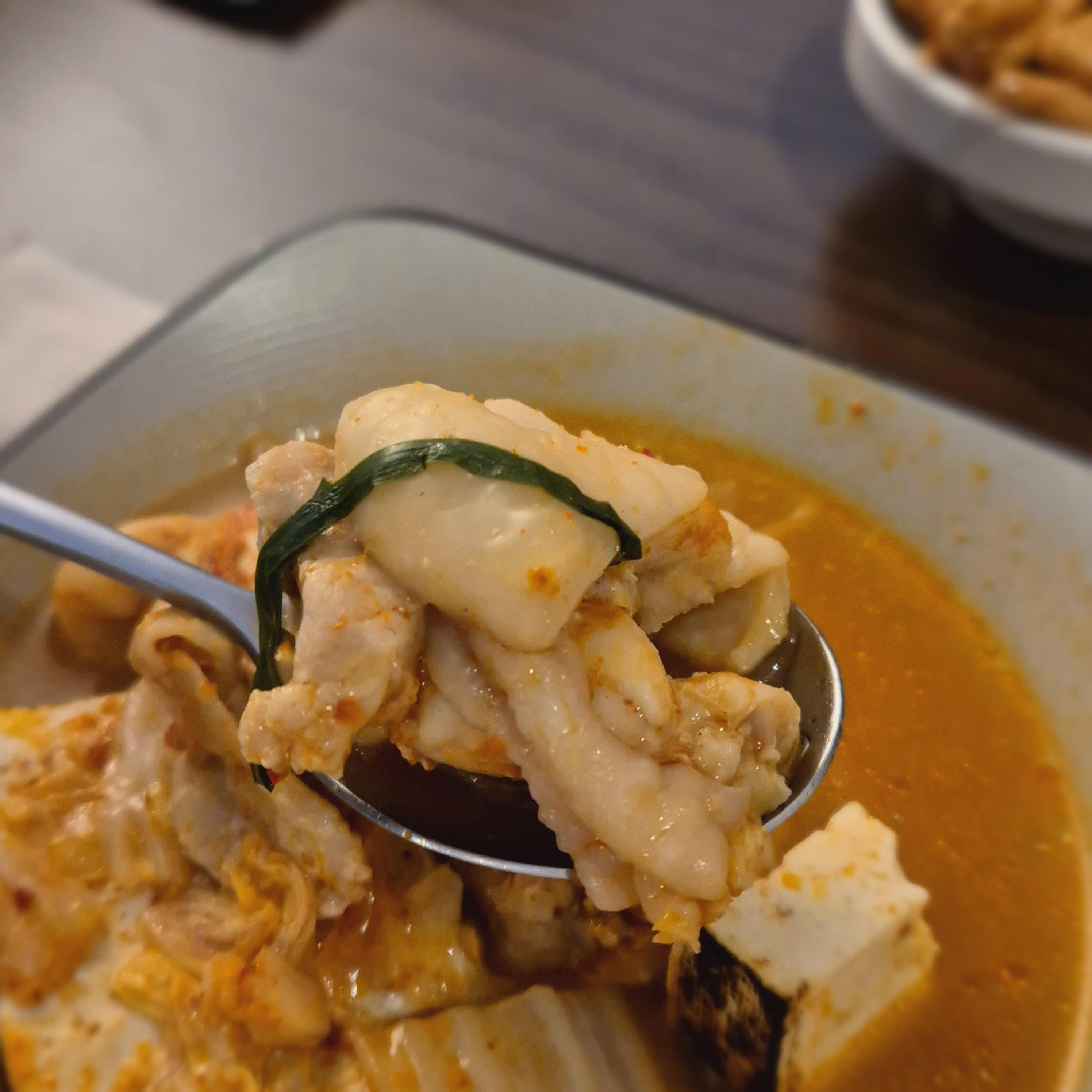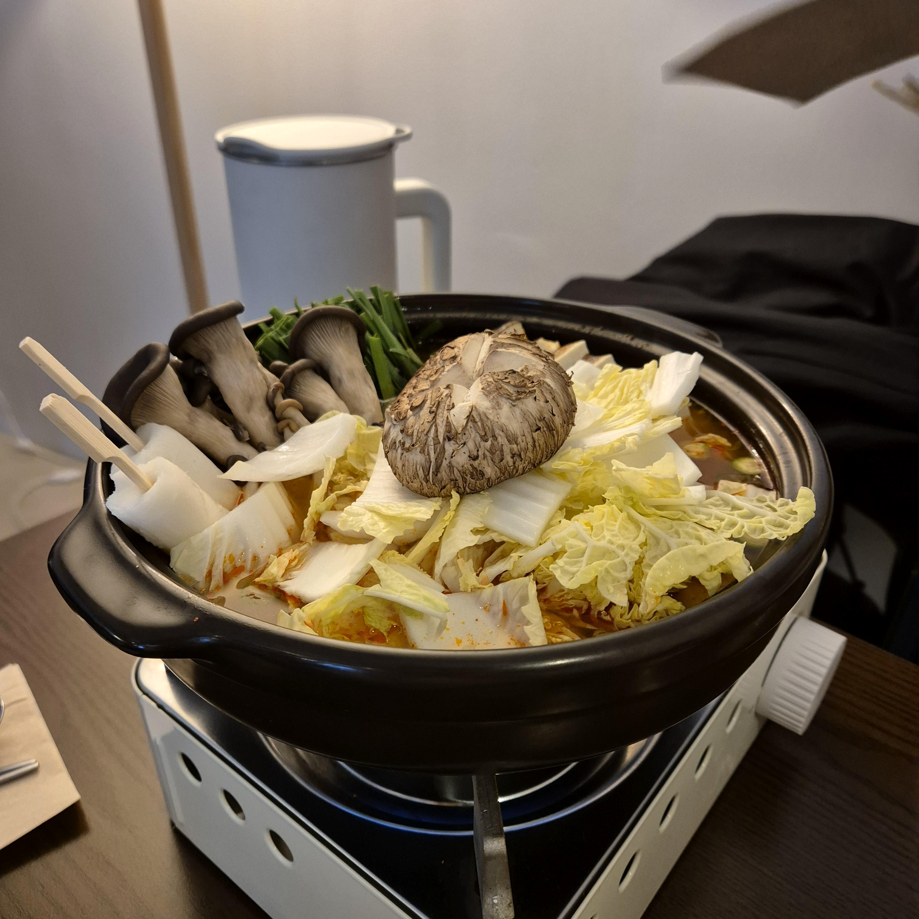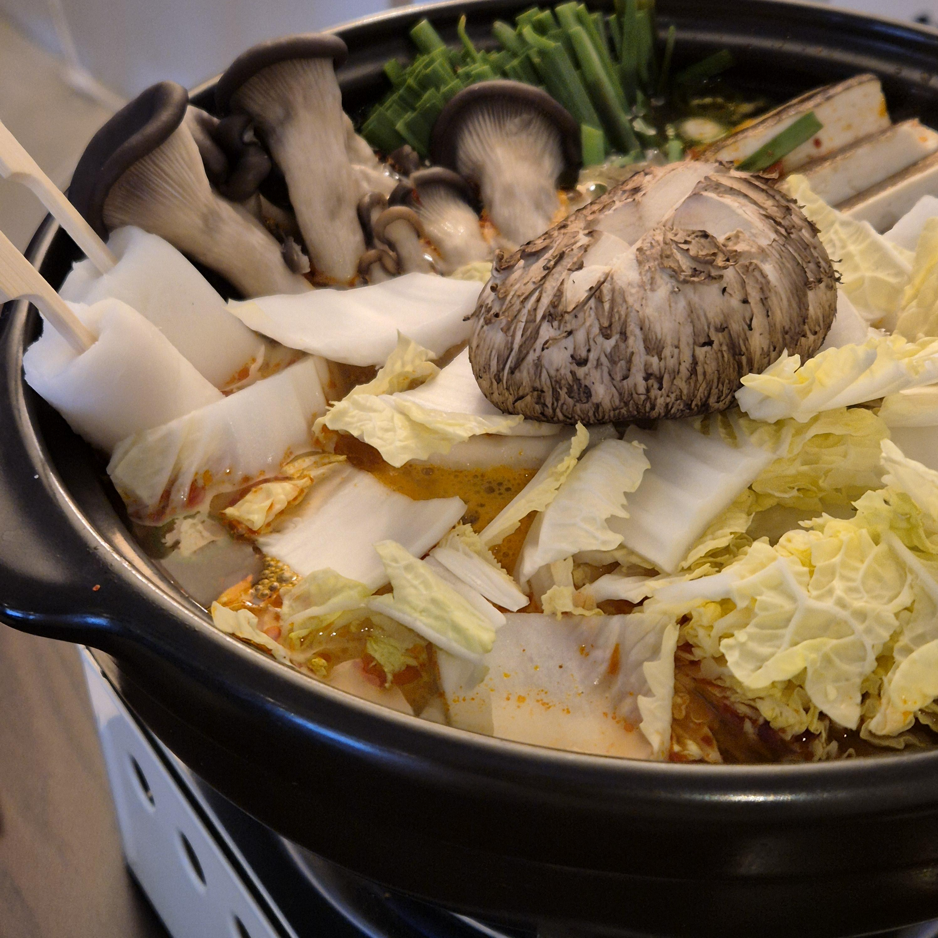 처음에는 끓여지지 않은 상태로 나오기 때문에 보글보글 끓여야 한다. 하지만 일단 비주얼 합격이다. 냄비자체가 그렇게 크다는 느낌은 받지 못했지만, 가격(29,000) 대비 자리대비 가성비는 나쁘지 않았다. 국물은 살짝 매콤하긴 했지만, 그래서 좋았다. 신라면 까지는 아주 잘 먹는 필자의 입맛에도 조금 매콤하긴 했다. 매콤하면서 약간 달콤하면서 맛있는 그런 맛이랄까 전반적으로 만족하며 먹었다.