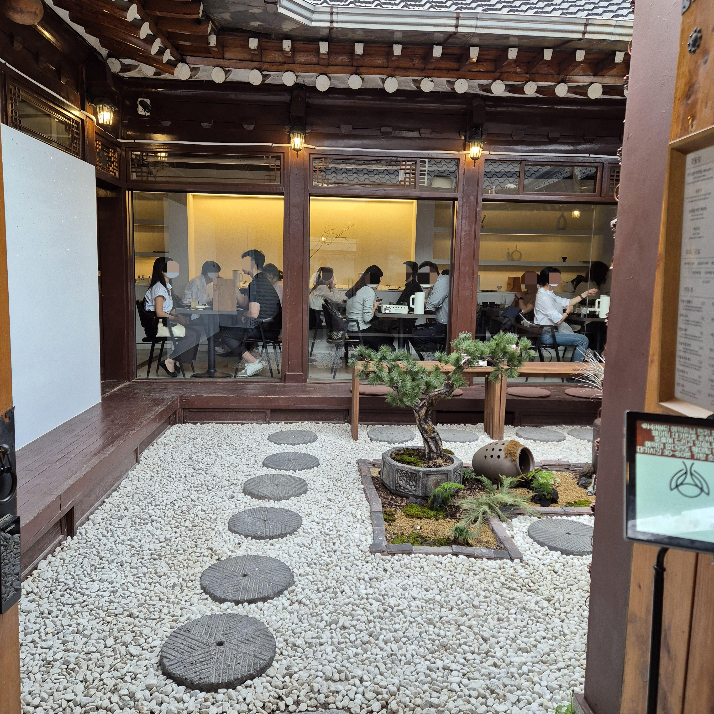 딱 들어가자마자 들었던 느낌은 데이트로도, 소개팅으로도 참 좋을 것 같다는 생각이었다. 'ㄱ' 자 모양의 인테리어로 한옥의 고급스러우면서 멋스러운 분위기와 더불어서 통창으로 되어있어서 답답하지 않고 시원한 느낌이 들었다. 이날은 하늘도 맑아서 더더욱 분위기가 좋았던 것 같다. 생각해 보니 비 와도 적적하게 한잔하기 좋을 듯싶었다.