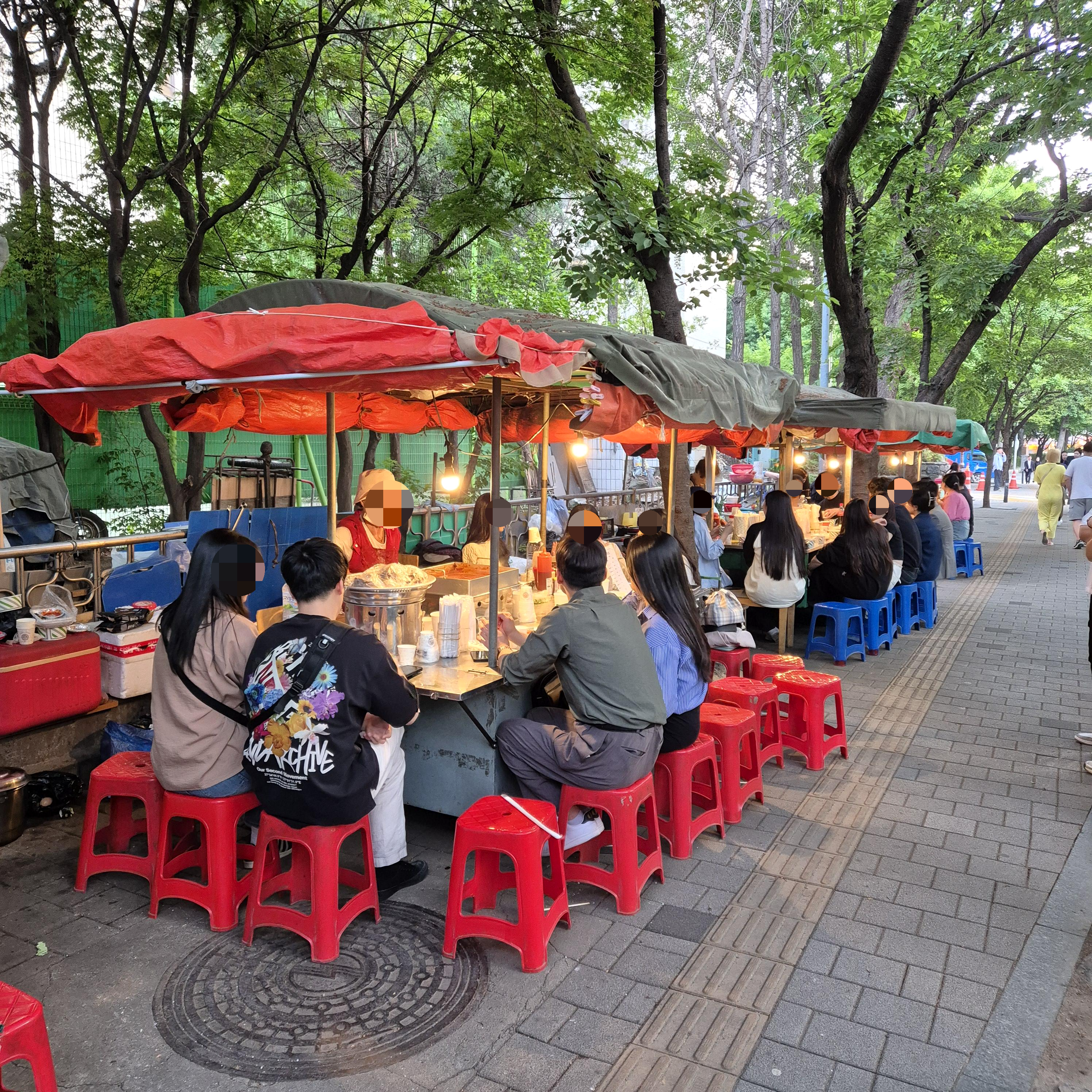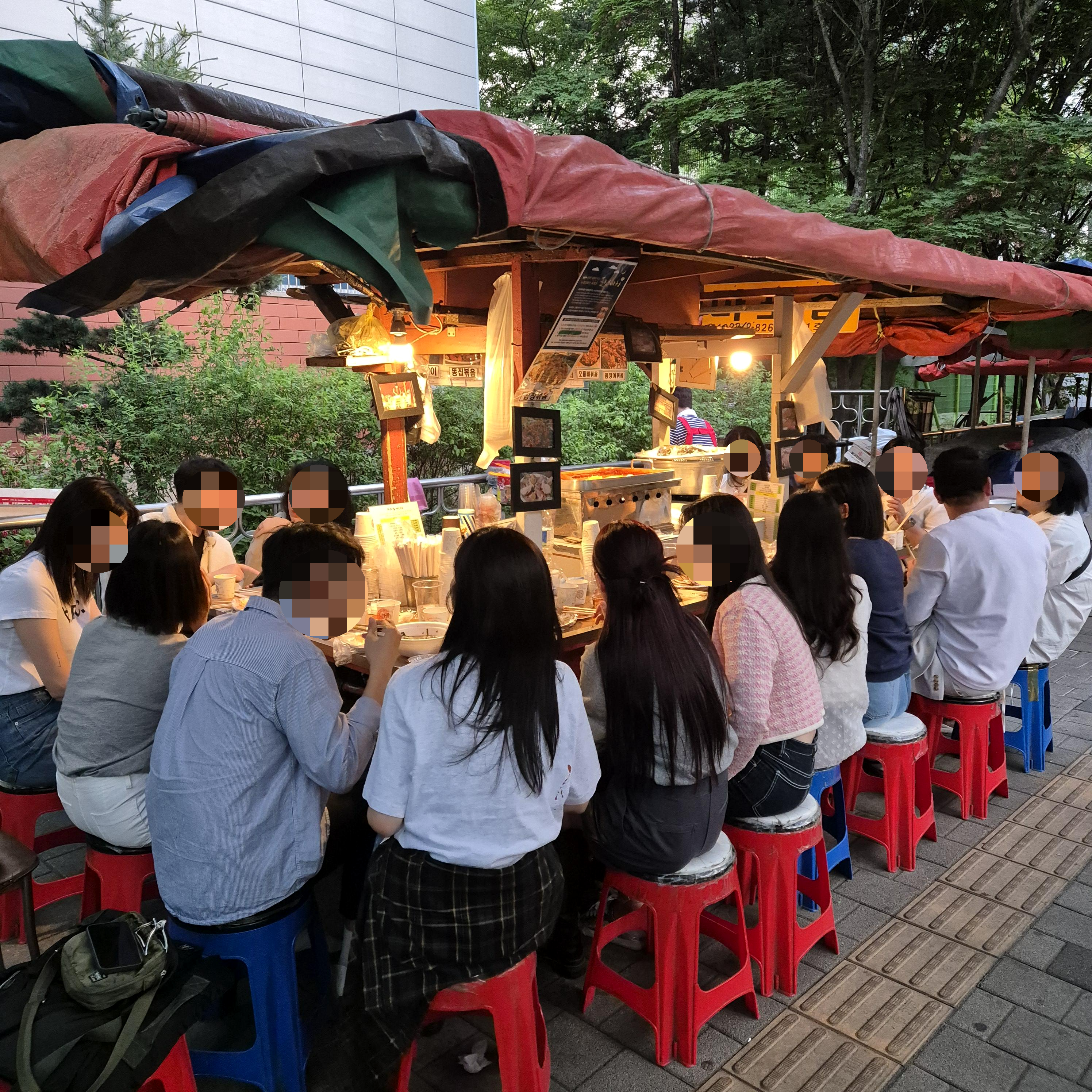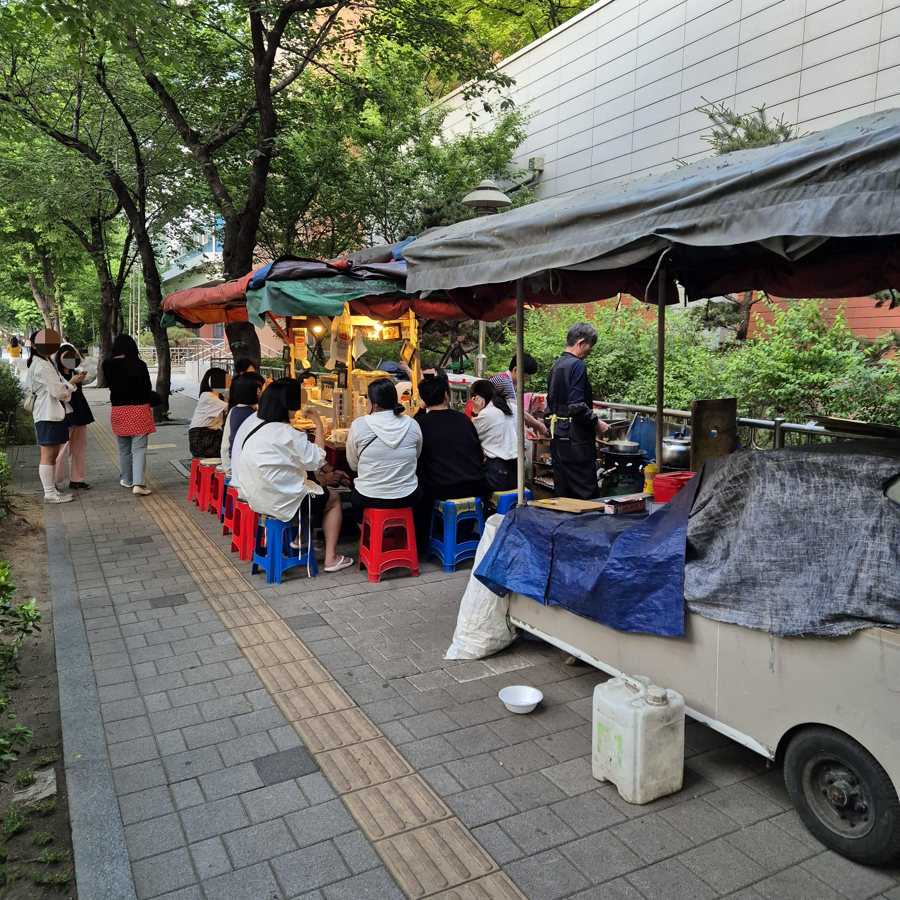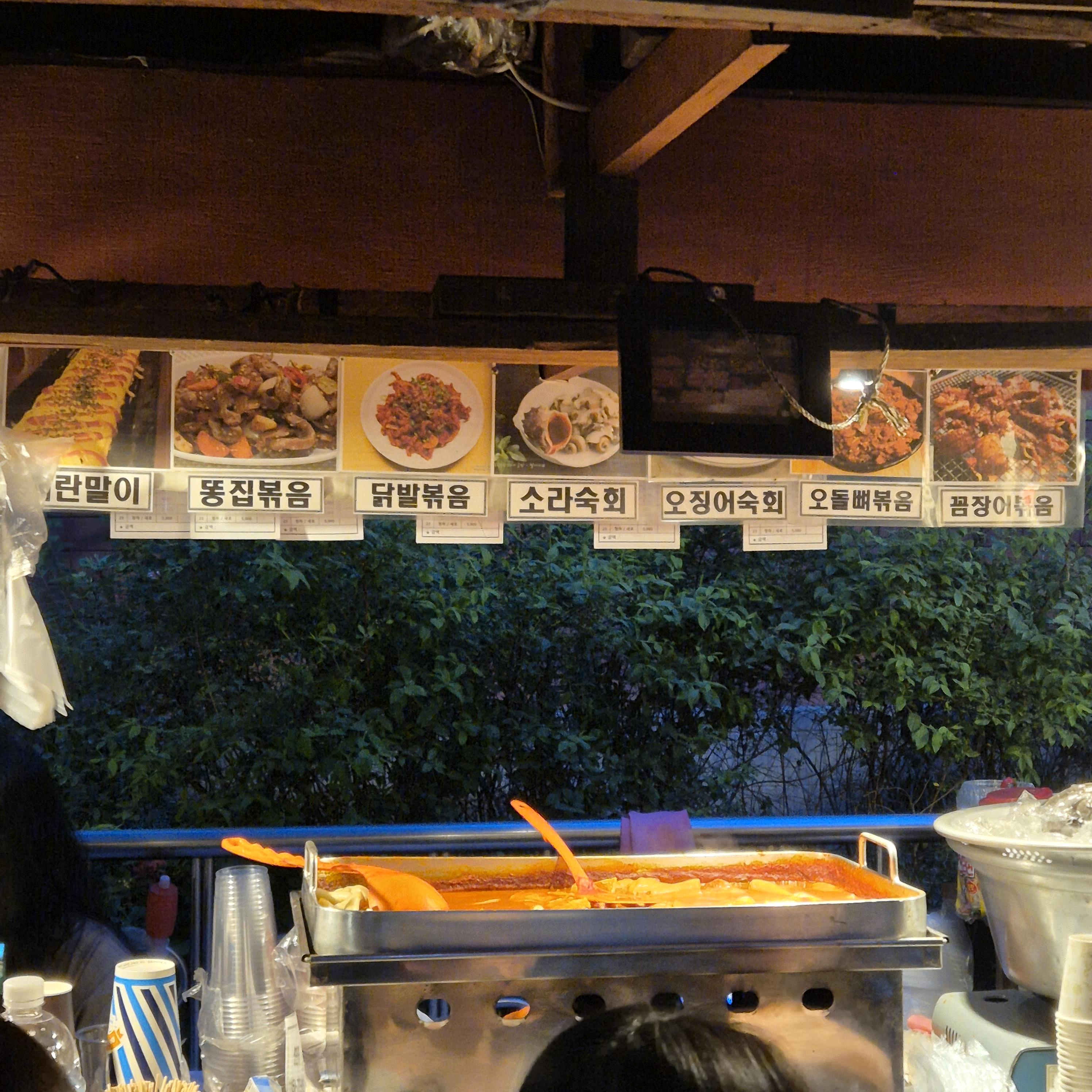 우리가 갔을때 포차는 총 5개가 있었고, 2번 포차는 영업을 하지 않았다. 1,3,4,5 번 포차 중 어디를 갈까 고민하다가 사람이 제일 많은 1번 포차에서 기다렸다.