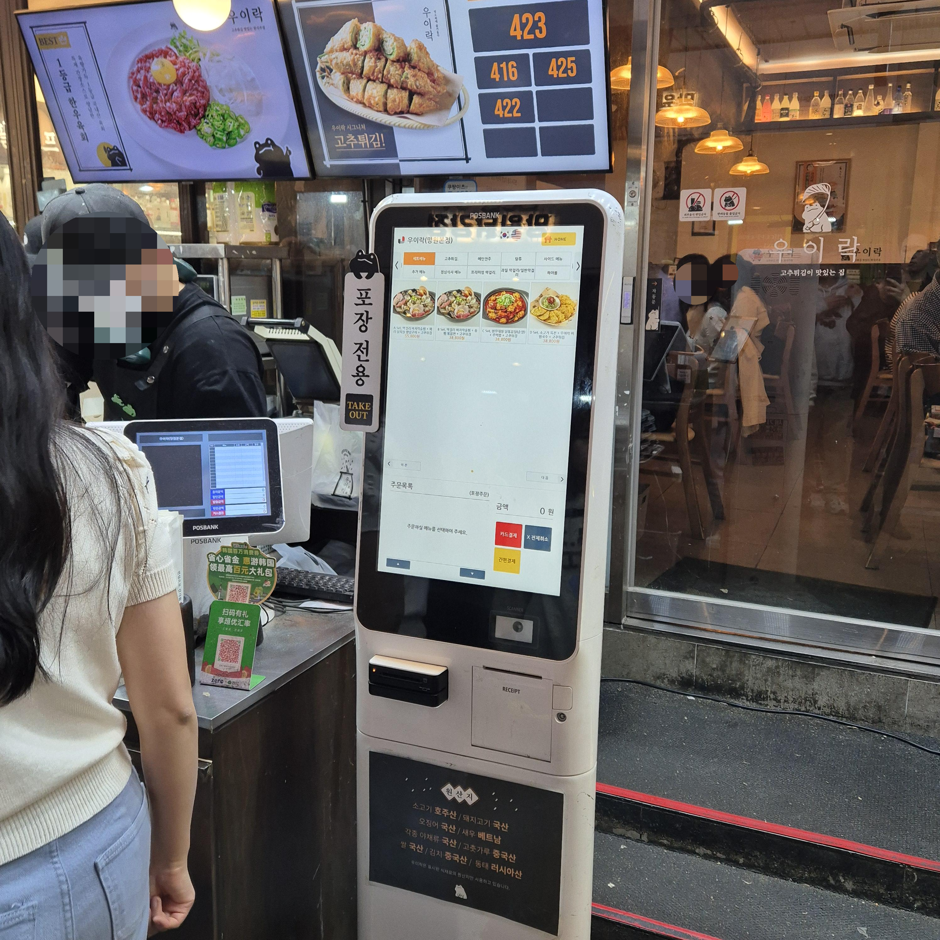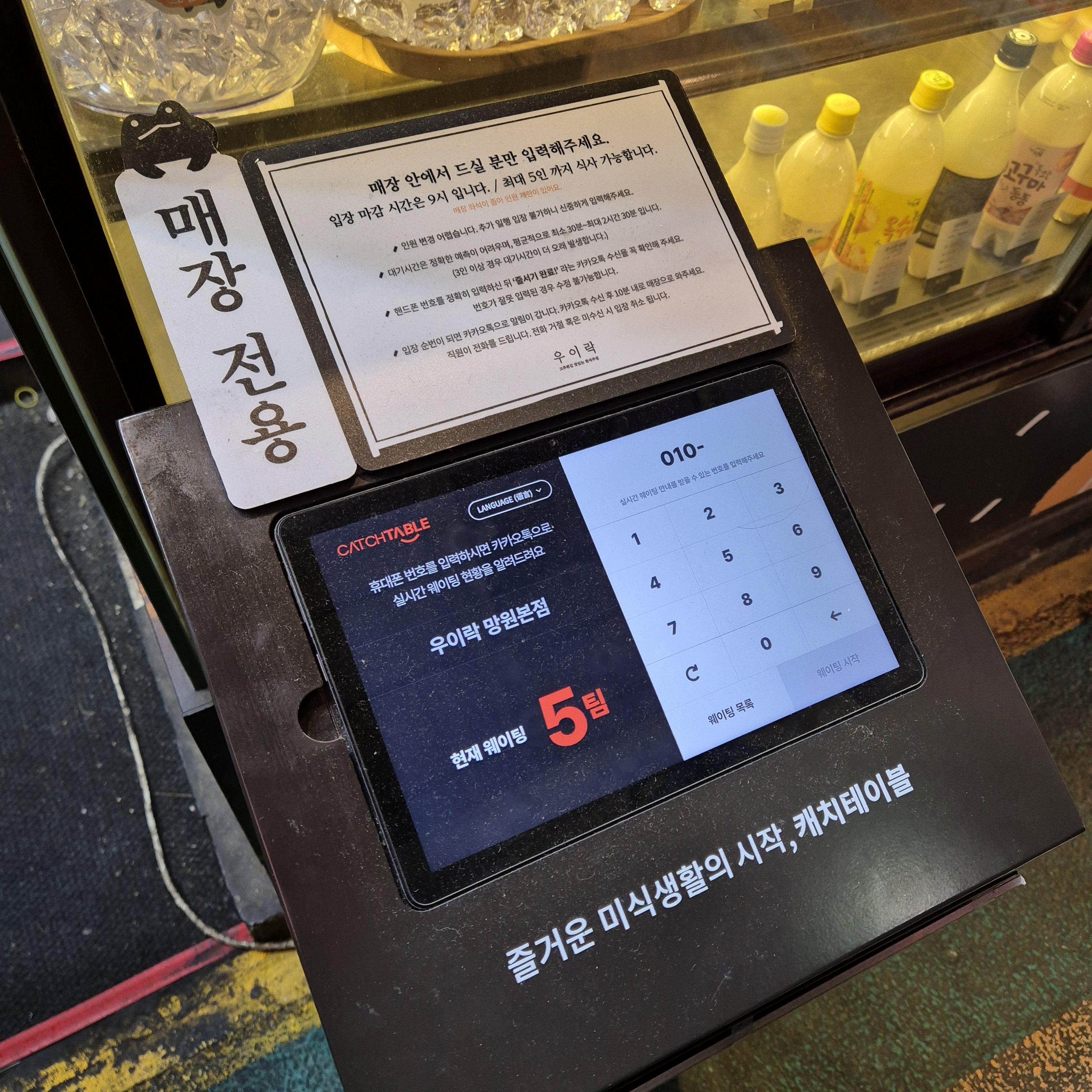 굵기나 크기나 사이즈를 봤을 때는 처음에는 고구마튀김인가 싶었다. 하지만 사람들이 줄 서서 먹는 것을 보고, 한번 먹어봐야겠다고 마음을 굳혔고, 기다리기 장인인 우리는 한번 기다려봤다. 망원 우이락은 매장에서 드실 분과 포장해 가실 분을 구분하기 위해서 키오스크와 캐치테이블을 동시에 운영하고 있다.