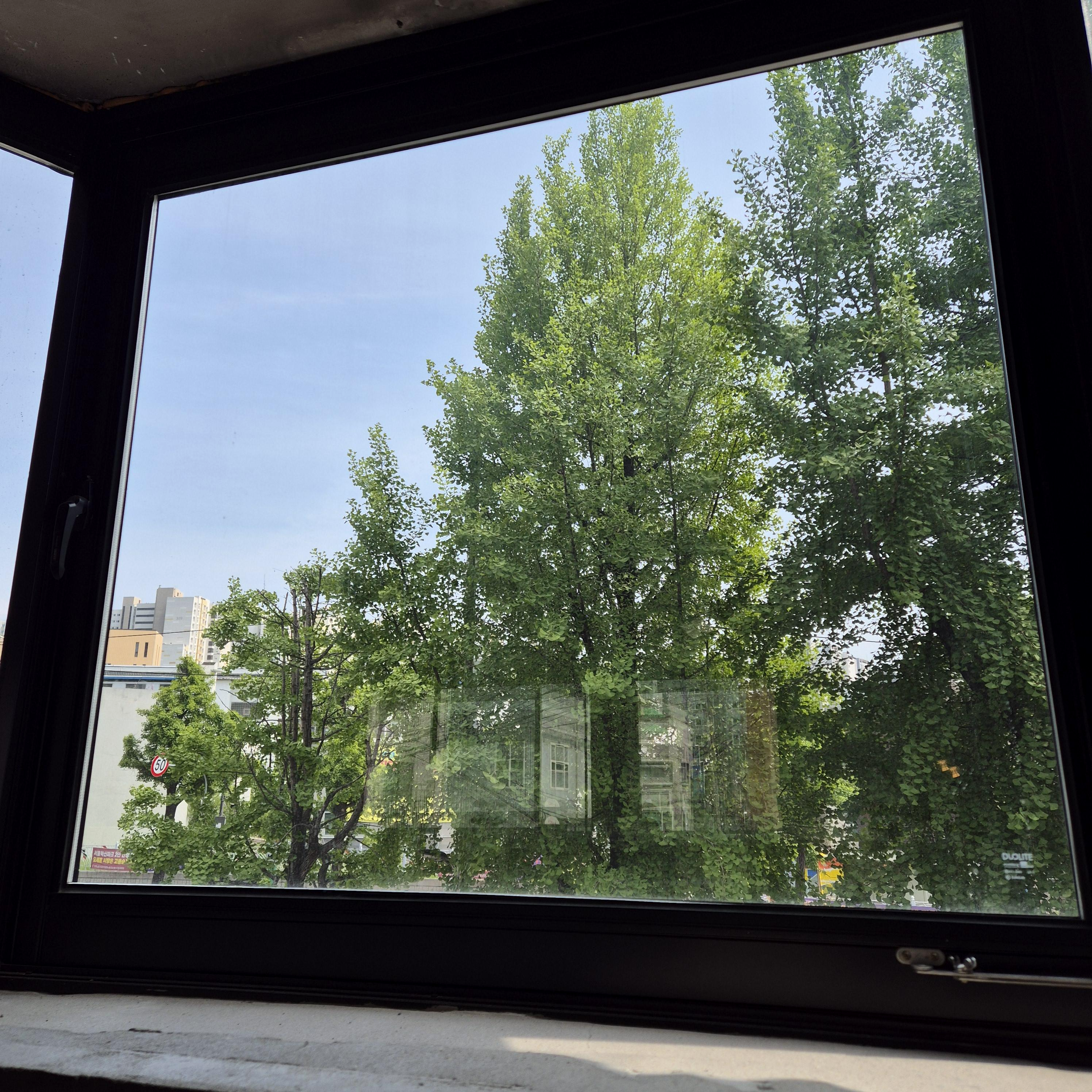 1층처럼 완전한 통창은 아니지만, 2층도 나름 큰 창으로 밝은 외부를 볼 수 있었다. 아쉽게도 아래는 볼 수 없지만, 날씨가 너무 좋아서 창을 통에 들어오는 햇살이 나의 마음을 정화시켜 주었다. 나른하게 한잠 때리고 싶은 오후였다.