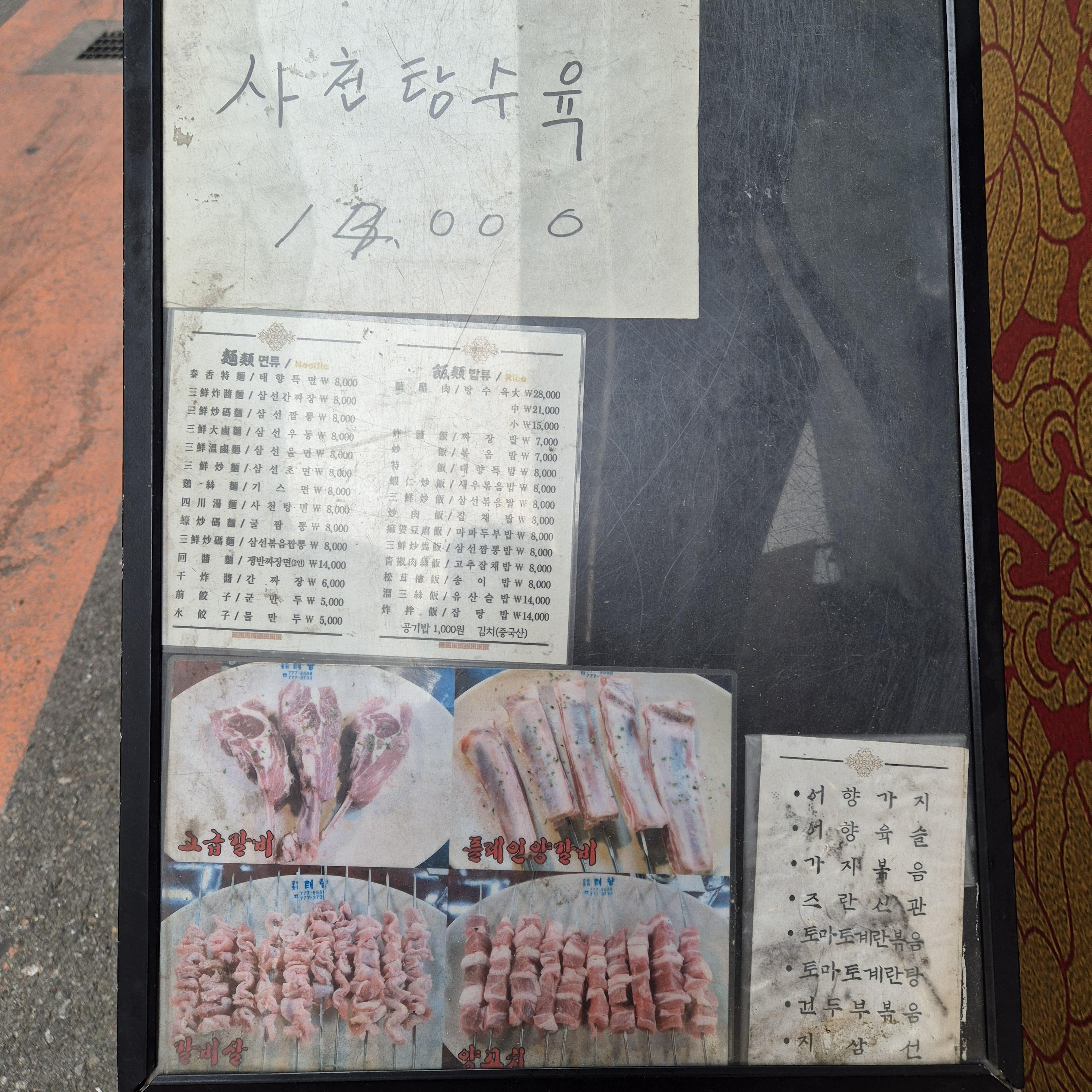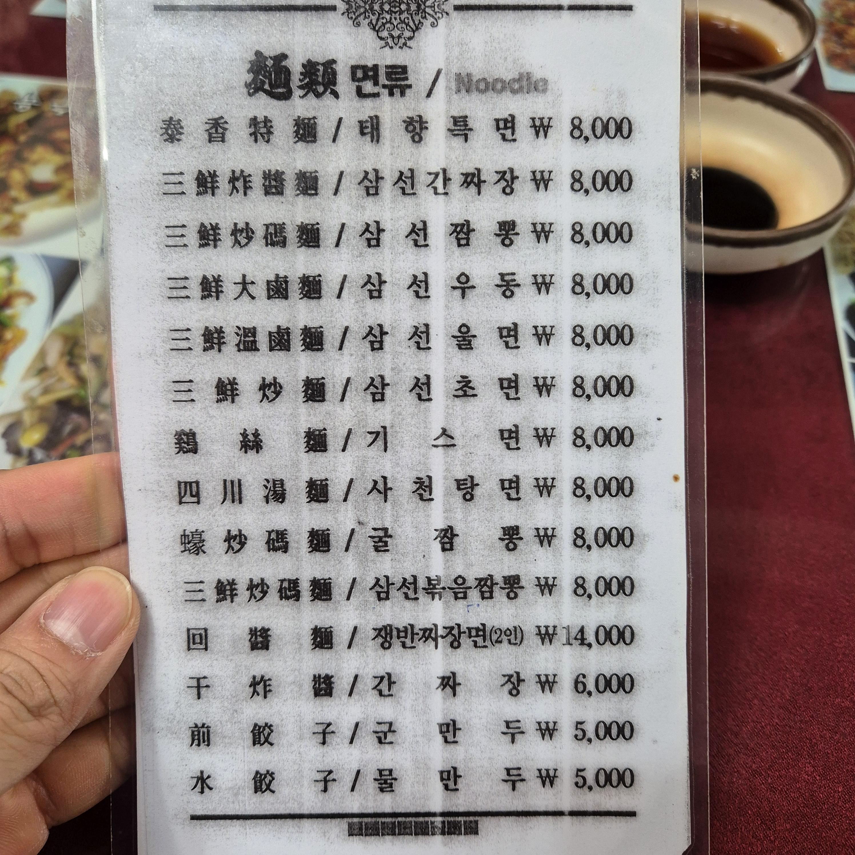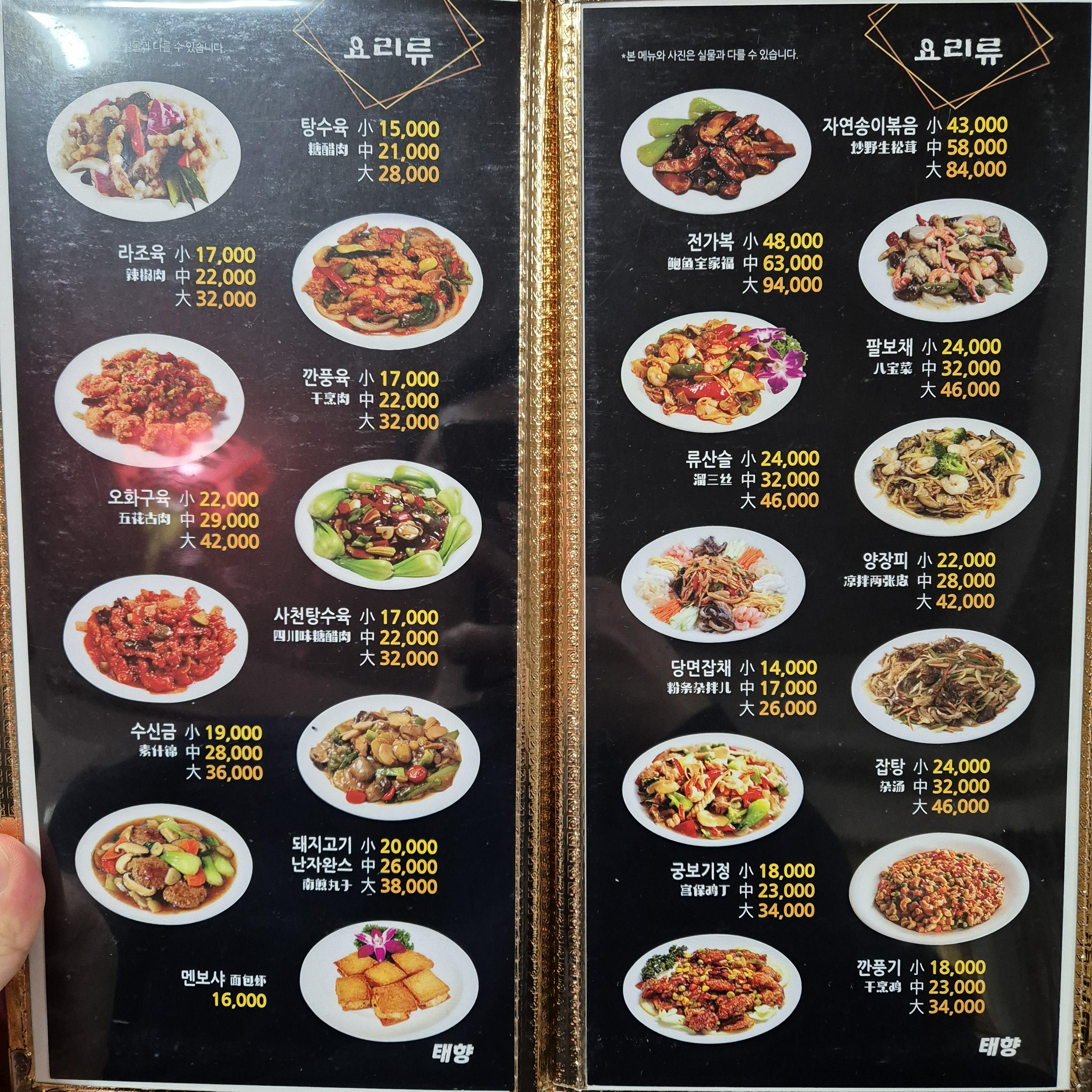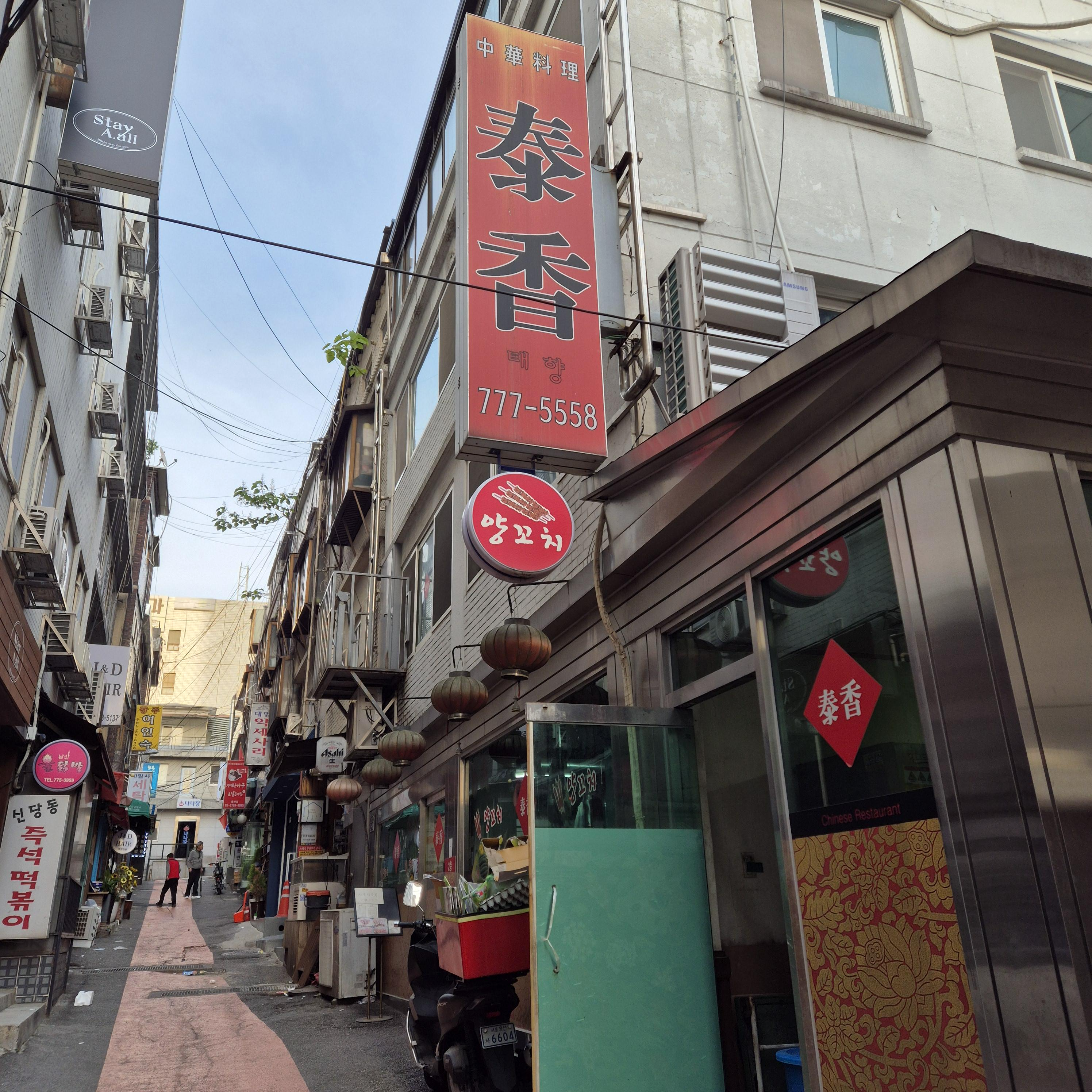 여기가 맞나 싶은 골목에 위치한 태향이었다. 언뜻보면, 그냥 평범한 오래된 중국집이었다. 아니 실제로도 그렇긴 하다. 일행을 기다리면서 메뉴를 살펴봤는데, 굳이 내부로 들어가지 않고도, 외부에 메뉴판이 있어서 어느 정도 확인할 수 있다.