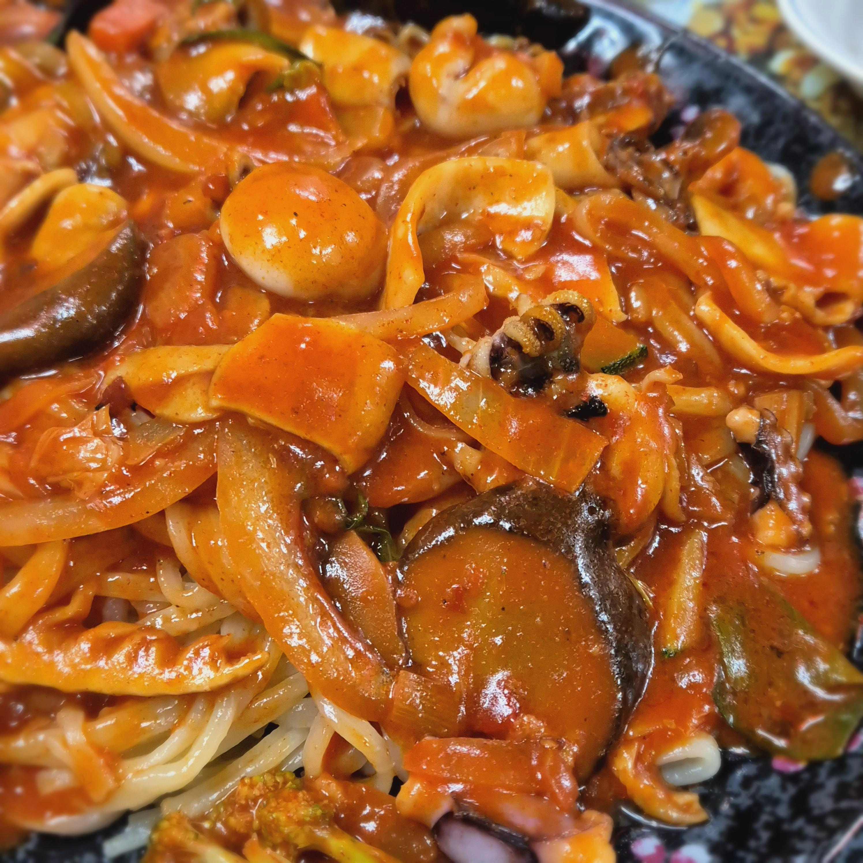 볶음 짬뽕도 탕수육과 마찬가지로 양과 비주얼에서 시선을 확 끌어버렸다. 탕수육은 '소'자에 놀랐다면, 볶음짬뽕은 이게 8,000원 인 것에 놀랐다. 그리고 해산물도 꽤나 많이 들었고, 약간 매콤함이 있어서, 탕수육과도 잘 어울렸다. 언듯 보면 좀 대충 만든 느낌도 있을 수 있지만, 맛있으니 그건 됐고, 사람들이 왜 태향에서 많고 많은 가성비 음식 중에 볶음짬뽕을 그렇게 추천하는지 알 것 같았다.