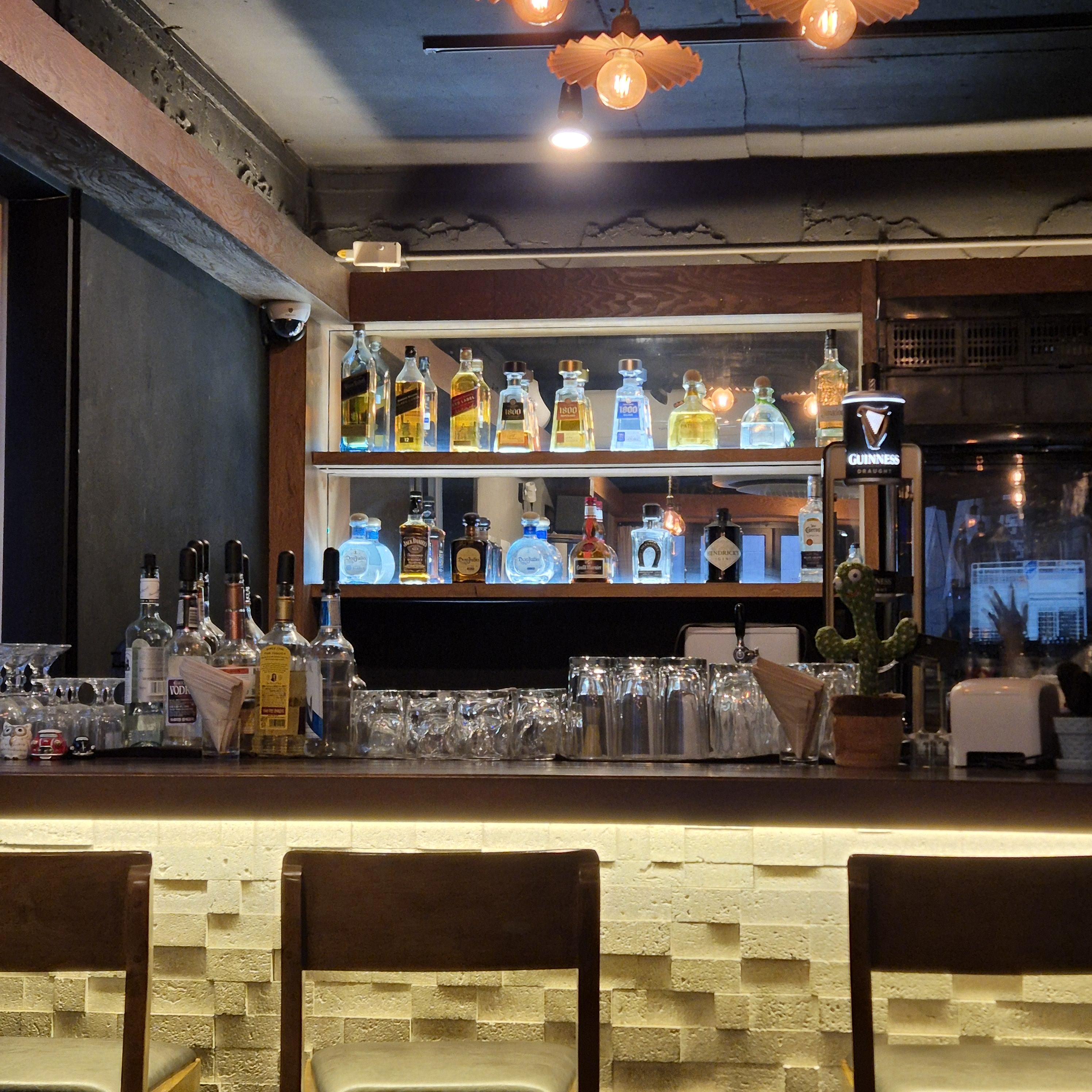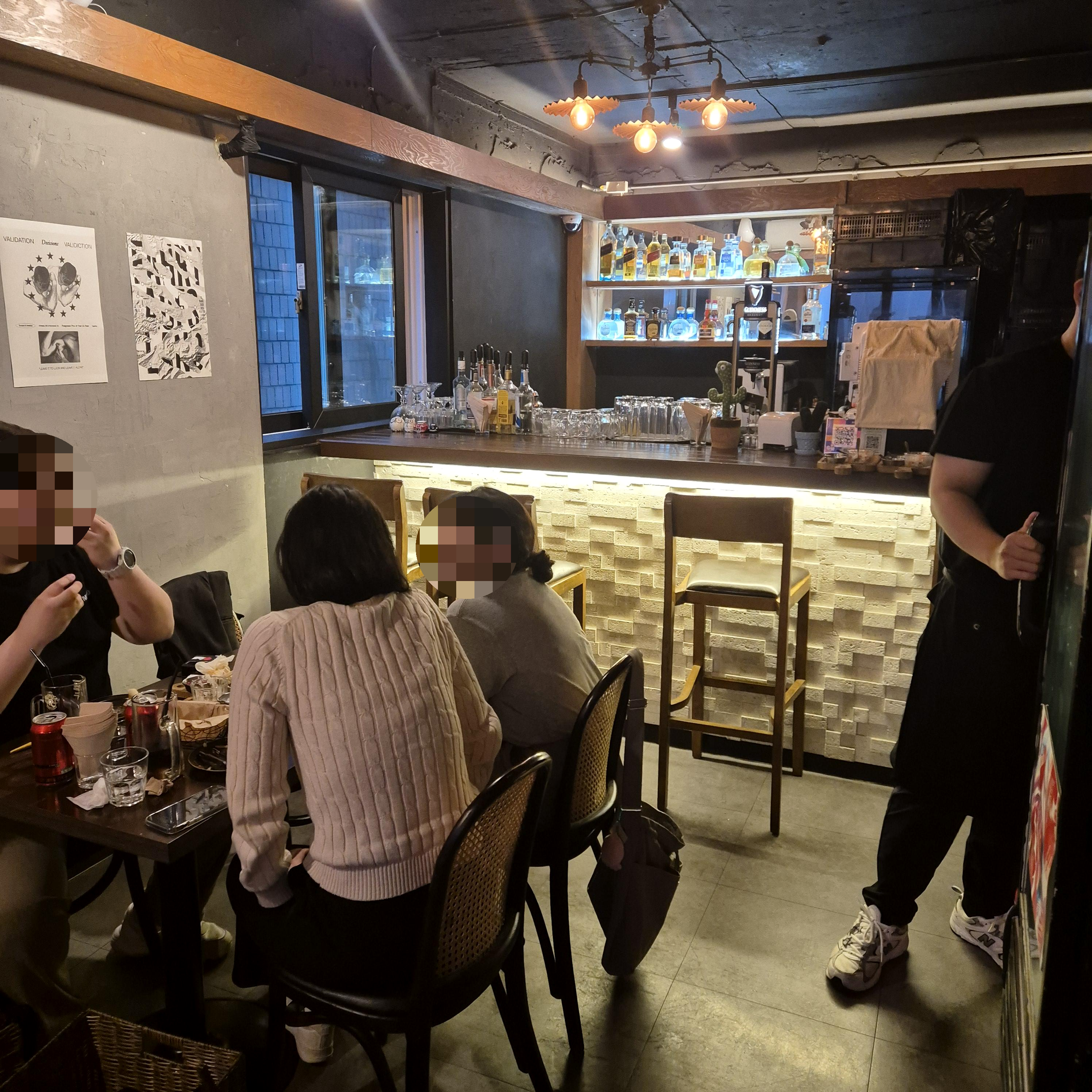 생각보다 내부의 분위기가 날씨와 찰떡궁합인냥 그윽하면서도 모던했다. 약간 어둑한듯한 분위기가 바에서 느낄 수 있는 무드랄까. 하지만 일반바보다는 조금은 경쾌한 느낌이었다. 내부의 크기는 아담했지만, 그렇다고 비좁은 느낌은 아니었다. 각 자리마다 가방을 놓을 수 있는 바구니도 있다.