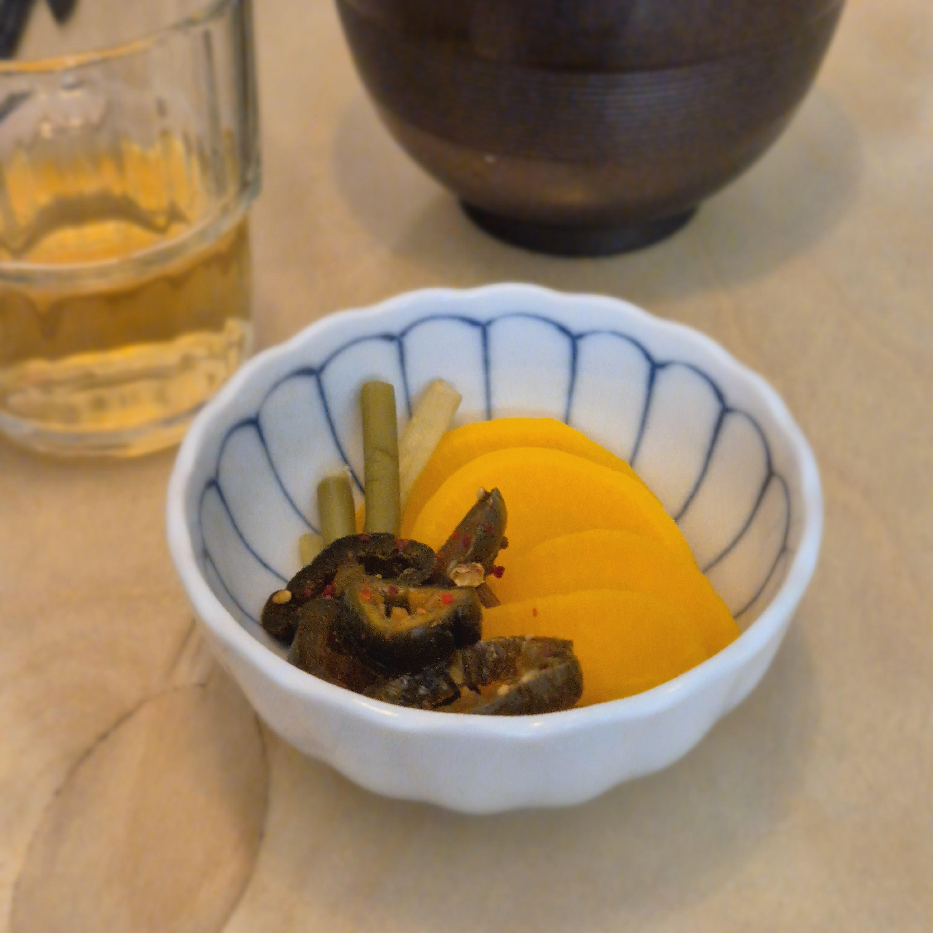 군더더기 없는 찬과 국이었다. 국은 은은하고 삼삼하니 속을 달래기 좋았고, 무말랭이 같은 단무지도 크기가 적당해서 먹기 좋았다. 메뉴들이 간이 세지 않아서 더 마음에 들었다. 그렇게 아직 메인이 나오지 않은 상태였어도 "괜찮은데~" 라는 생각을 할 때 즈음 우리의 메인 메뉴가 나왔다.