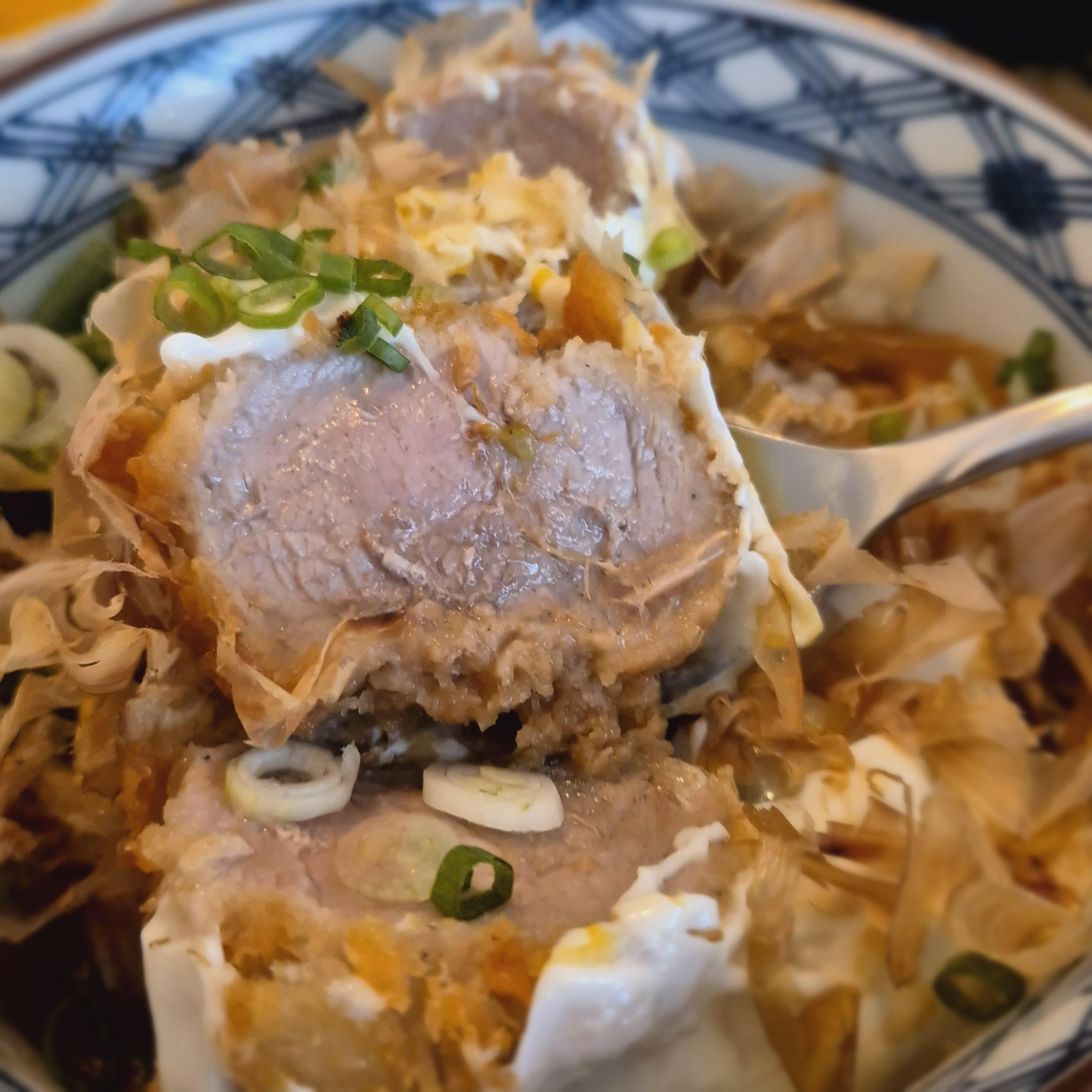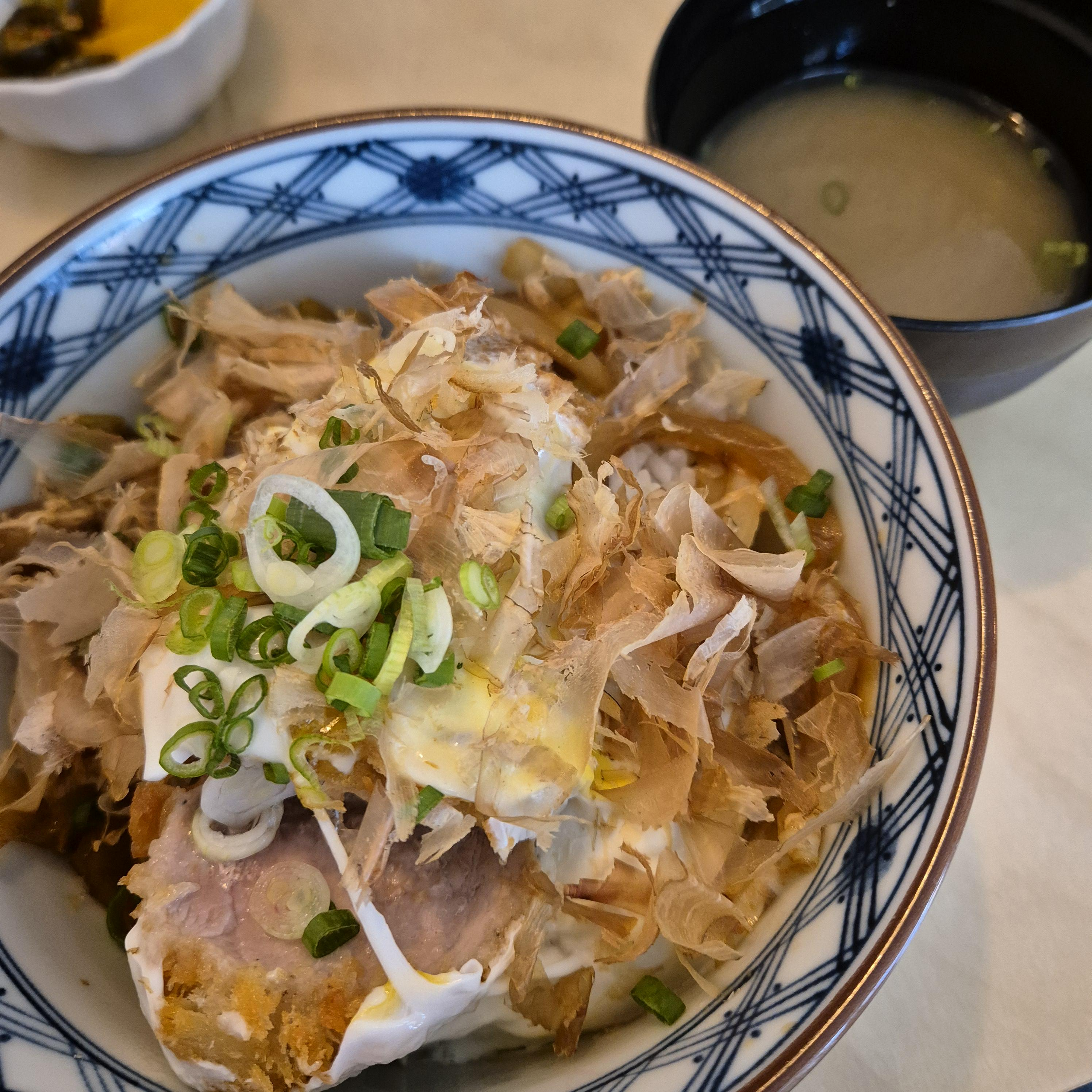 필자의 메뉴였던 히레카츠동은 사실 비주얼적인 면에서는 가쓰오부시 때문인지 막 엄청나다는 느낌을 받지는 못했지만, 살짝 걷어내니 등장한 큼지막한 히레카츠가 눈길을 사로잡았다. 은은하면서 살짝 달달한돈부리 소스에 중간중간 씹히는 가쓰오부시, 그리고 밥과 함께 크게 베어 먹는 부드러운 히레카츠까지 너무 완벽한 조합이었다.