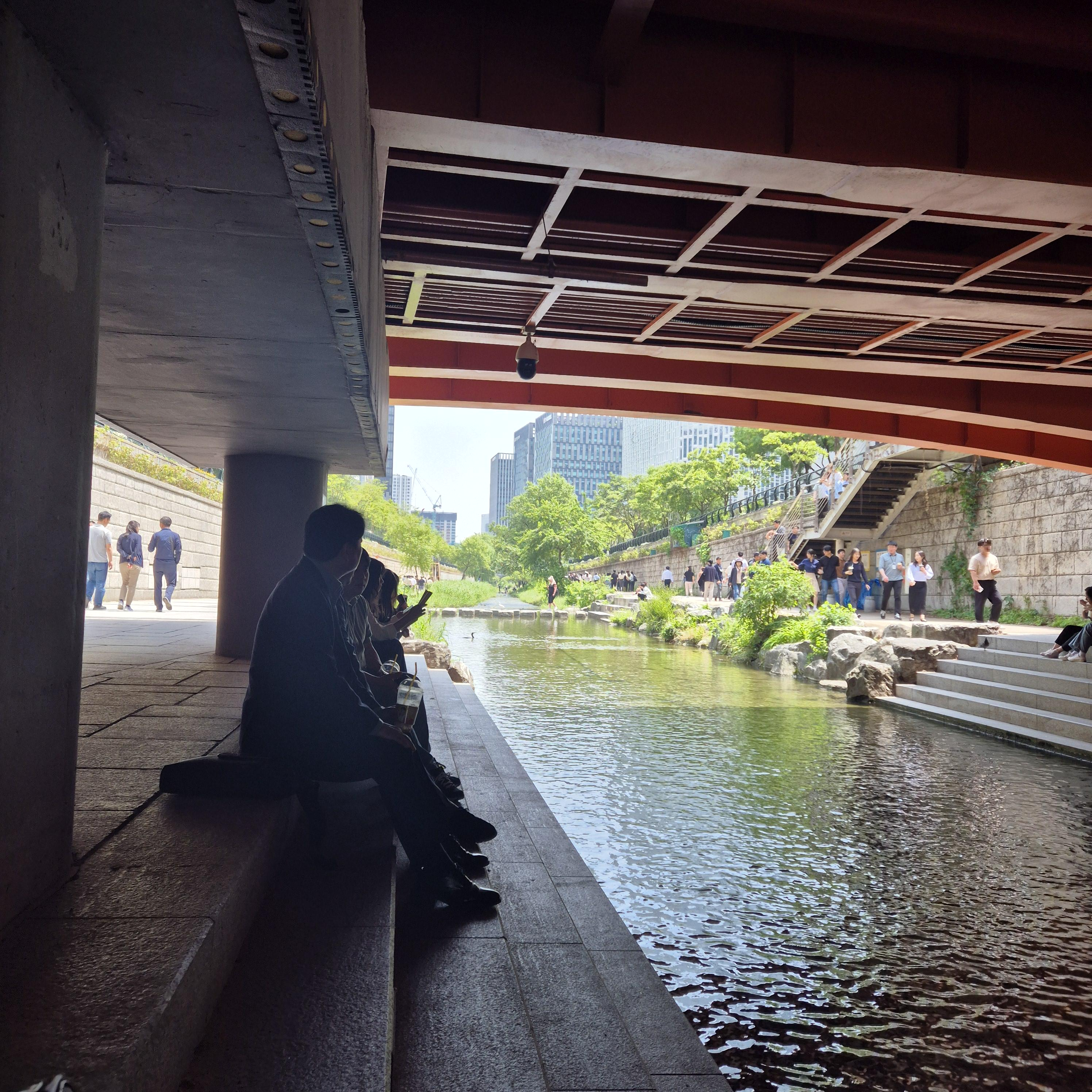 우리는 배를 채우고, 간단히 커피를 든 채로 청계천으로 향했다. 날씨는 점점 더워지고 있어서 괜스레 앞으로의 날이 조금 걱정스럽긴 했지만, 하루에 한 번 오는 점심시간, 종로돈부리와 청계천 덕분에 알차게 보내서 기분이 좋았다.