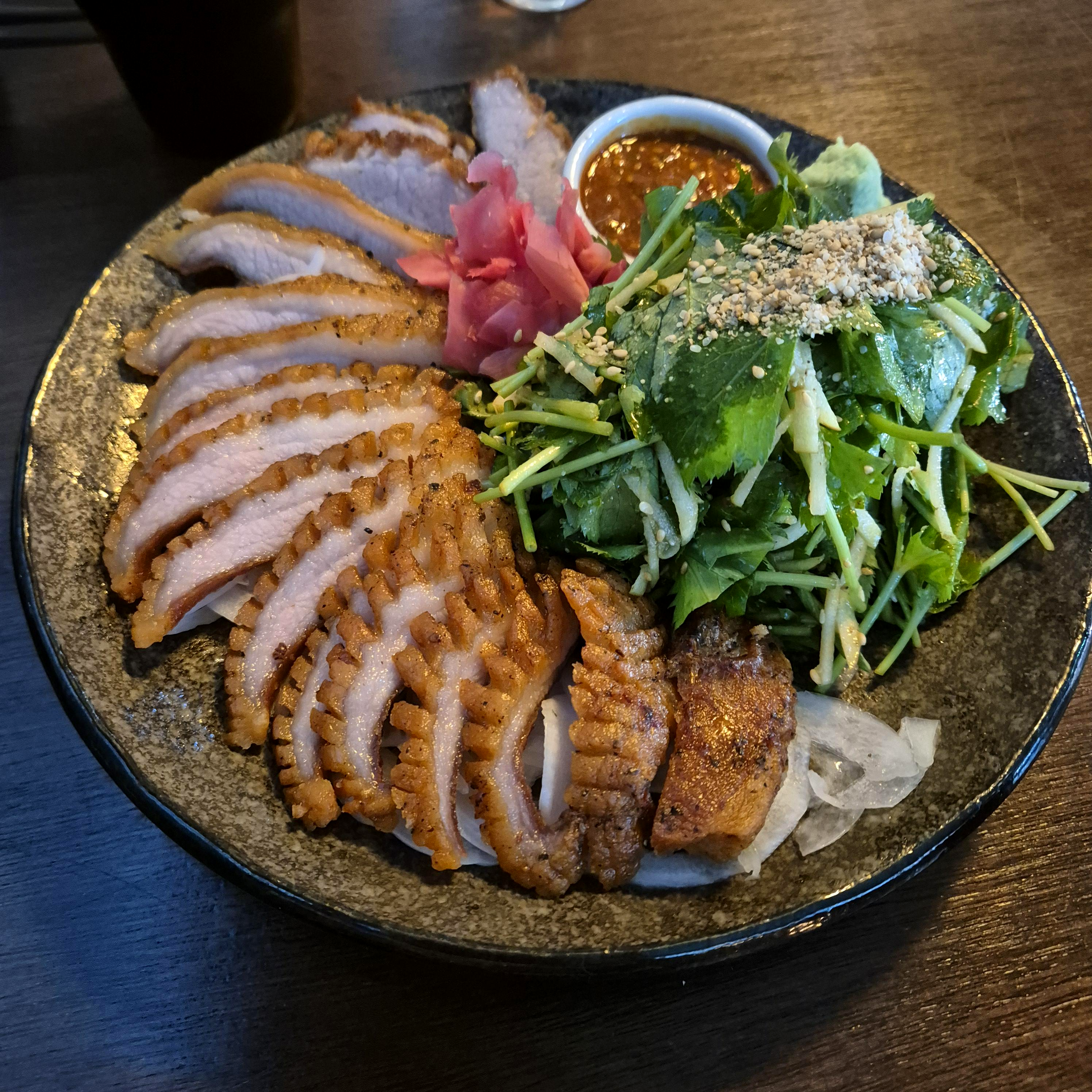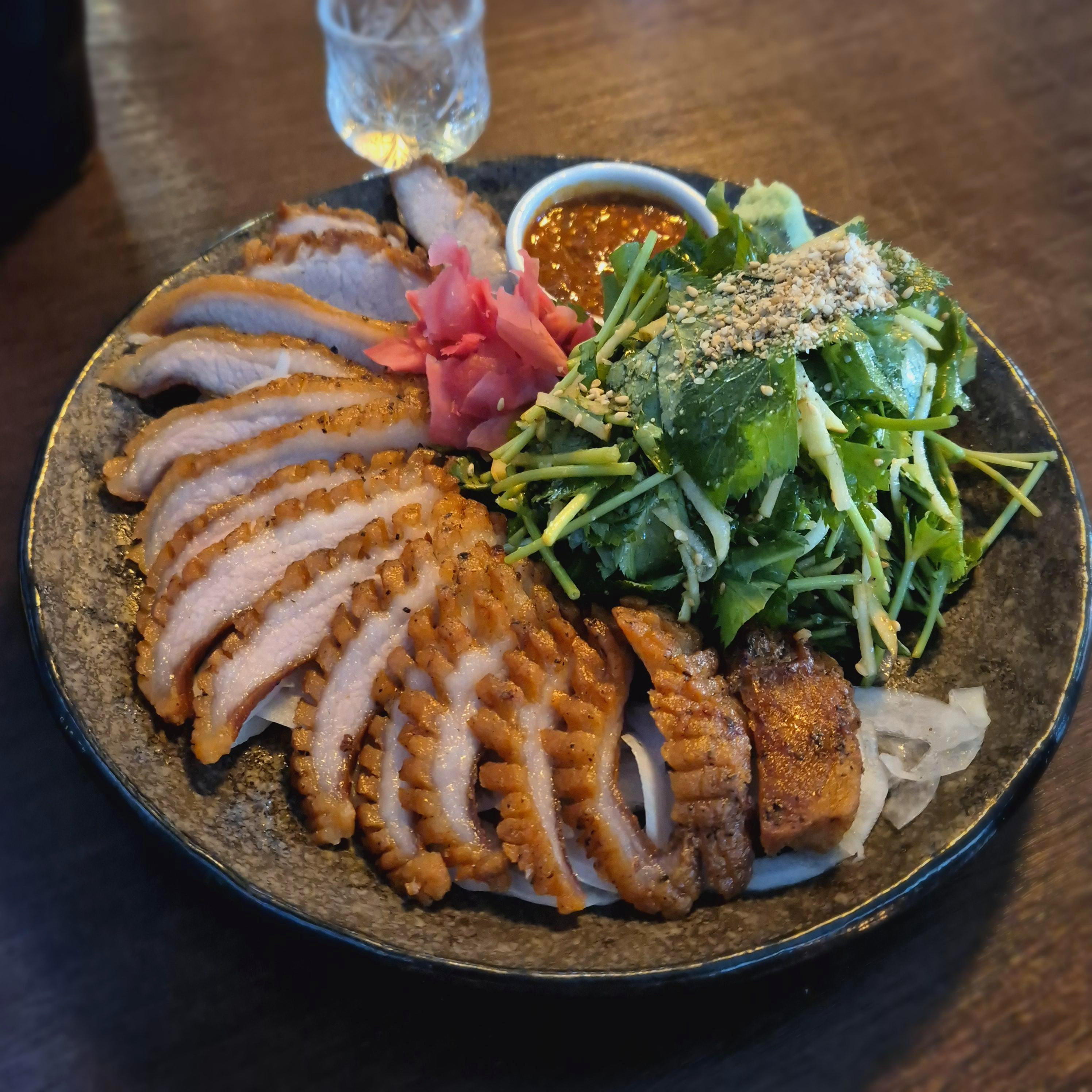 우선 비주얼이 참 맛깔스러웠다. 신선해 보이는 참나물과 함께 있으니 많이 먹어도 건강을 챙길 수 있을 것만 같았다. 수비드 방식으로 삶아진 고기는 부드러우면서도 꽉찬 고기의 식감을 주었고, 새콤달콤한 참나물과 함께 먹는 조합은 예상했던 맛보다 훨씬 좋았다. 가격에 비해 양은 살짝 아쉬웠다는 생각이 들다가도 한입 먹으면, 그 가격도 감사하다는 생각이 공존했다.