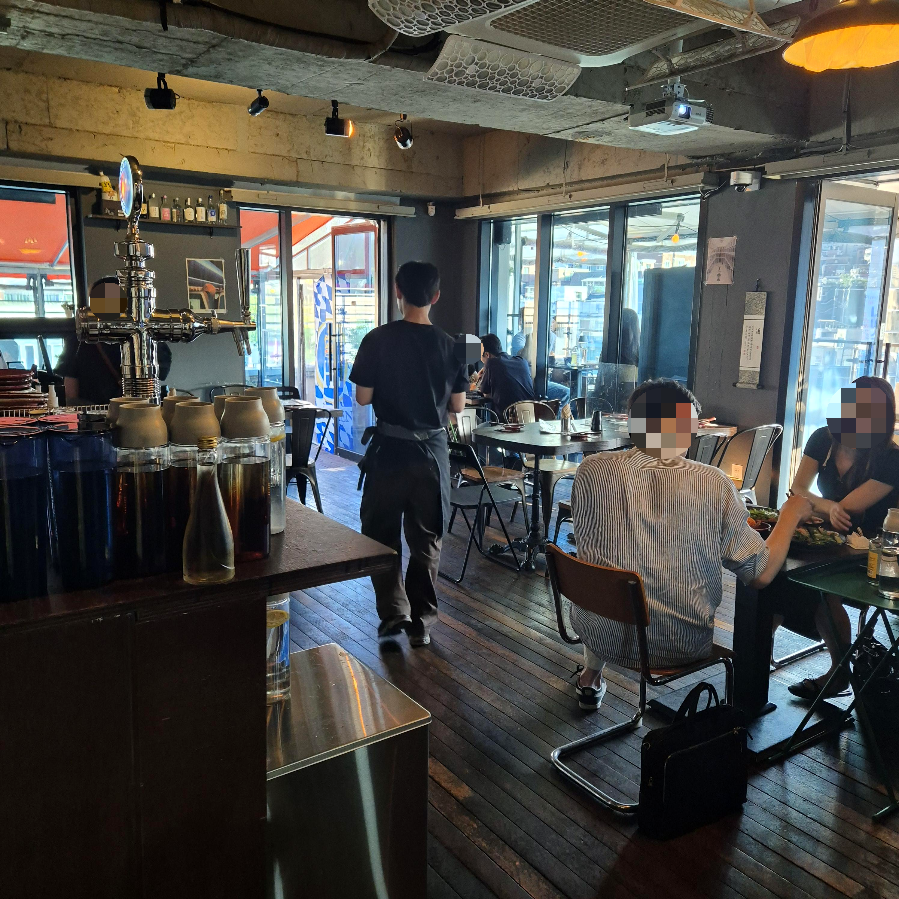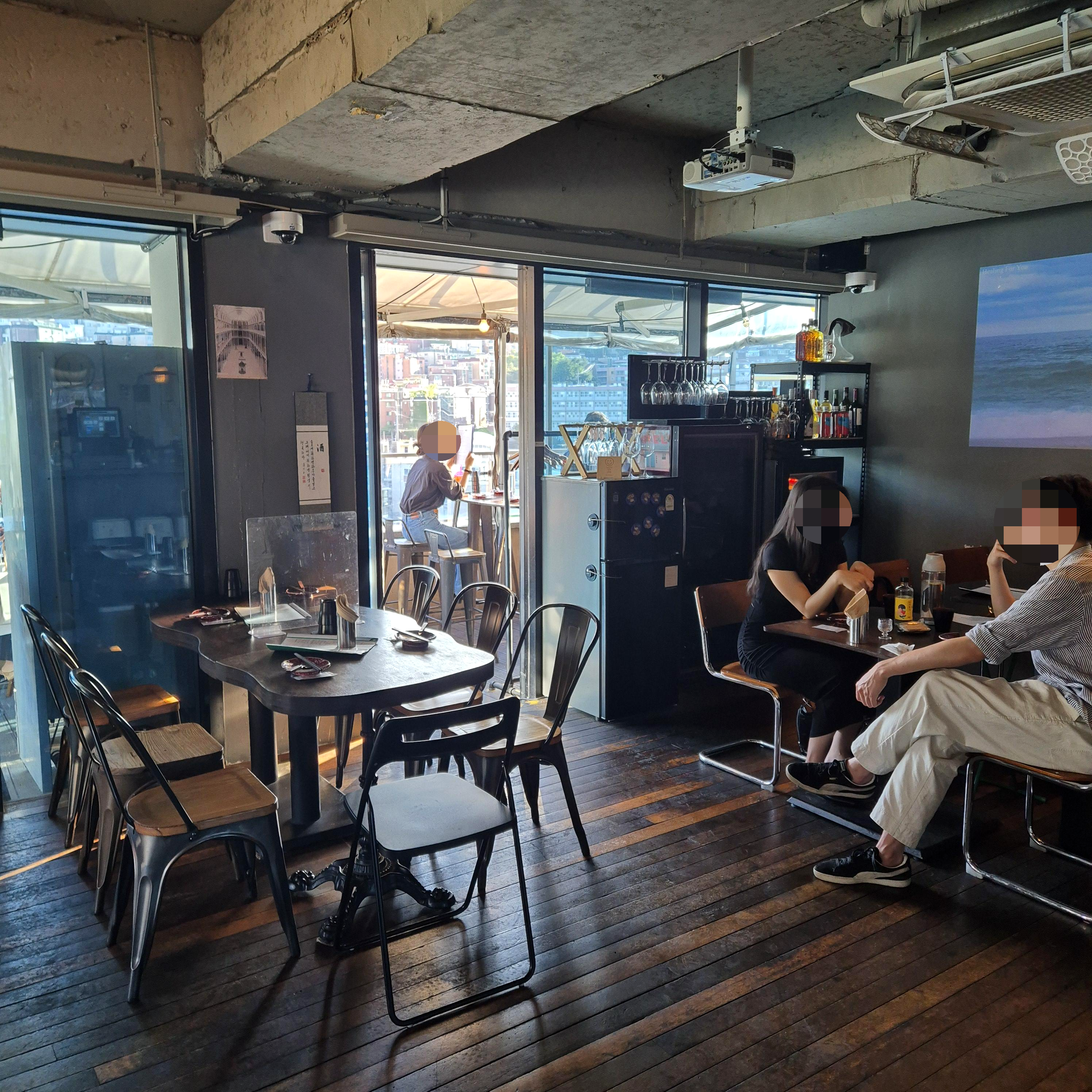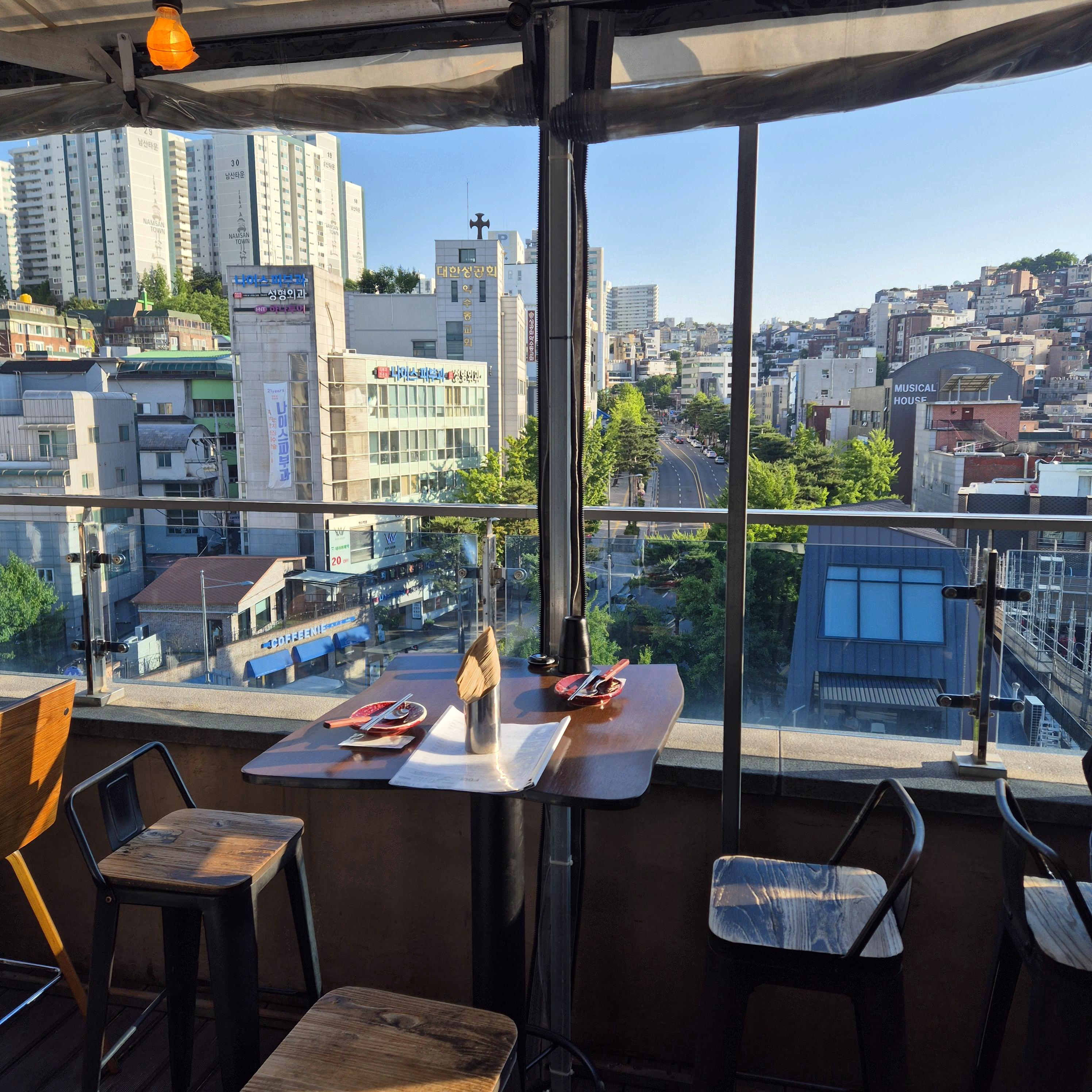 남산뷰 부터 아파트 뷰까지 정면으로 큰 차도도 뚫려있어서 너무 좋았다. 내 루프탑 자리였어야 하는데 하는 아쉬움이 남았지만, 보는 것만으로도 좋았다. 입구를 기준으로 정면과 좌측 테라스 자리가 있는데, 정면 자리는 뻥 뚫린 남산뷰와 약수 뷰가 보이는 루프탑이, 좌측은 뷰는 좀 애매하지만 마치 전원주택에 놀러 온 친구들과 오붓한 식사를 즐길 수 있는 공간이 준비되어 있다. 물론 내부 자체도 나쁘진 않다.