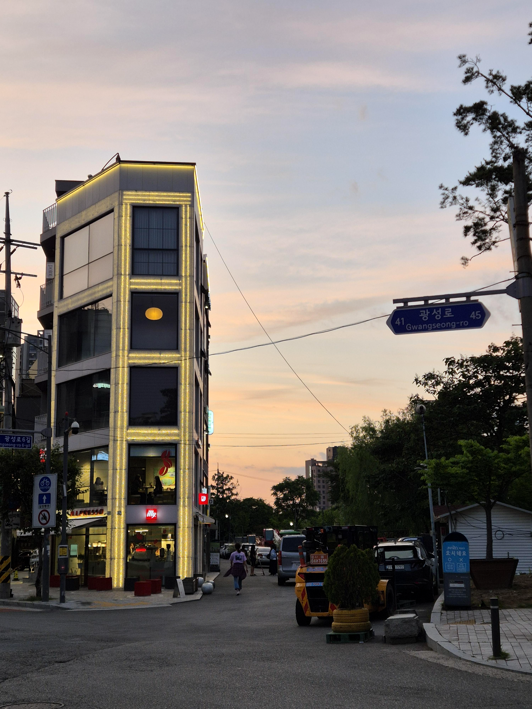 그렇게 배부르고 아주 맛있게 먹고 난 뒤, 계산을 하는데 이 3개의 가격이 21,000원이었고 너무 괜찮은 가격이라고 생각했다. 요즘 카페에서 커피와 샌드위치만 먹어도 막 만오천 원은 나오는데 말이다. 거기에 선선한 바람과 노을 진 하늘이 보이는 야장의 분위기까지 있으니 완벽한 소확행이었다.
