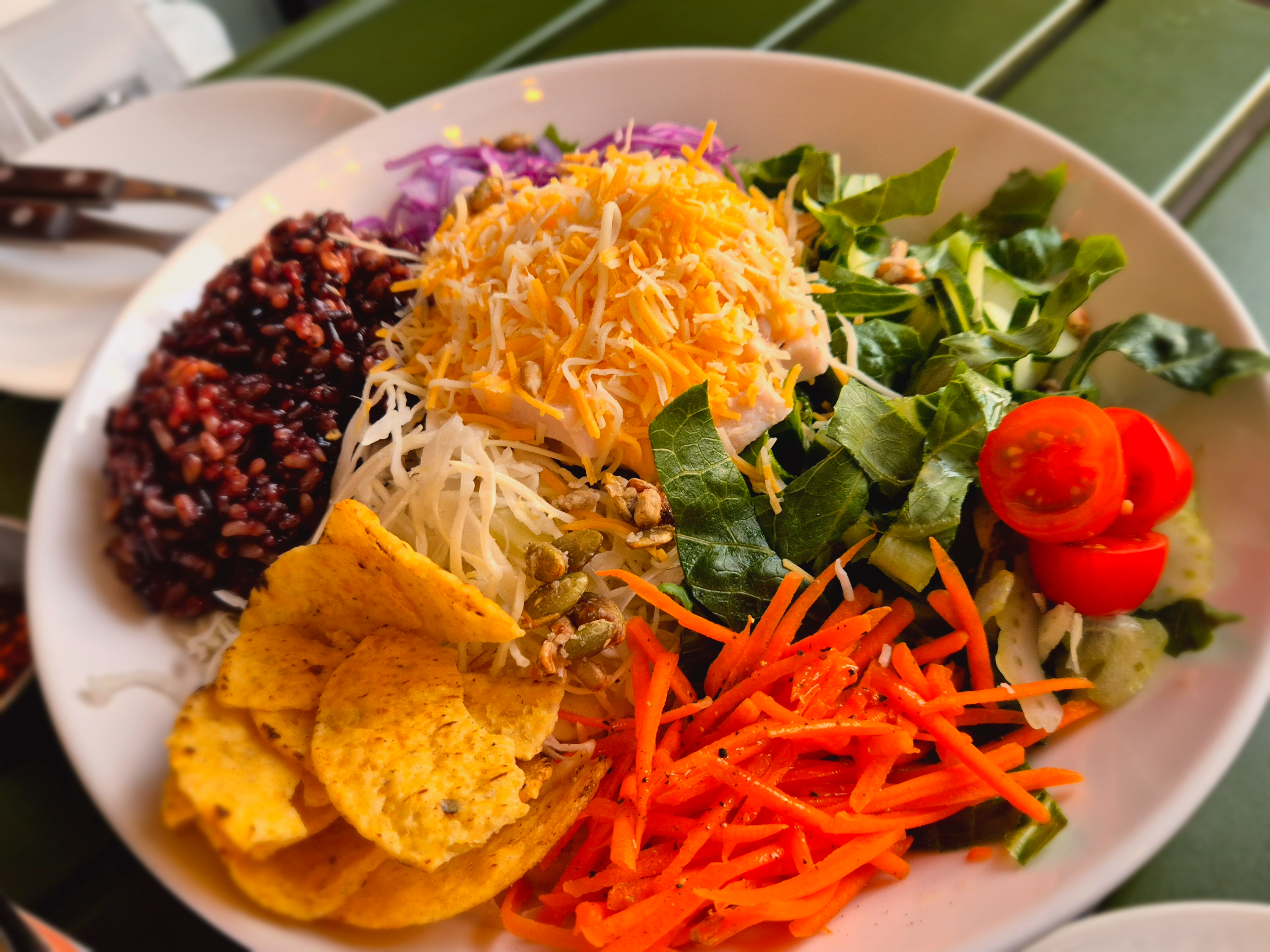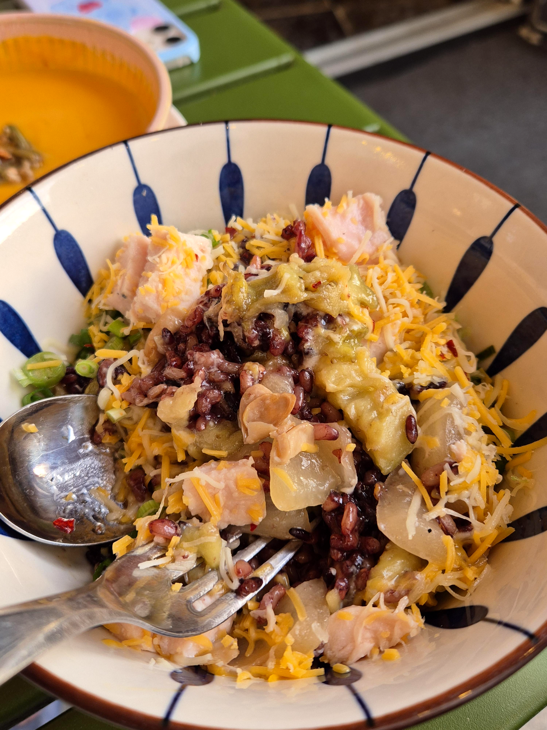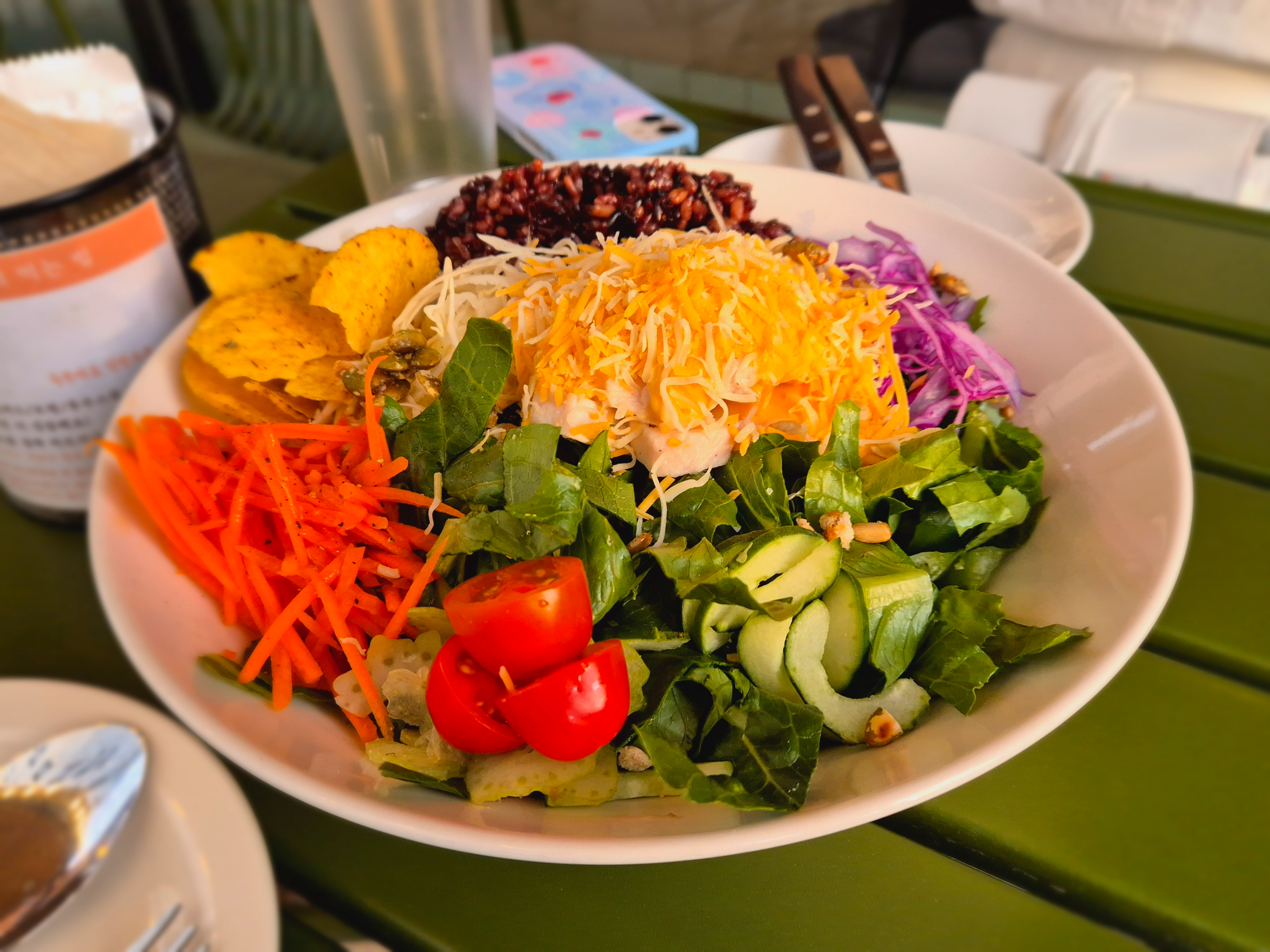 수북한 야채와 중간중간 씹히는 수비드 닭가슴살 그리고 딱 알차게 들어간 현미밥까지 아주 만족하면서 먹었던 테라스에서의 한상차림이었다.