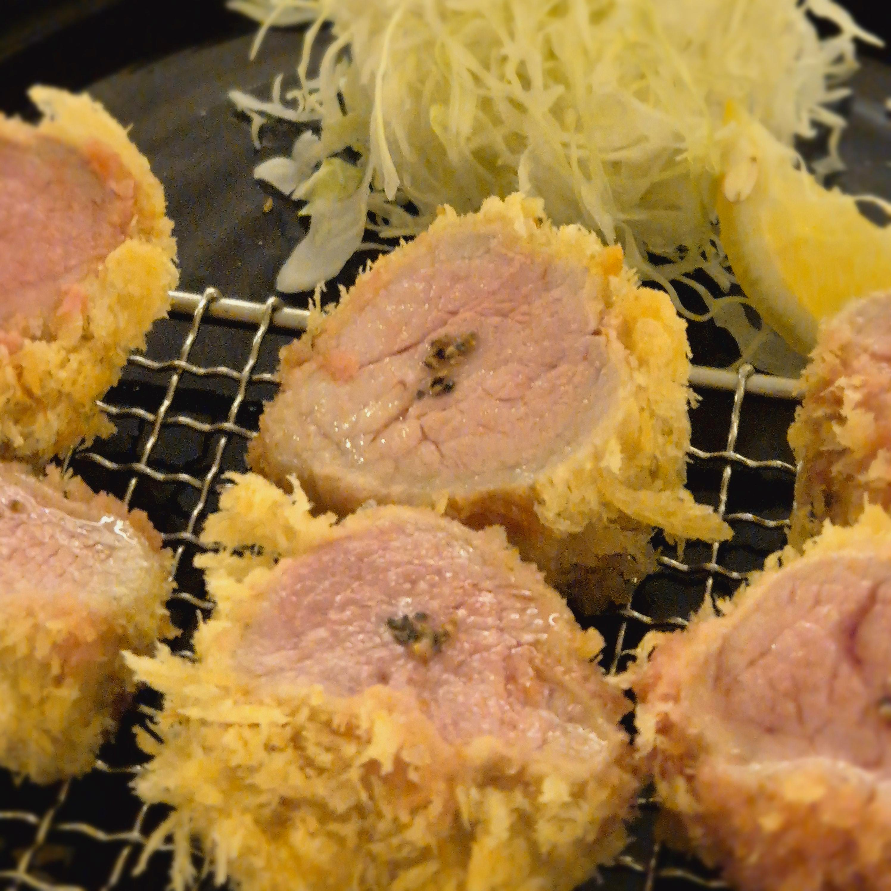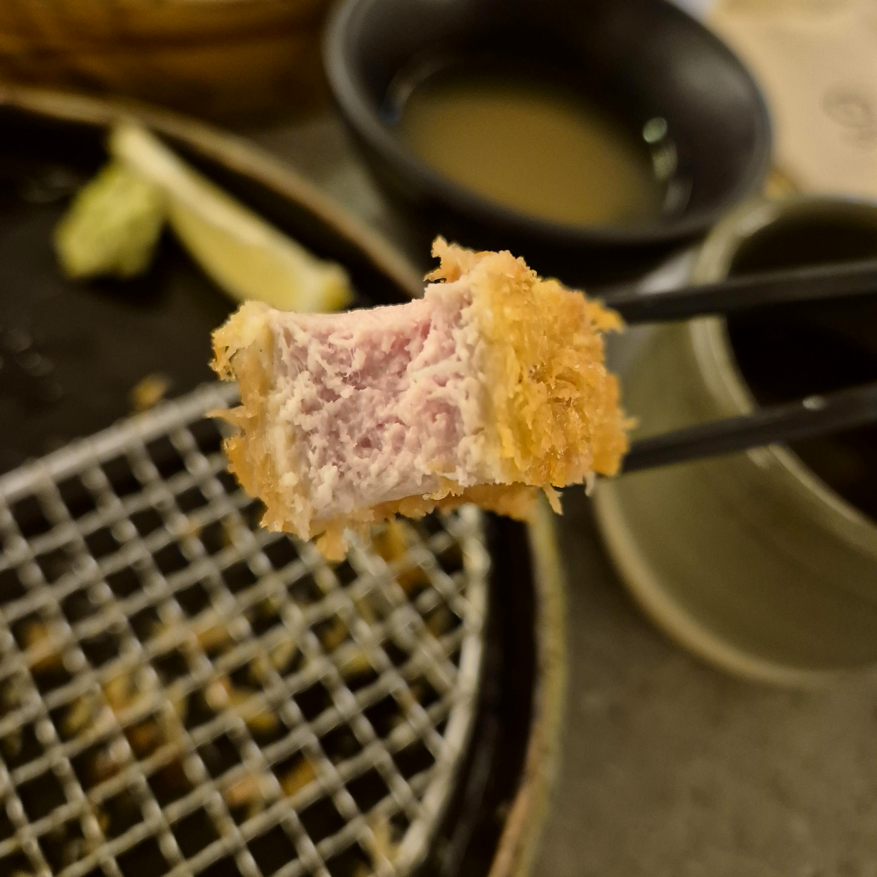 안심은 그래도 우리가 평소 볼 수 있는 비주얼인데, 사진에서도 느껴지듯이 촉촉한 육즙이 아주 유혹적인 모습을 하고 있었다. 역시나 얇지만 바삭한 튀김옷과 안심만의 부드러움의 조합이 좋았다.