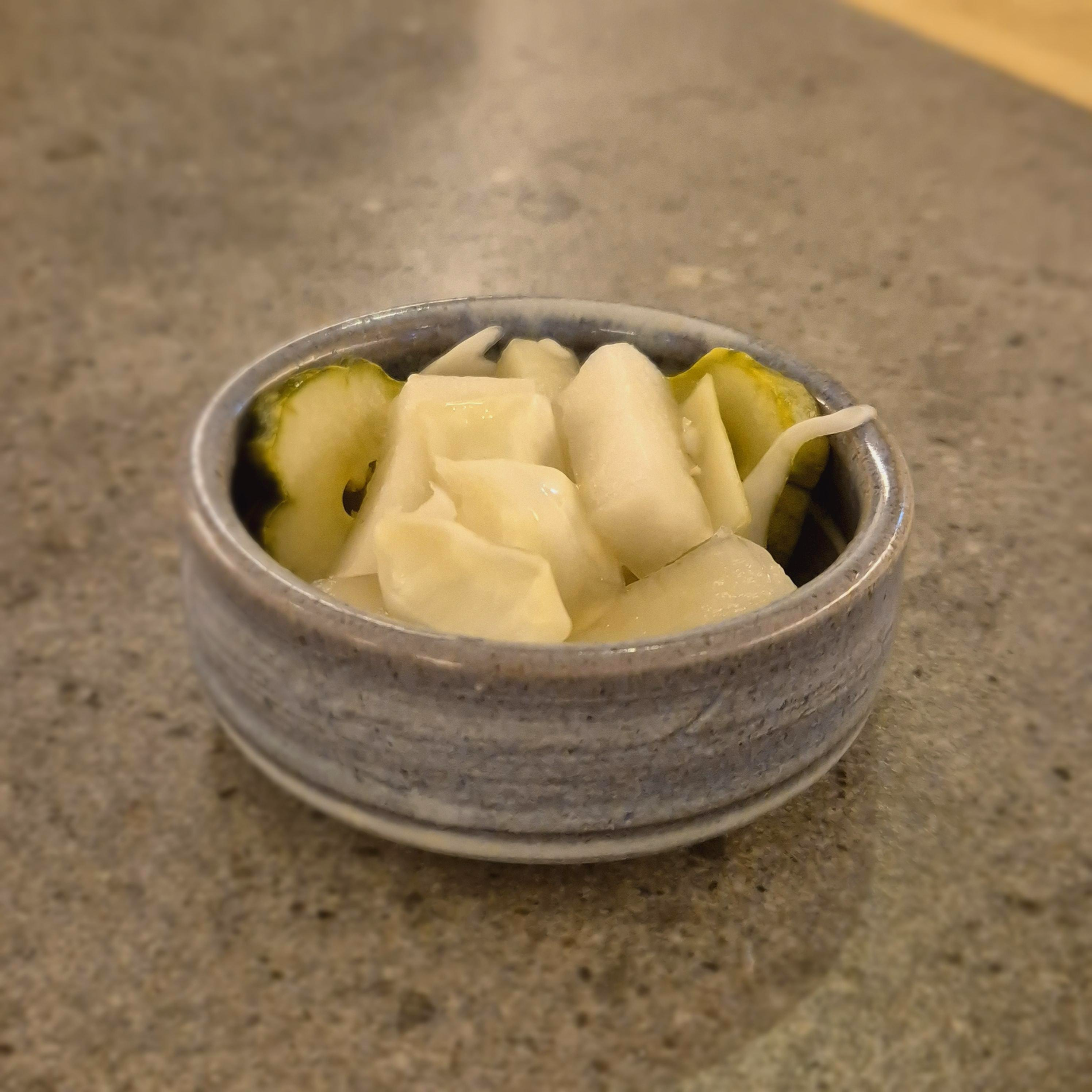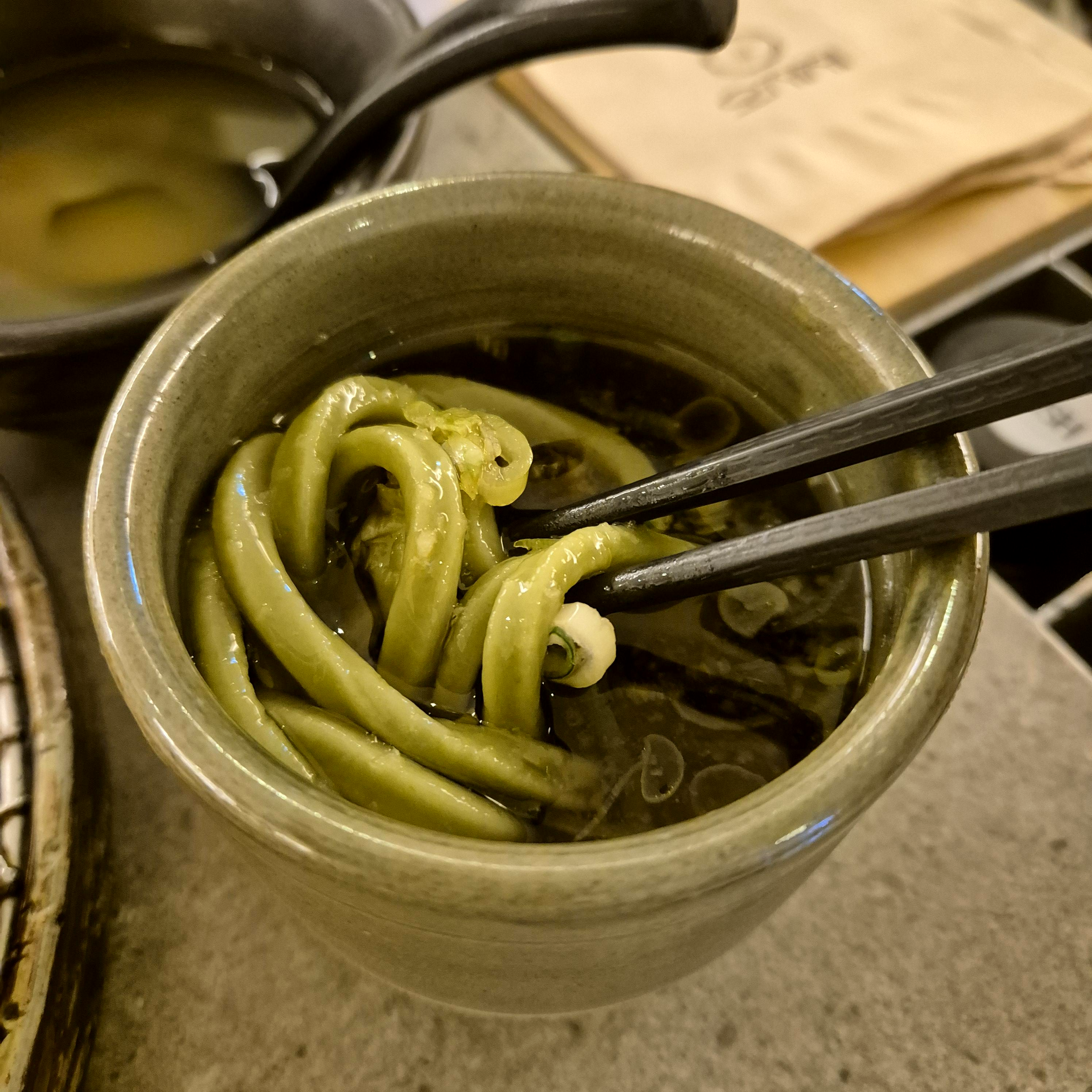 역시 비주얼이 비범했다. 수타로 만들어졌을 것만 같은 두툼한 면이 꽈배기처럼 꼬아져 얼음 위에 싱싱과 탱탱함을 가득 담아 나온다. 육수를 입맛에 맞추어 만든 후 면을 1~2가닥씩 가져가서 먹으면 정말 정말 맛있다.