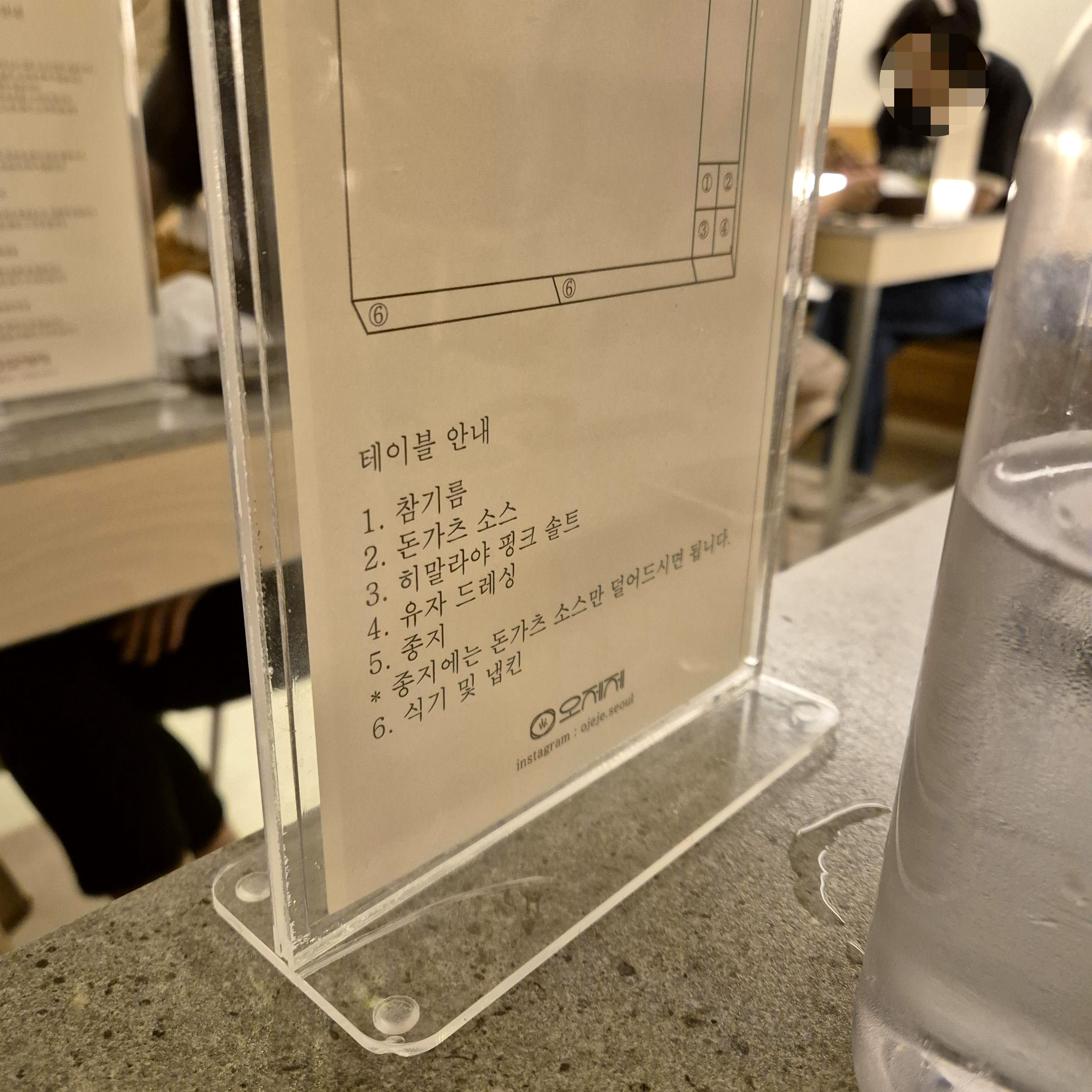 아주 친절한 오제제였다. 테이블에 무엇이 있고, 명칭을 알려주는 안내판이 있는 것도 소소하지만 좋았고, 맛있게 먹는 방법을 메뉴별로 알려주는 것 또한 처음 접한 나 같은 사람에게는 큰 도움이 되었다. 그리고 모든 소스나 통들을 테이블에 잘 정돈되게 하는 탁자도 인상 깊었다. 그렇게 지인과 노트북 관련 이야기를 하고 있는데, 우리의 메뉴가 서서히 나오기 시작했다.
