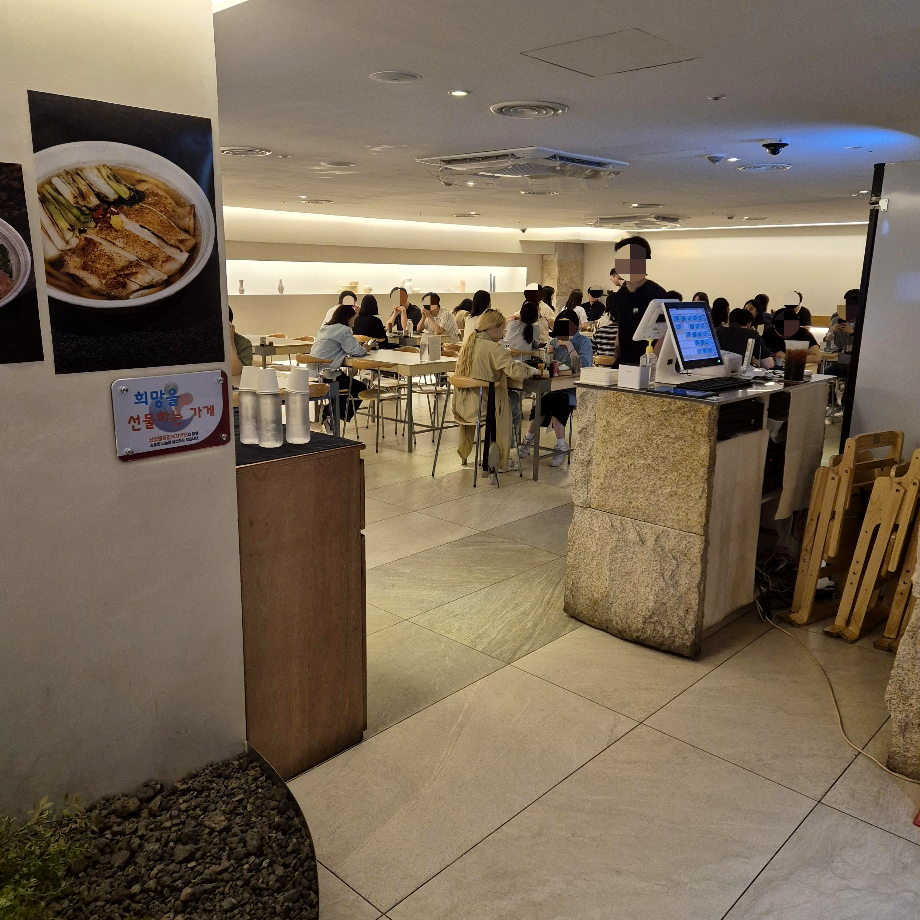 사람들이 너무 많아서 제대로 찍지는 못했지만, 내부는 정갈한 직사각형의 모양이다. 전체적인 식당의 분위기, 조명, 색상 등이 잘 어우러져서 고급지고 깔끔한 내부였다. 자리에 따라 사이사이 간격의 차이가 조금 있긴 하지만, 먹는데 지장이 있지는 않았다.