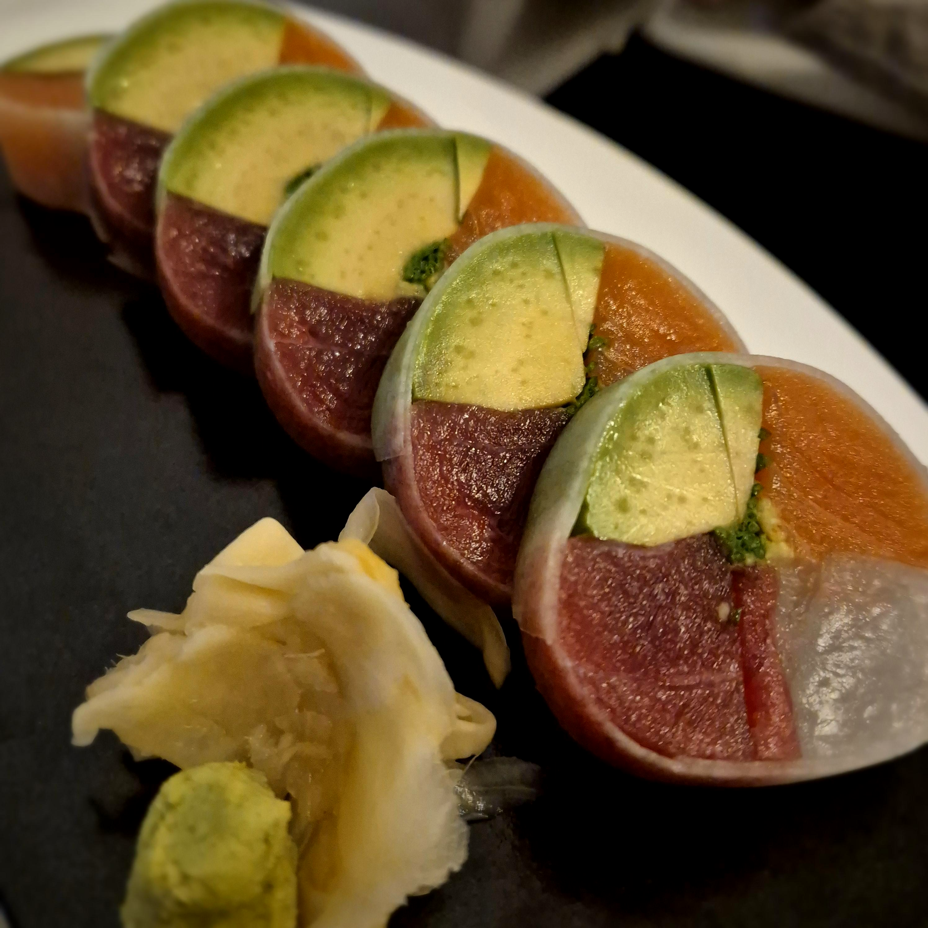 있는 것은 연어, 참치, 흰살생선, 아보카도 그리고 부추와 고추냉이 정도가 전부였지만, 묘하게도 묵직하고 맛있었다. 식감에서도 쫀득함과 부드러움 느끼함과 담백함 복잡스럽지만 맛이 조화스러웠고, 부추와 와사비가 조금 뻣뻣할 수 있는 조합에 윤활유를 넣어준 맛이었다.