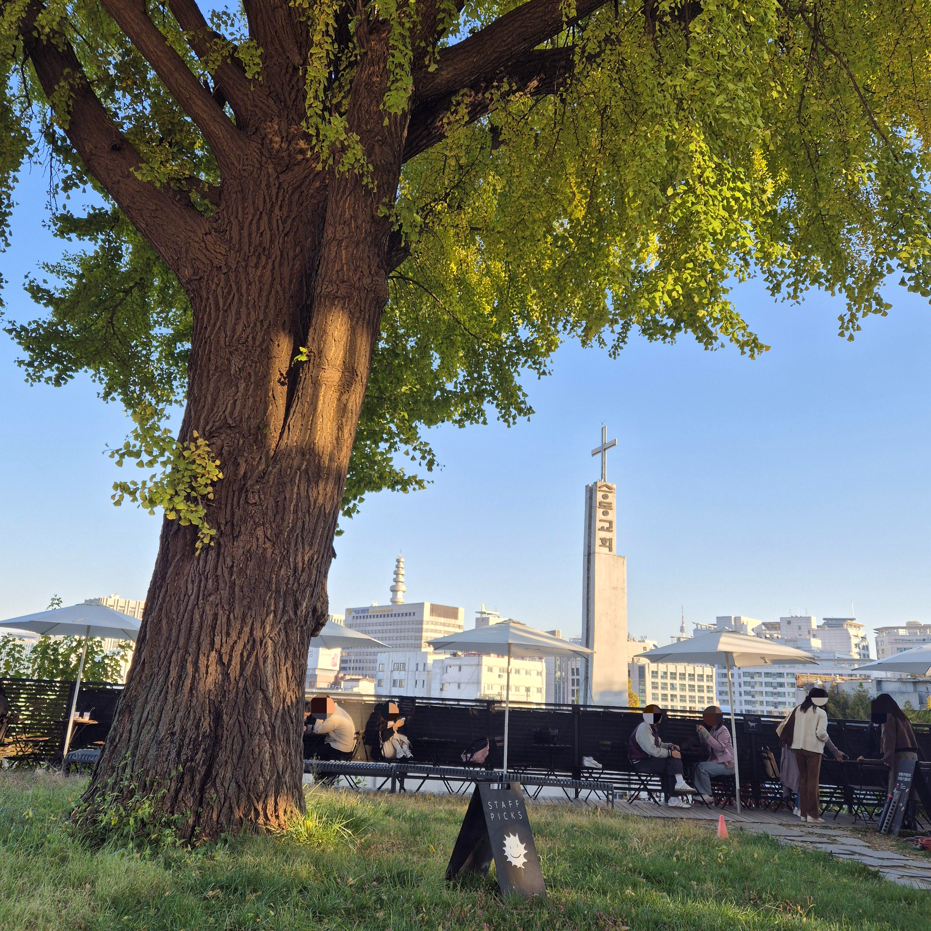 마치 나무를 둘러싸고 작은 피크닉장에 온듯한 기분을 주었다. 경복궁 근처라 그런지 외국인 분들도 많았고, 평일 오후 4시경이었음에도, 사람이 북적북적했다.