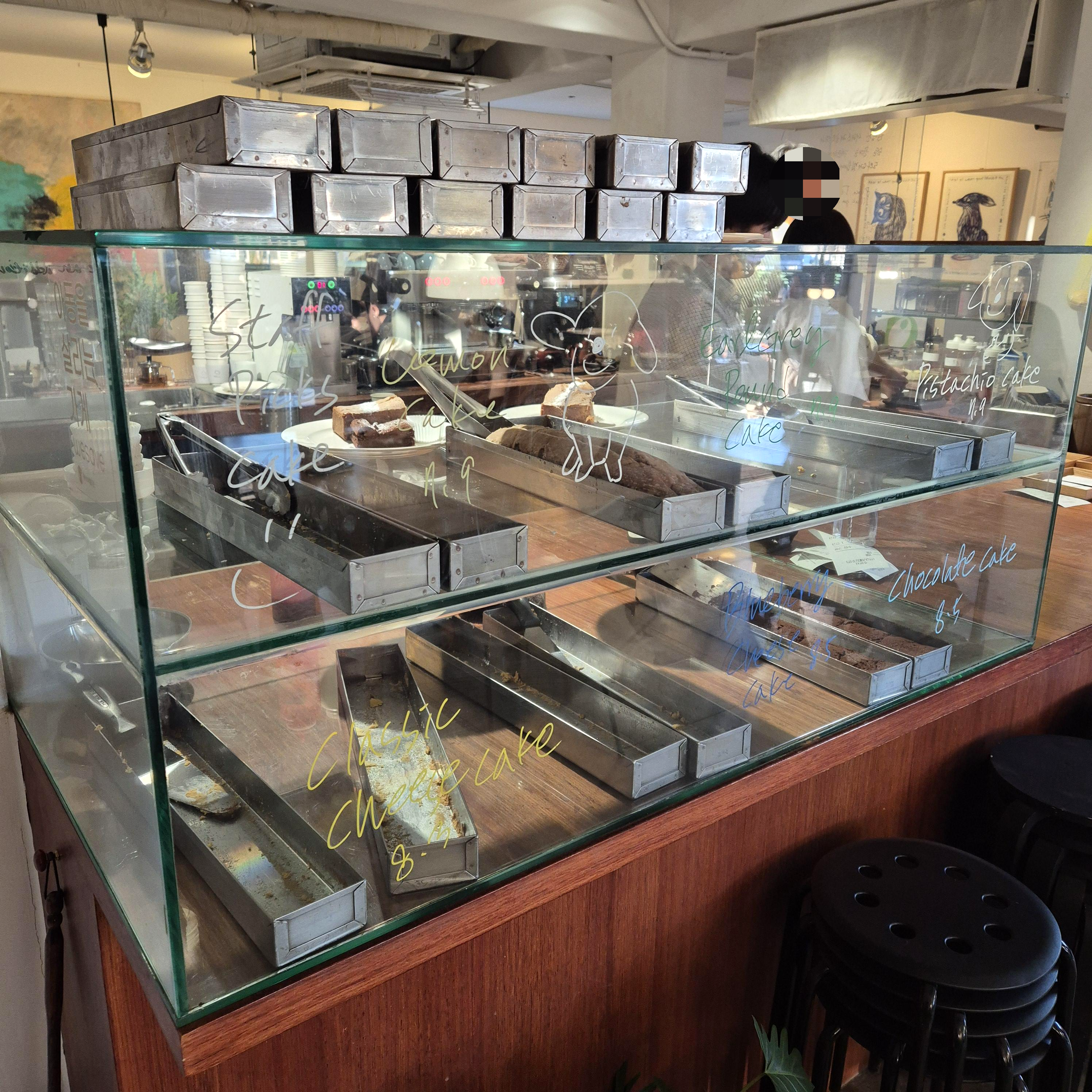 음료와 디저트를 가지러 가는 도중 가게 안에 자리가 있어서 완전 럭키비키하게도 안으로 자리를 옮겼다.