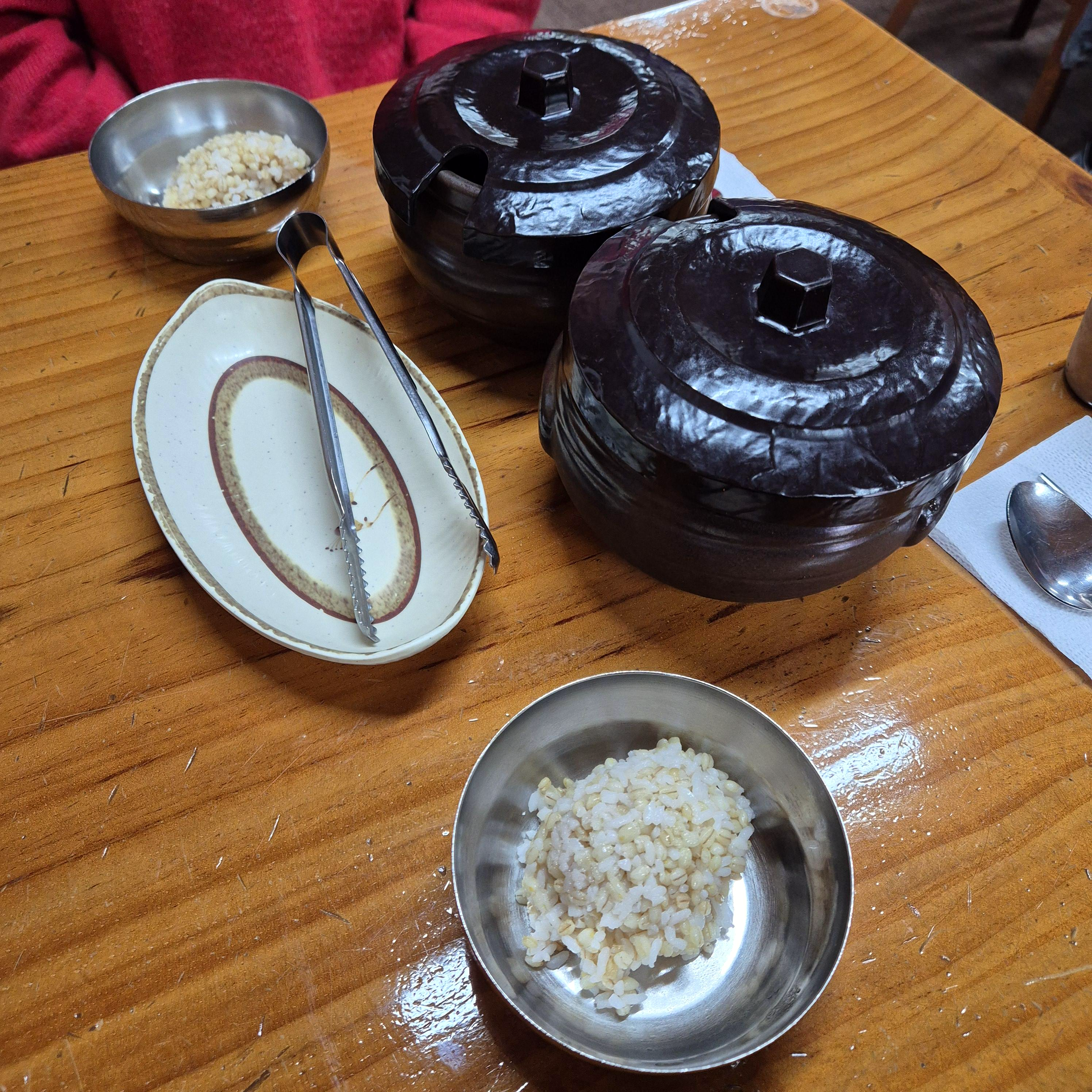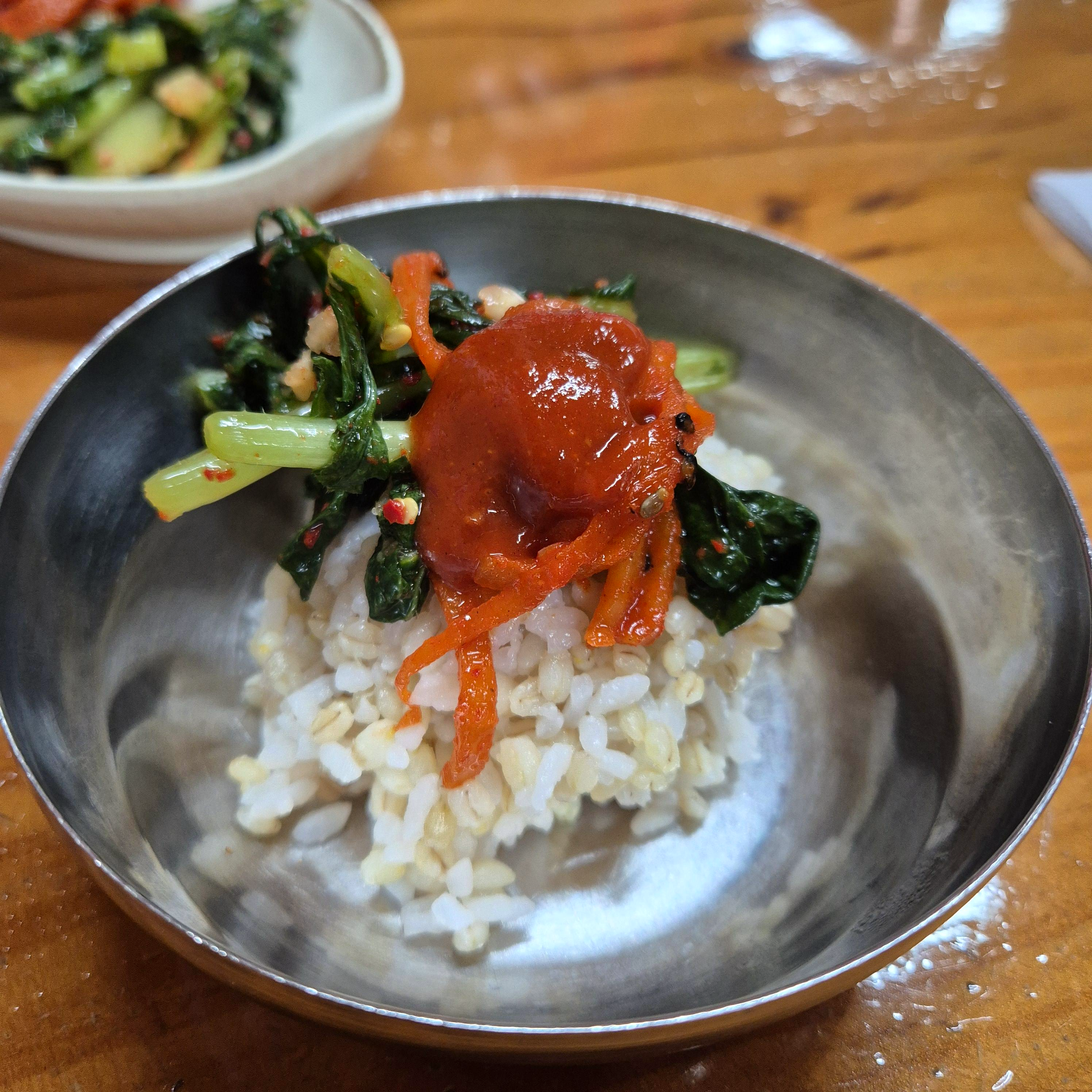 옹심이칼국수가 나오기 전 소량의 보리밥을 주신다. 보통 쌈밥집이나 오래된 칼국수 집을 가면 가끔 이렇게 보리밥을 주시기도 하는데, 여기도 그랬다. 여긴 비록 참기름은 없었지만, 무생채, 열무, 고추장을 넣어 슥슥 비벼먹으니 아주 맛났다.
