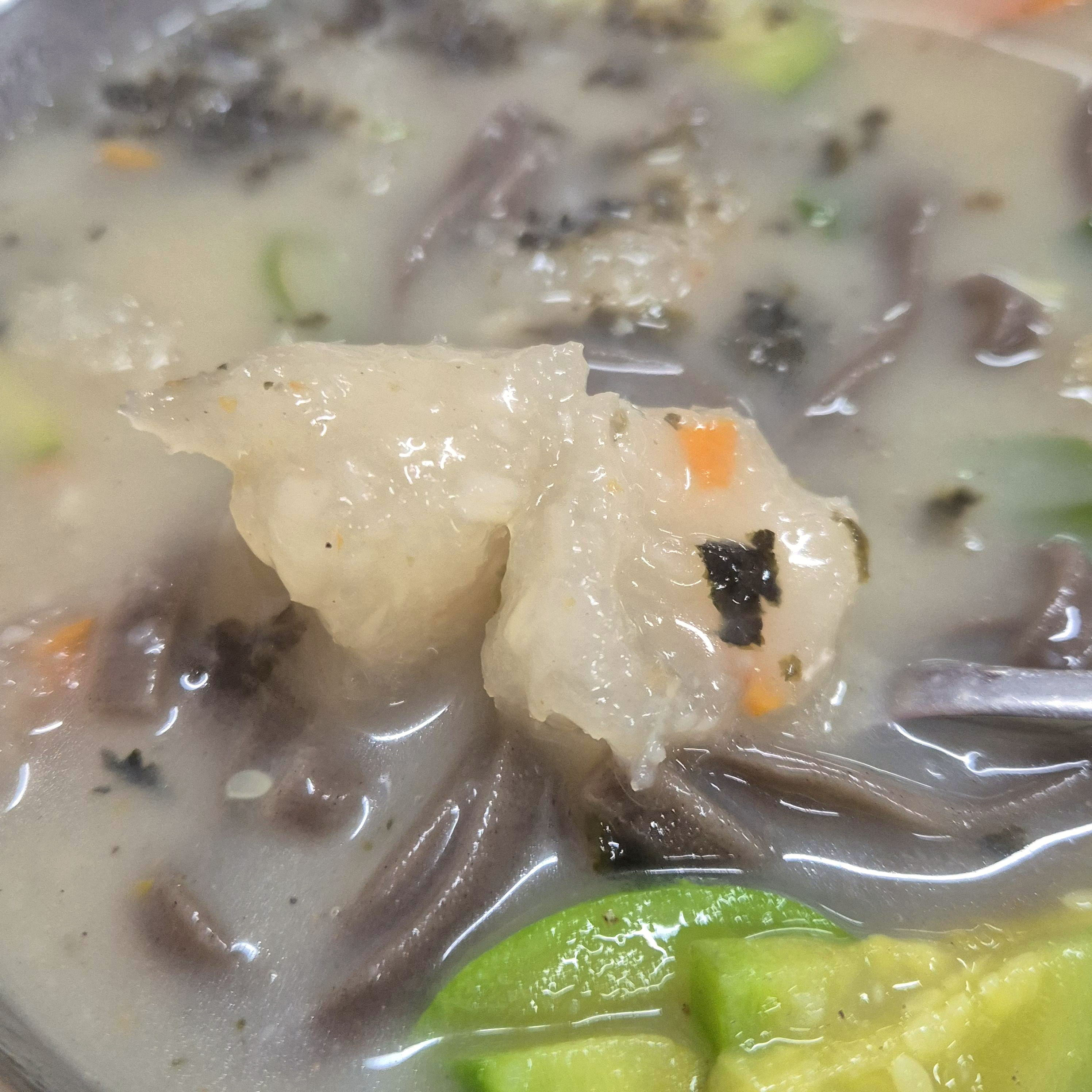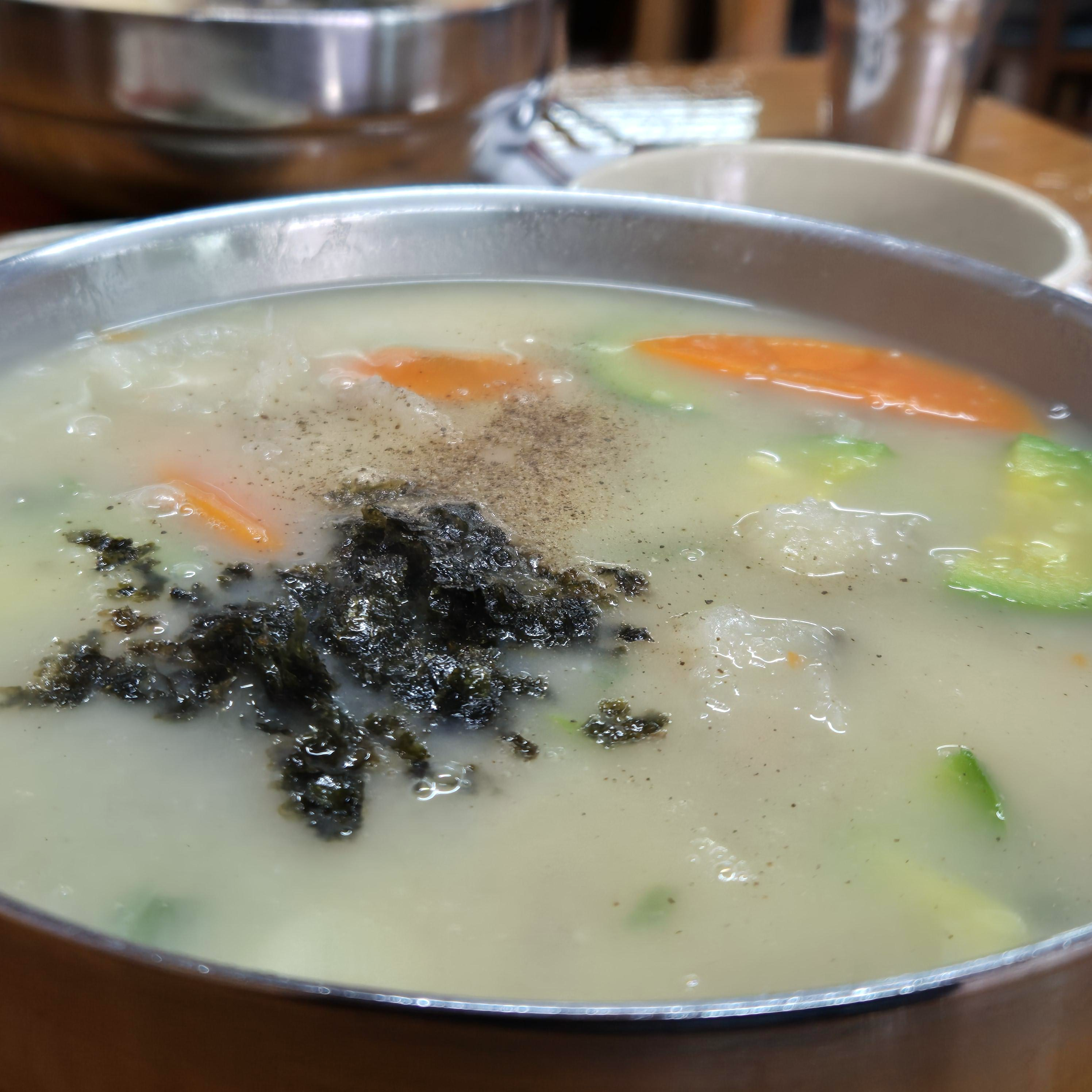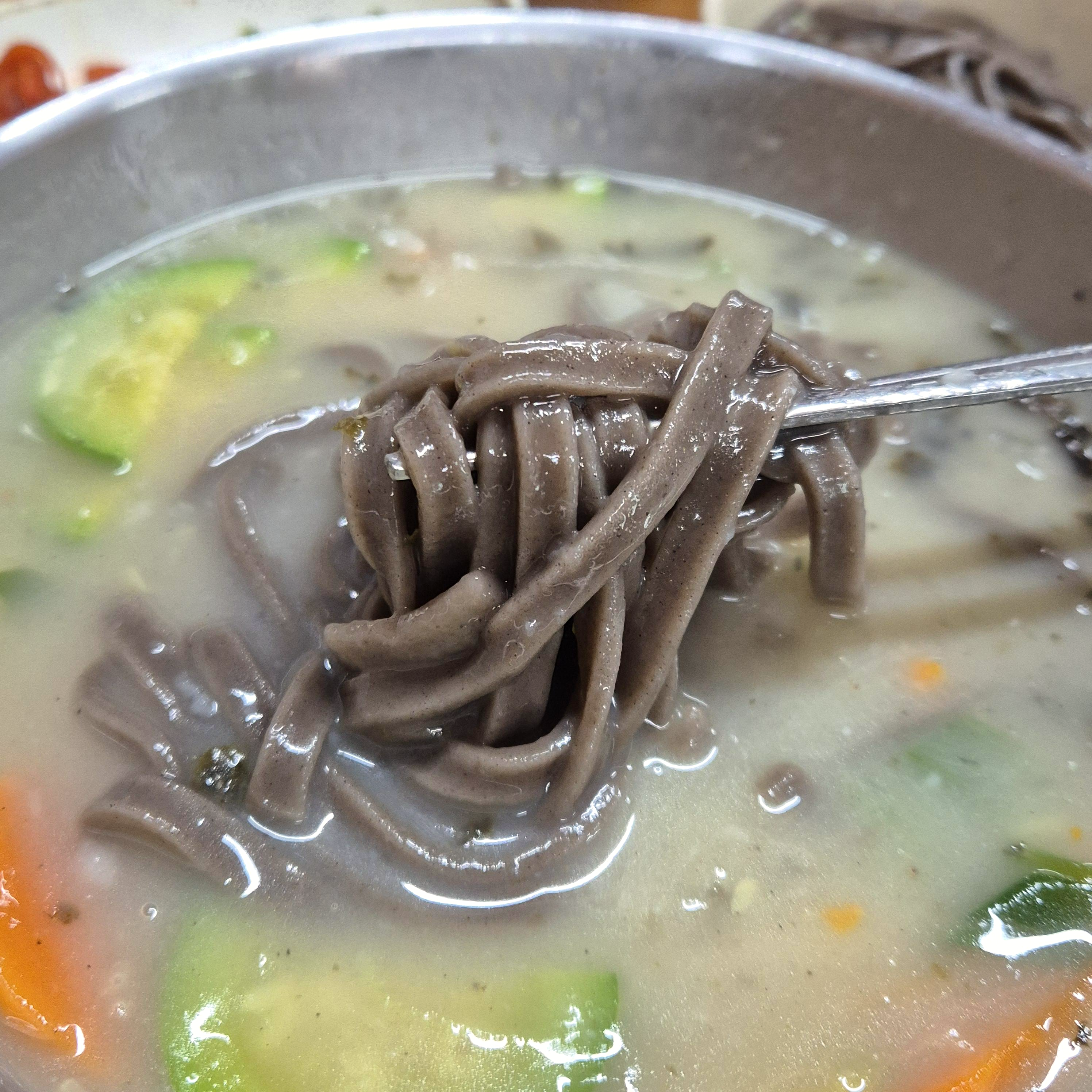 얼마 지나지 않아 옹심이 칼국수가 나왔다. 깊은 육수에 애호박, 당근 등 기본에 충실한 국물이라는 생각이 들었다. 김가루도 솔솔 뿌려져 있으니 향긋한 김향기가 은은하게 났다.