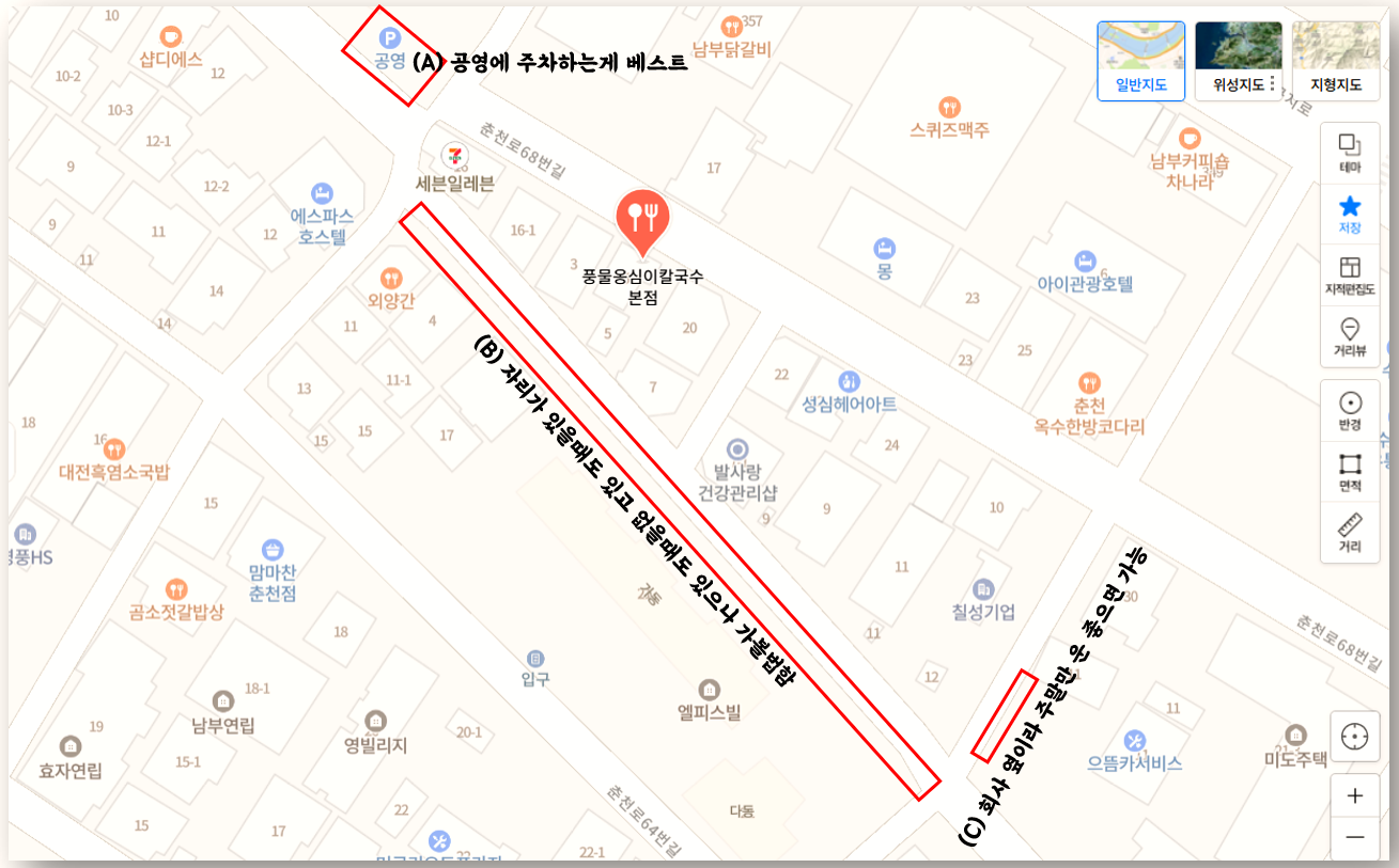 춘천풍물옹심이 주차 할만한 곳