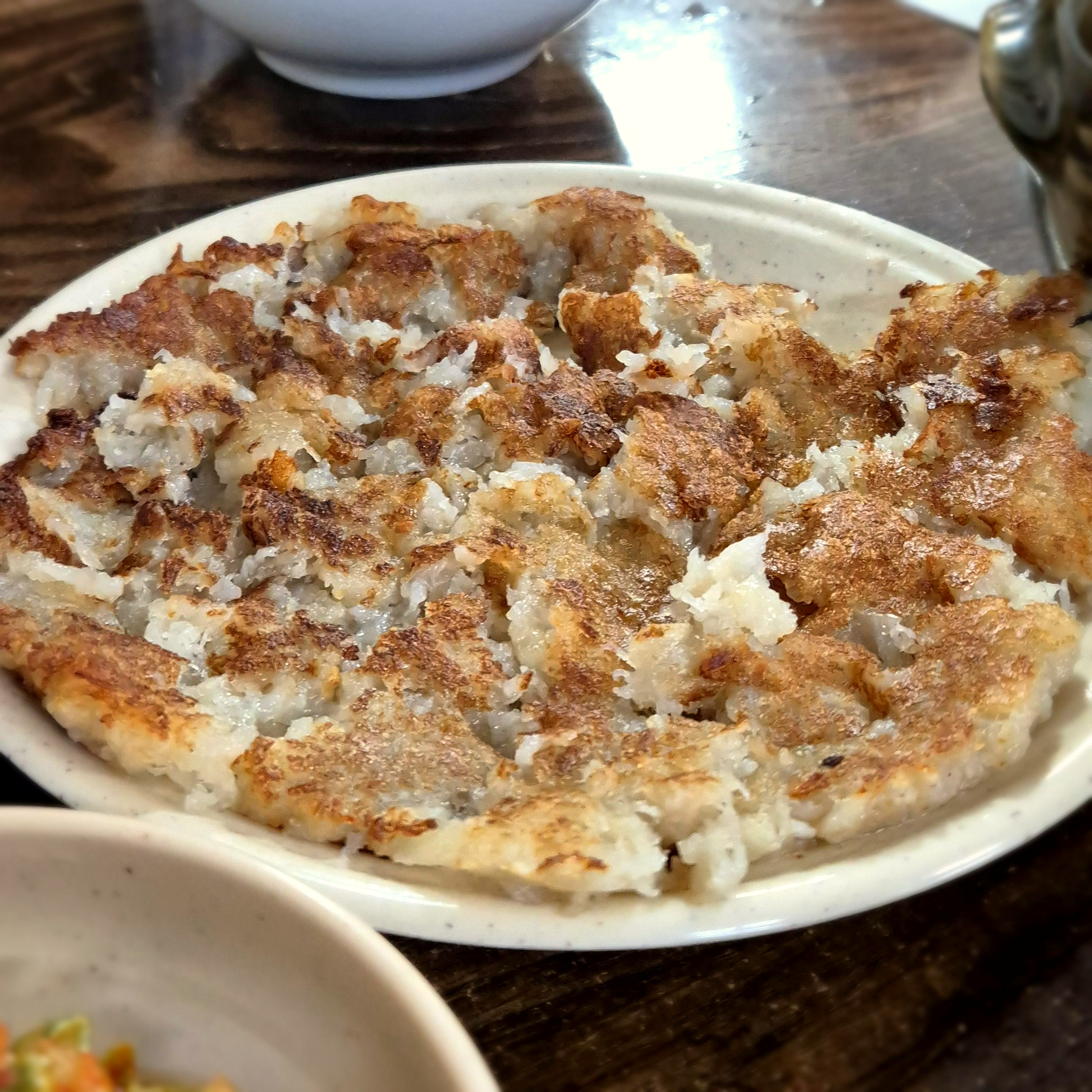 엄청은 아니지만 그래도 도톰한 감자전! 겉은 살짝 바삭하고 속은 부드러우면서 식감까지 먹을 맛이 났다. 이제 와서 보니 감자전의 찢김도 맛있어 보이게 잘 찢은 것 같다.