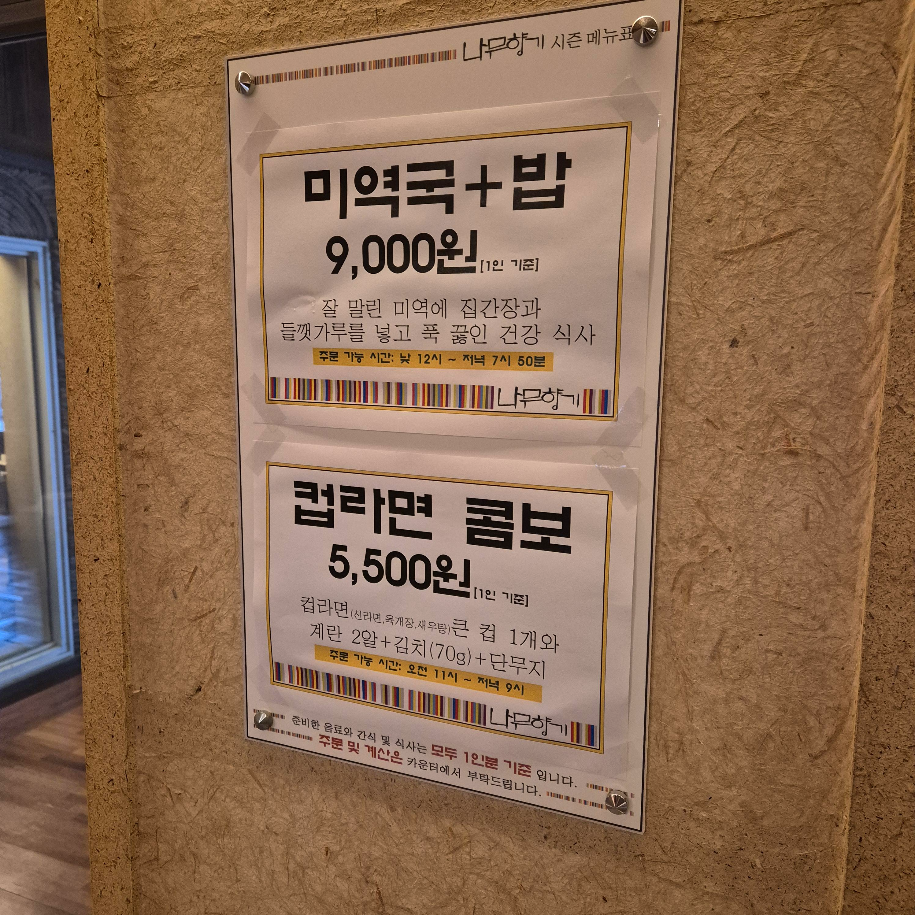 하지만 연립주택의 대문은 아니었던 나무향기의 입구이다. 처음 들어가면 요금표가 붙어있는데, 예약을 안 하고 가도 되는지는 잘 모르겠다.