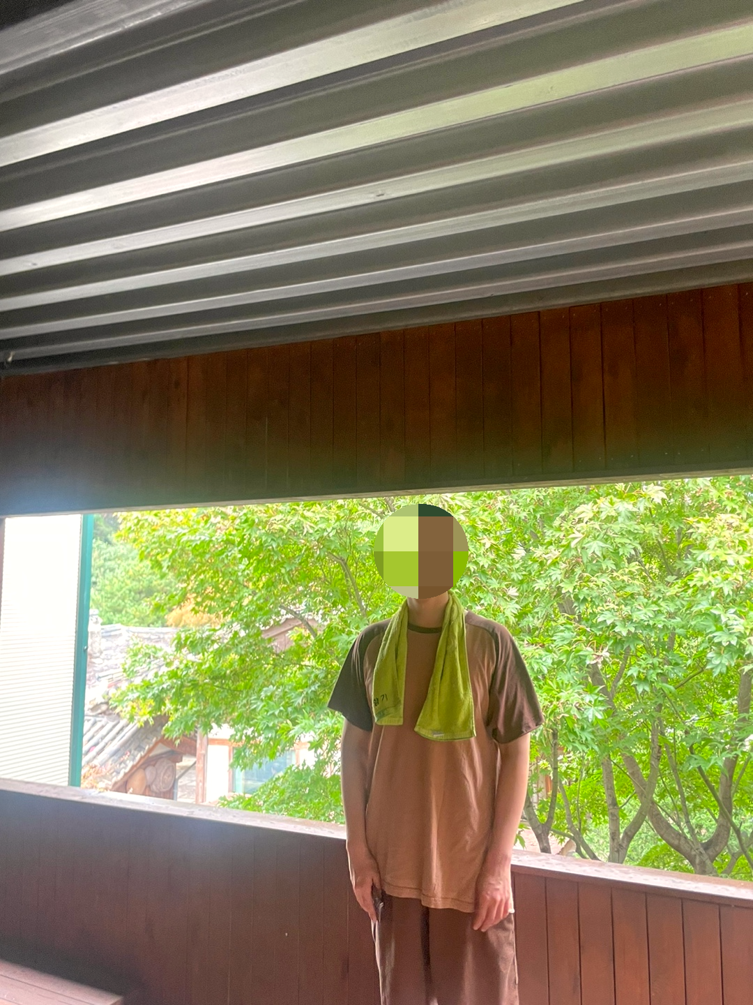 일단 오전에 불을 때기 때문에, 정말 뜨겁고, 땀이 미친 듯이 난다. 더운 정도가 아니기 때문에 뜨거운 것을 견디기 힘들어하시는 분에겐 오후에 하시길 추천드린다. 필자는 11시 반 예약이었기 때문에 정말 가장 뜨거울 때 들어갔는데 (직원분이 안전을 위해 대기하고 계신다.) 12시쯤 1차 입성했다. 한증막에 전혀 노출이 되지 않도록 온몸을 감싸고 들어갔다. 수건을 3겹 두르고 덮고 했다. (※사진참조)