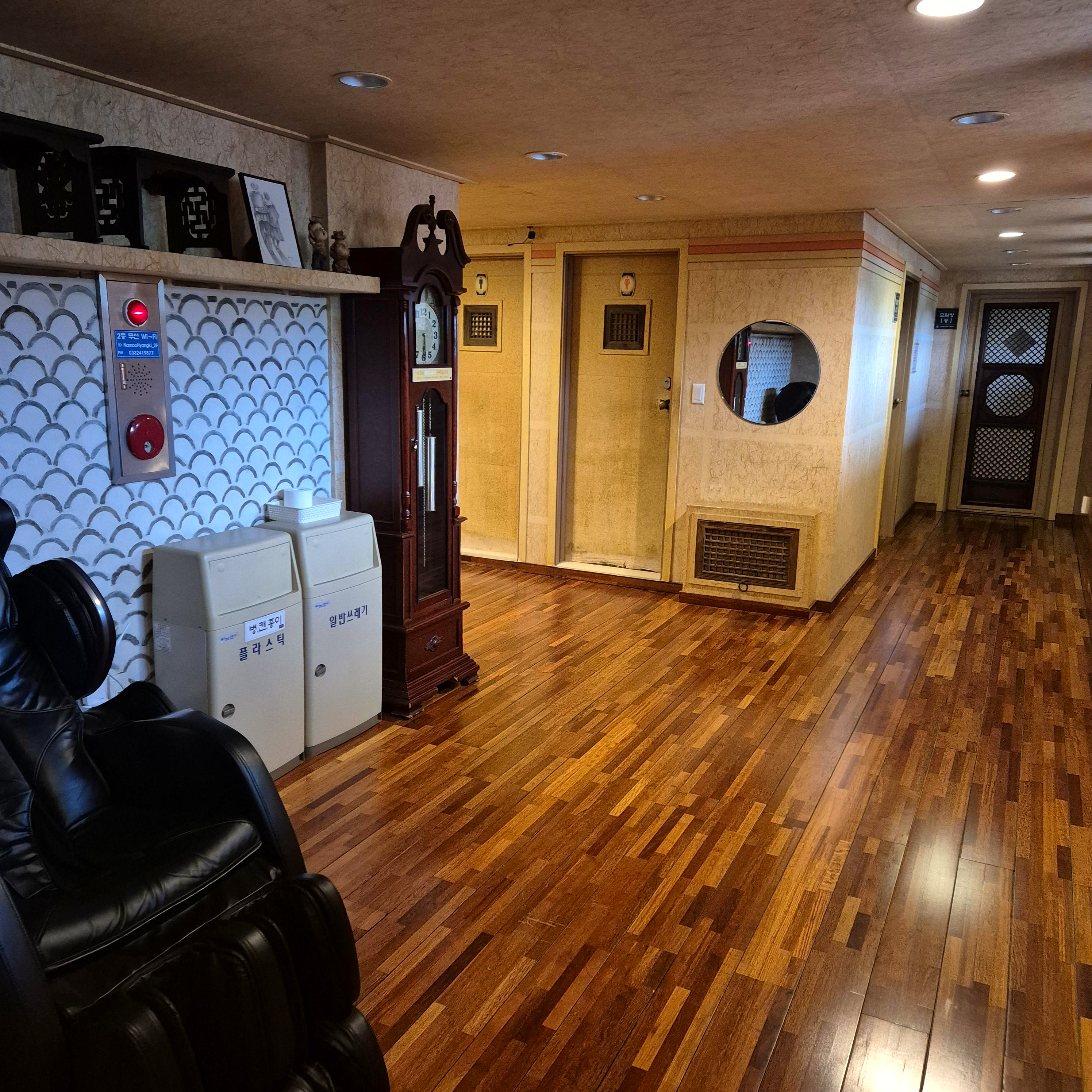 조금 많이 큰 할아버지 단독주택 같은 느낌이 나는 나무향기 한증막이다. 2층은 평범하지만 큰 주택의 2층 같은 느낌이었다.