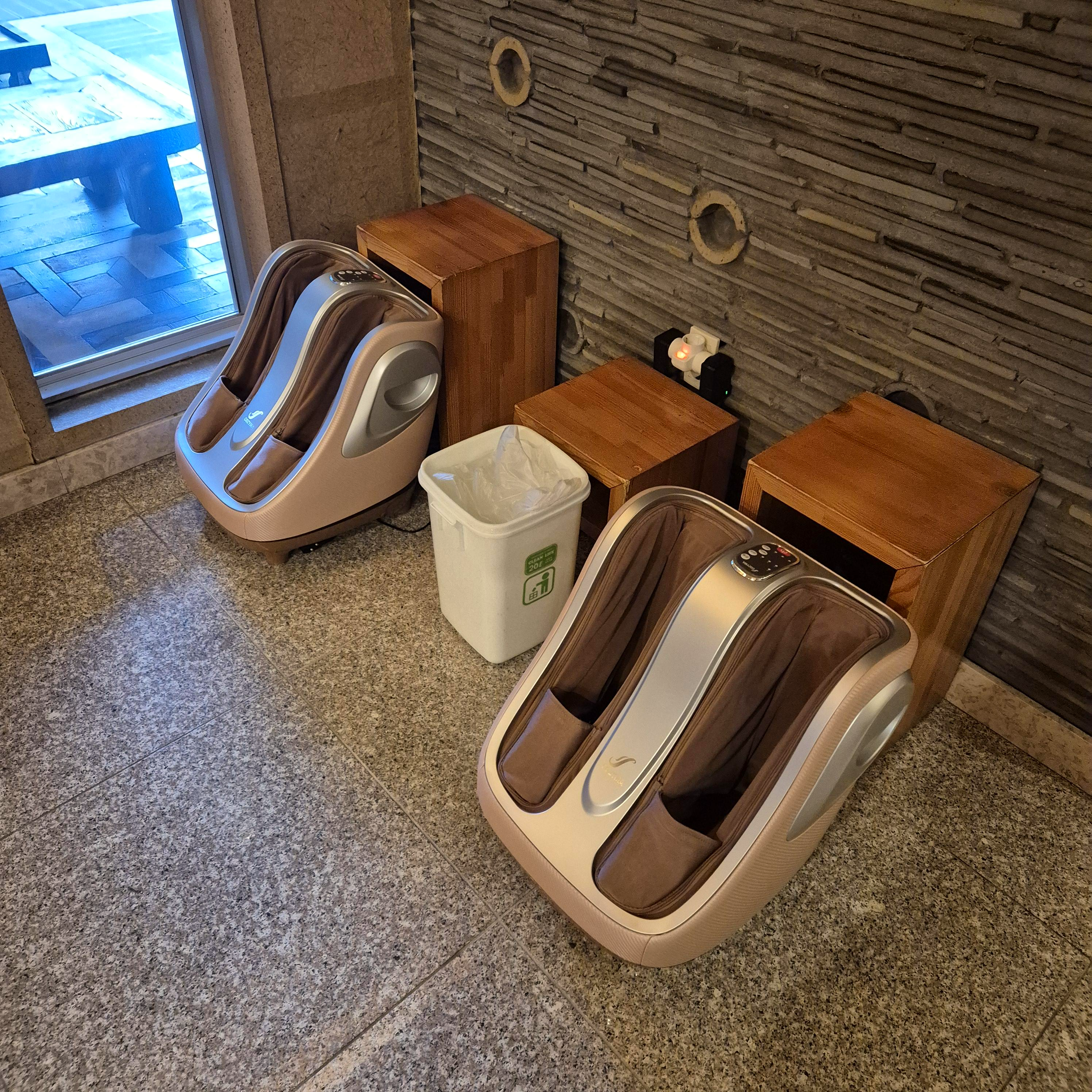 족욕하고 난 뒤 코스인지 모르겠으나 모퉁이 한편에 준비되어 있는 발과 종아리 마사지기까지.