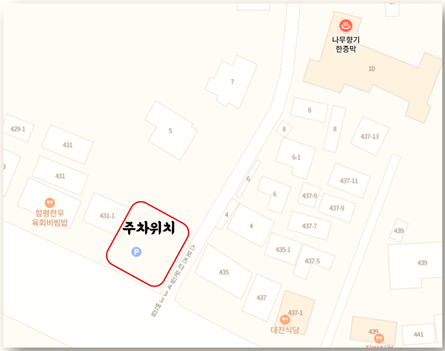 서울에서 춘천을 달려 제일 먼저 도착한 이곳이다. 처음에는 춘천까지 와서 한증막 이라니 싶었다. 하지만 막상 다 경험하고 나서는 그 마음이 쏙 들어갔다. 차 타고 가실 분들을 위해 주차장 위치도 지도에 표시해 보았다.
