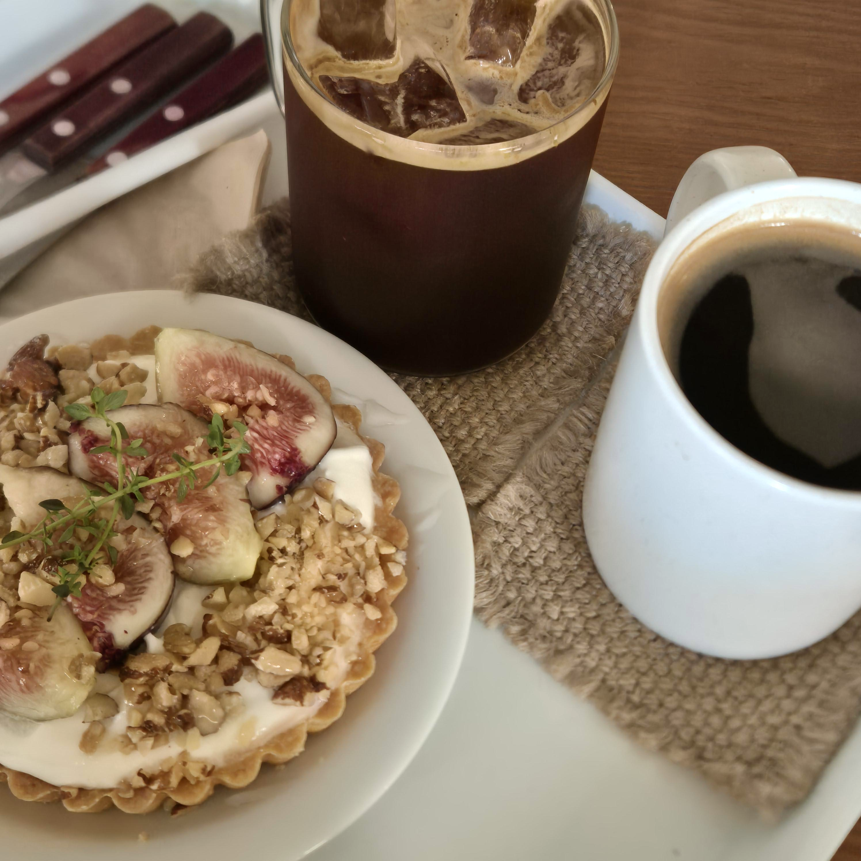 우리는 아이스아메리카노, 따뜻한 아메리카노 그리고 정식메뉴판에는 없었던 무화과파이 (8,500냥)를 주문했다.