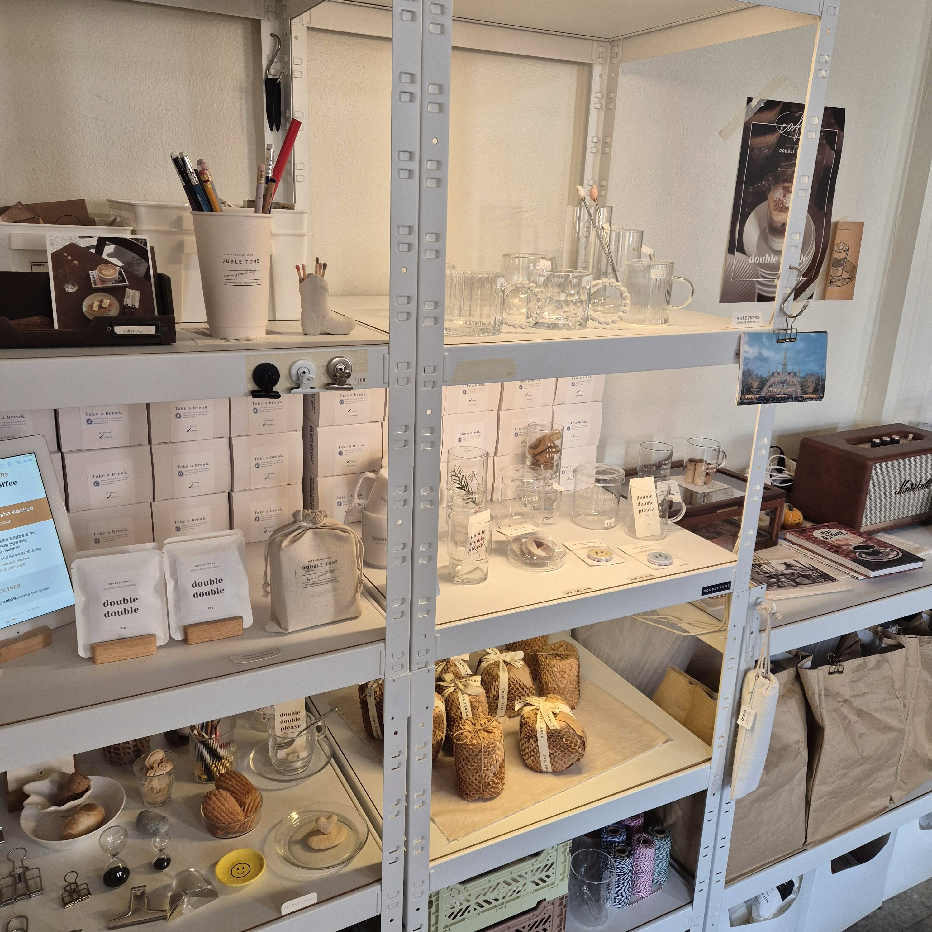 공간의 여백을 활용하는 듯하면서도 아기자기한 소품과 굿즈들이 눈에 보였던 더블톤이었다.
