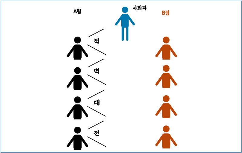 - 두 팀을 동시에 진행하면, 시선이 분산되고 통제가 어려울 수 있으므로, 한 팀씩 진행하여도 좋다.