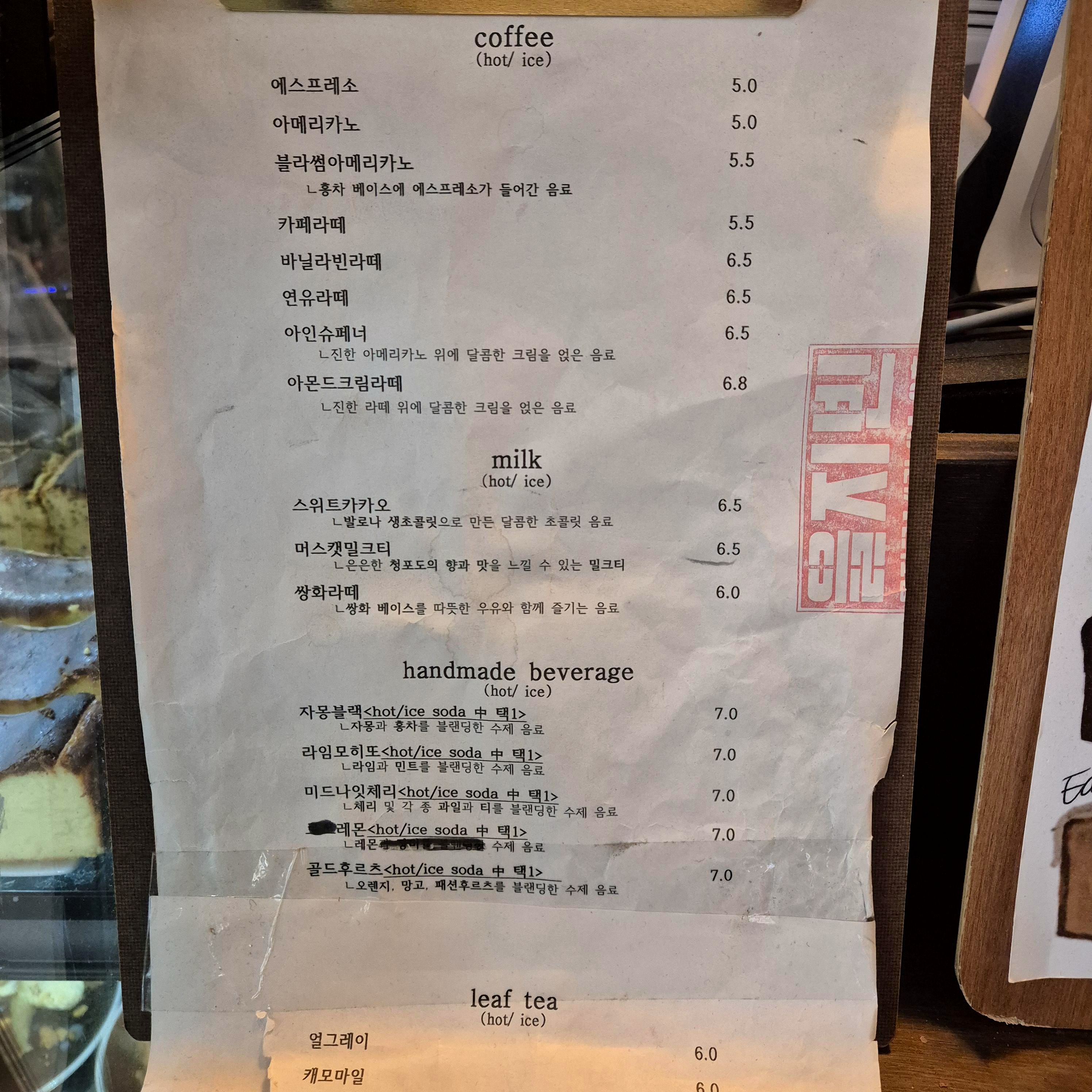 맛깔스러운 디져트가 특히나 눈에 띄는 '을지빈'이었다. 필자의 음료는 아이스아메리카노로 고정되어있지만, 뭔가 새로운 걸 시도해보고 싶게 만드는 을지빈의 메뉴들이었다. 함께 간 대리님들은 블라썸아메리카노 같은 새로운 음료를 주문하였다. 주문 후 돌아가서 담소를 나누던 중 정말 오래됐을 것만 같은 소품을 발견했다.