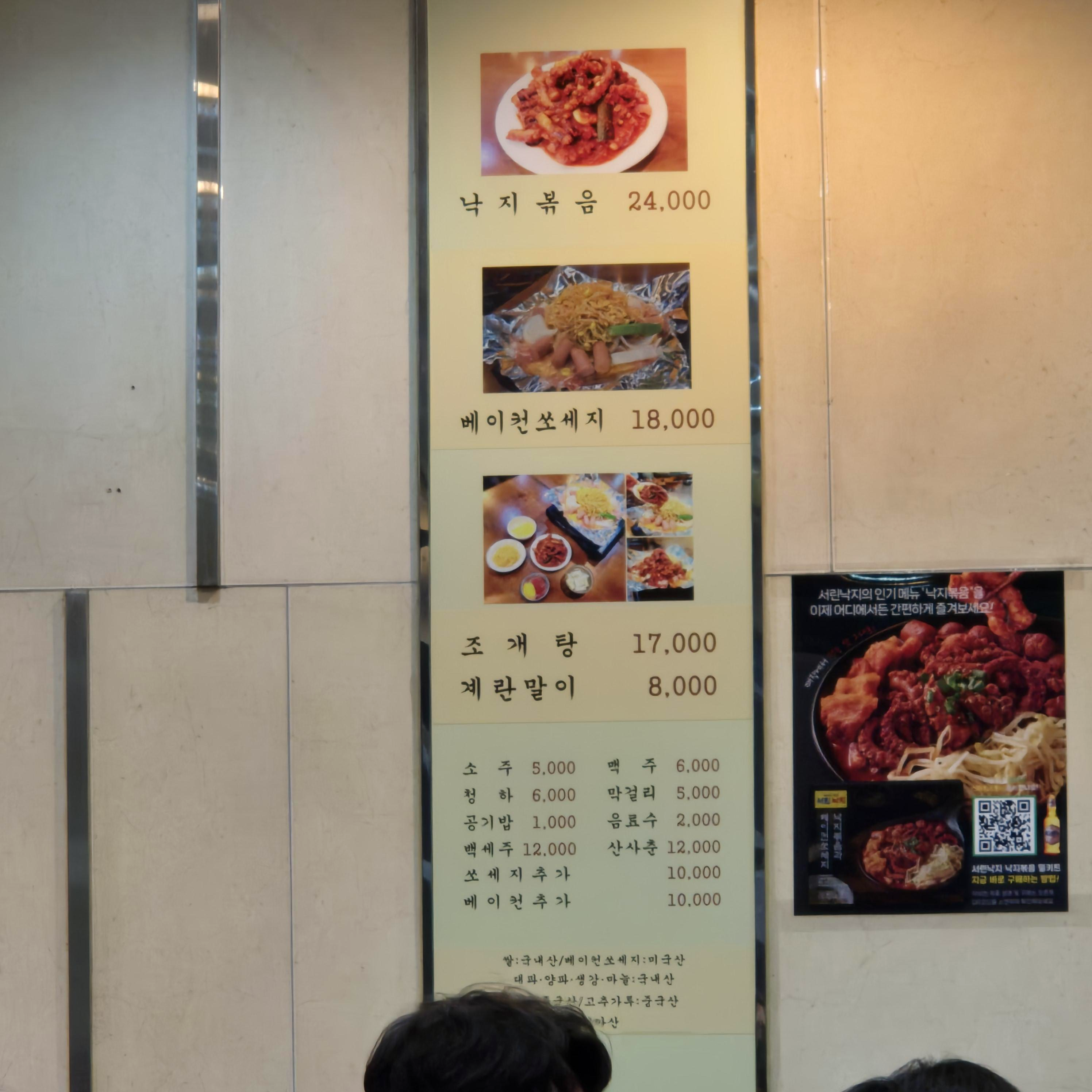 "두둥!" 무너가 맛집의 향기. 필자가 생각하는 은근 맛집 조건 중 하나는 빨간 글씨를 썼냐 안 썼냐 인데, 서린낙지 또한 빨간 글씨가 포함되어 있었다.
