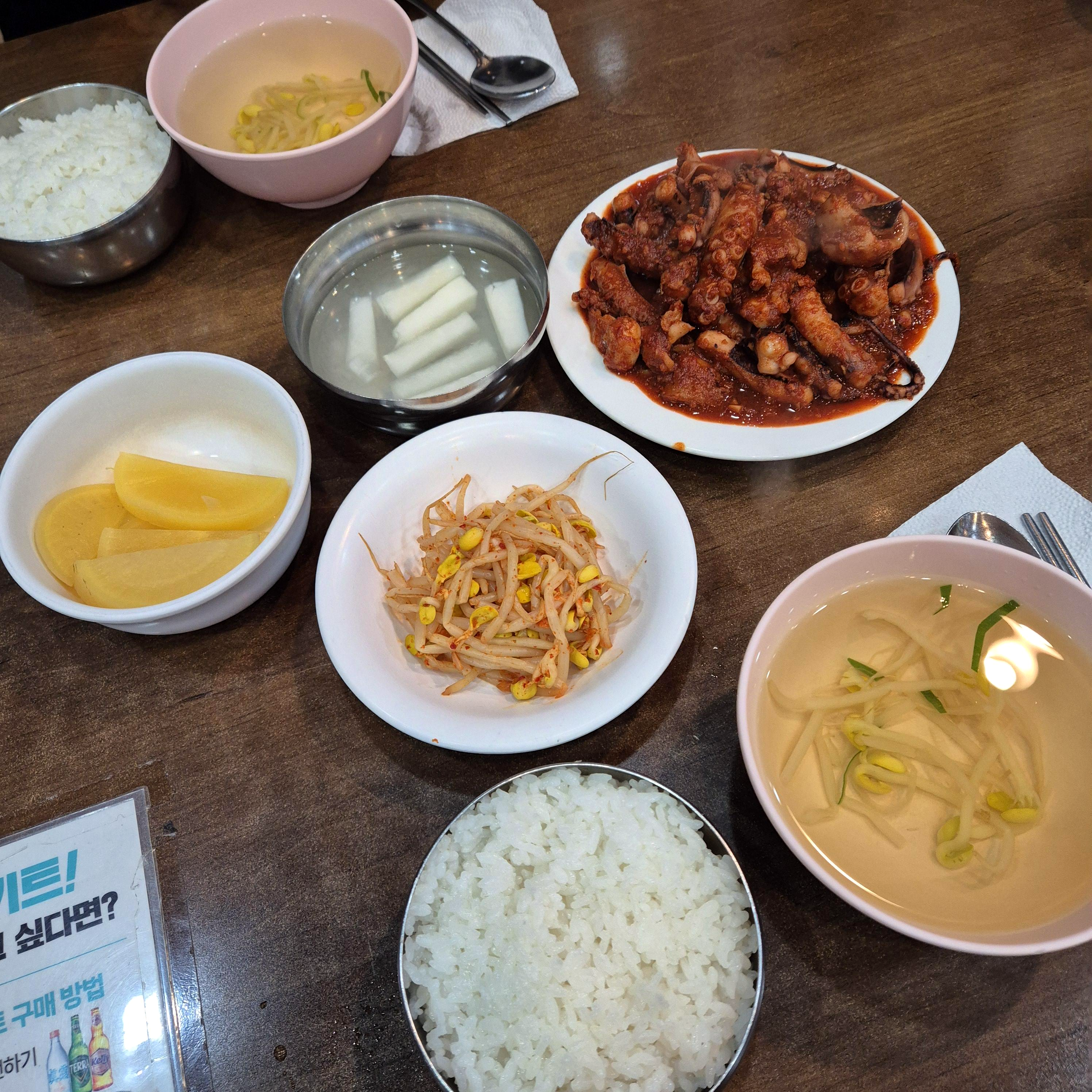 일단 그렇게 차려진 우리의 낙지볶음 한상이다.