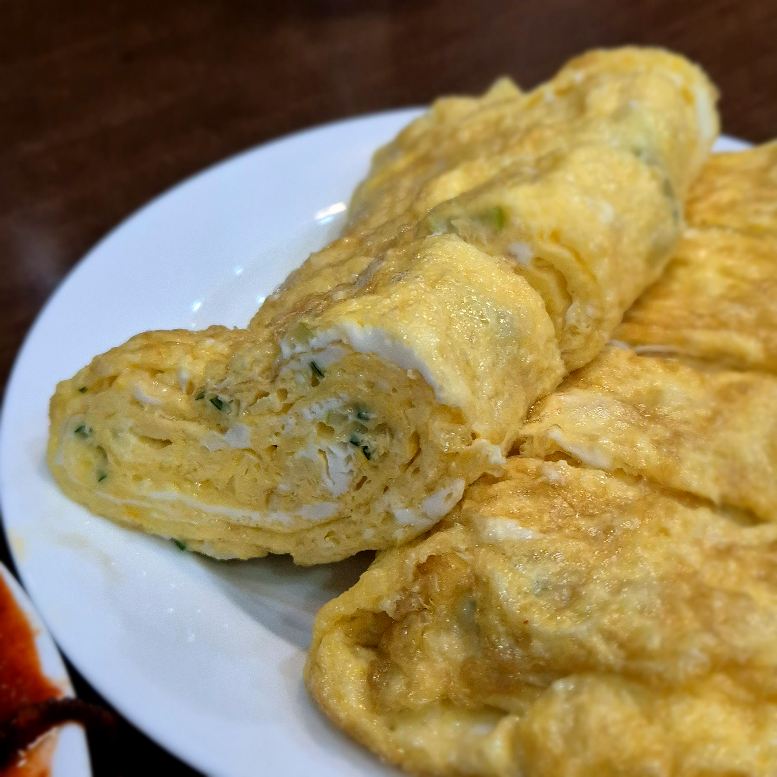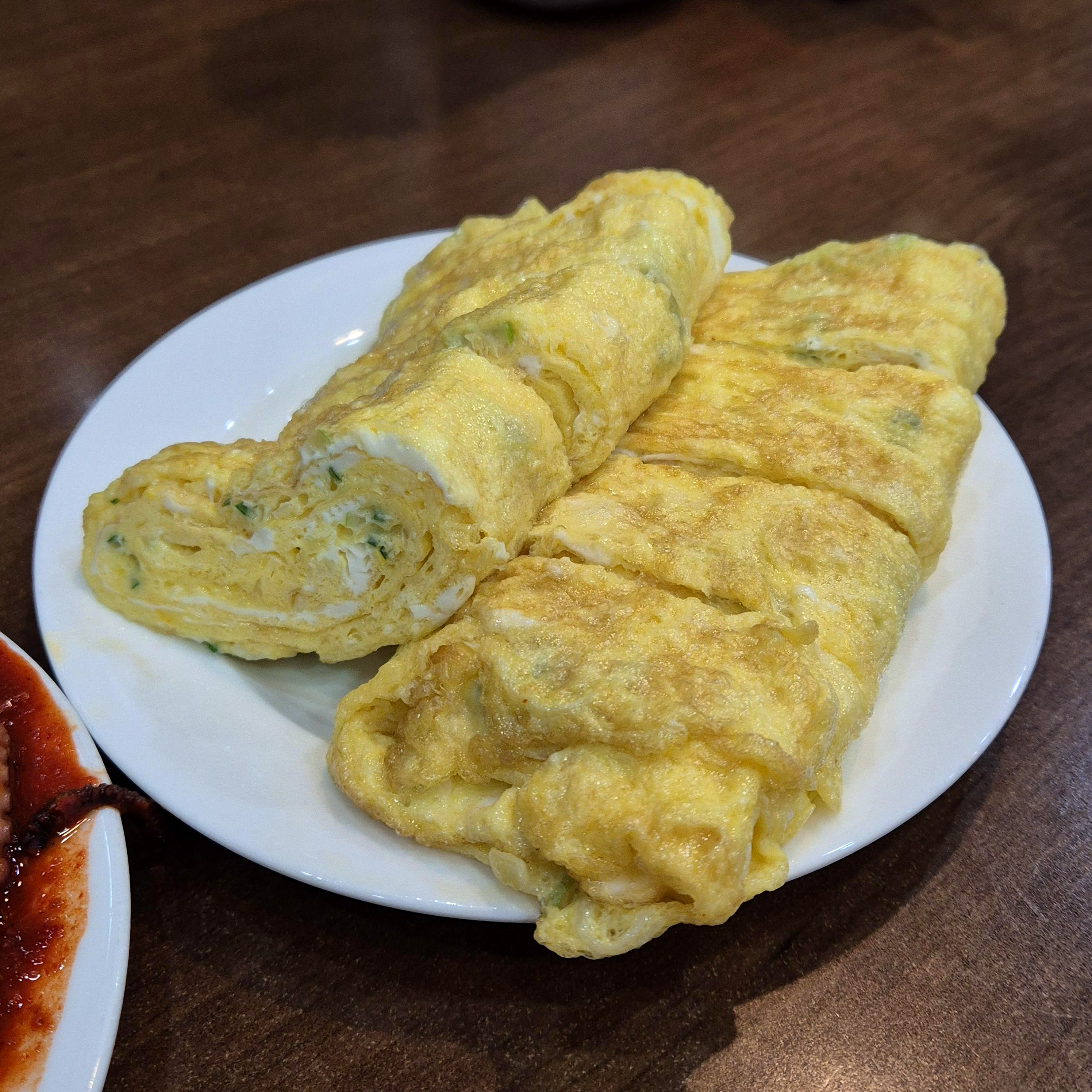 소스는 살짝 묘했다. 음... 낙지와 그 조화를 이루는 느낌보다는 솔직히 따로 노는 느낌을 받았는데, 소스가 깊지는 않은 것 같은데 묘한.. 맛이 있긴 하다. 싱거운 거 같고, 완전히 어우러져 있는 것 같지는 않은데, 젓가락을 계속 출발시키는 맛이랄까. 맛있었다. 우리는 베이컨은 못 시켜도 계란말이 한번 먹어보자는 마음으로 시켜보았다.