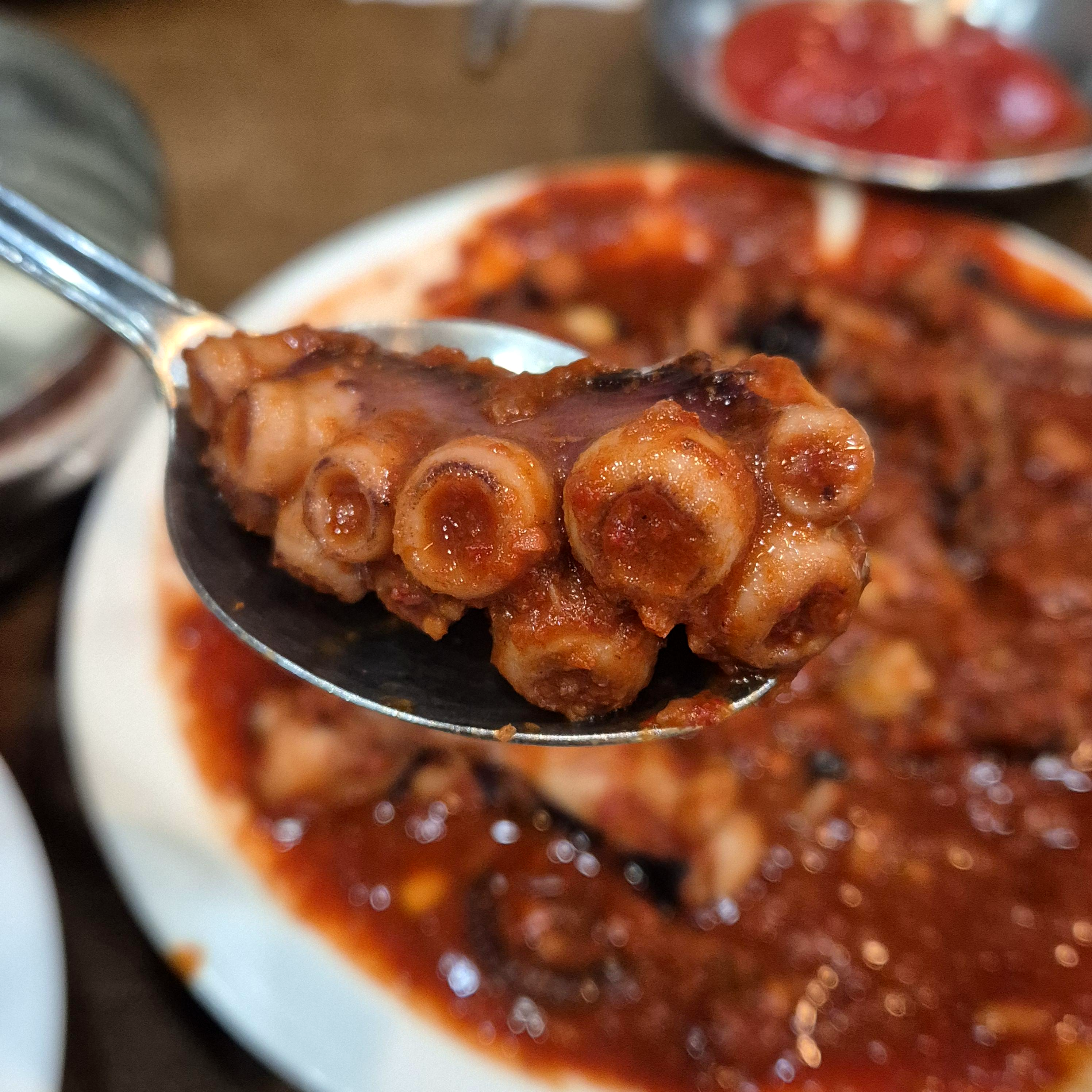 하지만 인정할 건 인정하자면, 낙지 크기 말이 안 된다. 어디 브라질 대왕낙지를 잘라온 것처럼 아주 통통하다. 마치 술 먹은 다음날 부은 내 얼굴을 보는듯했다. 나른 이런저런 낙지집을 가보았으나 이 정도 낙지집은 별로 없긴 하다.