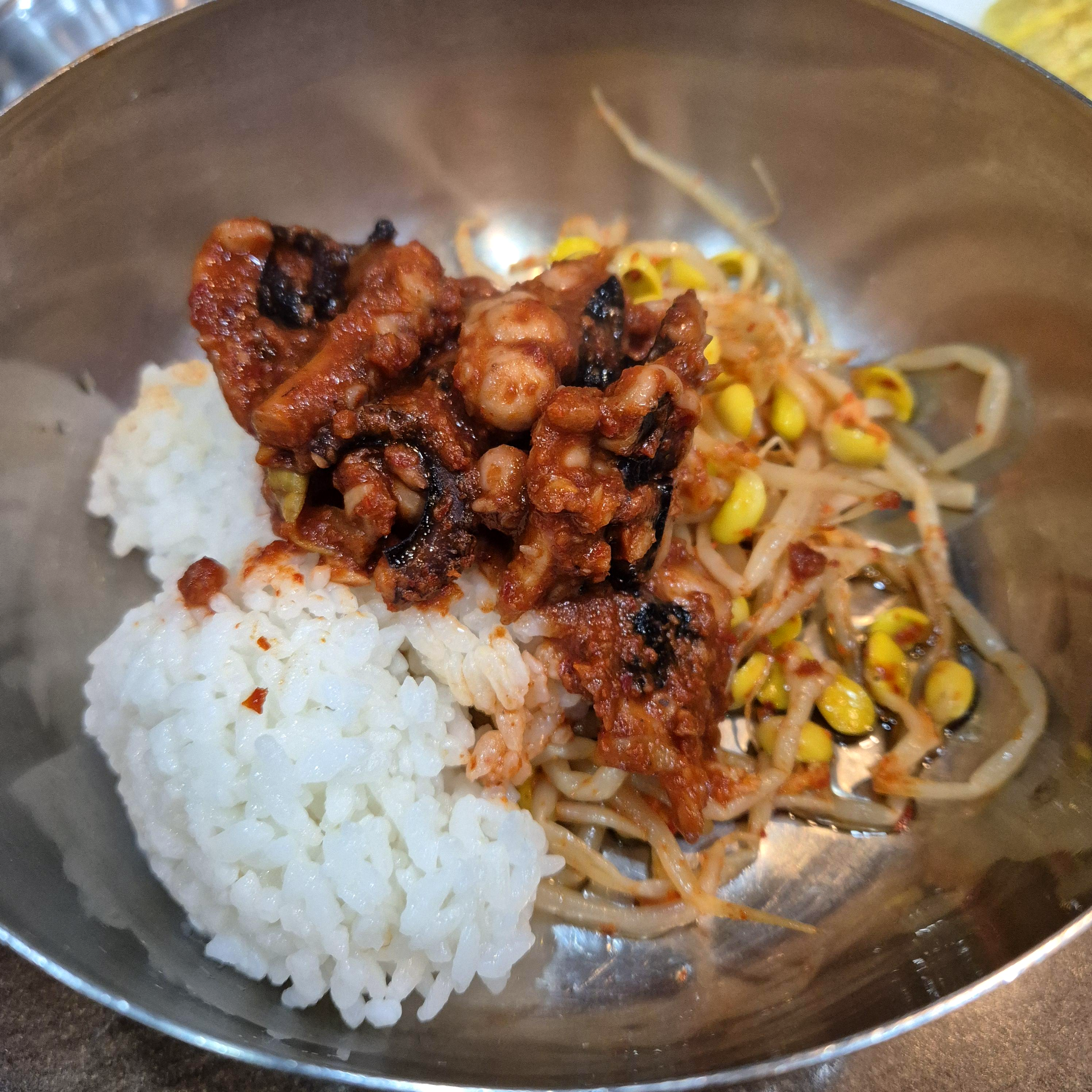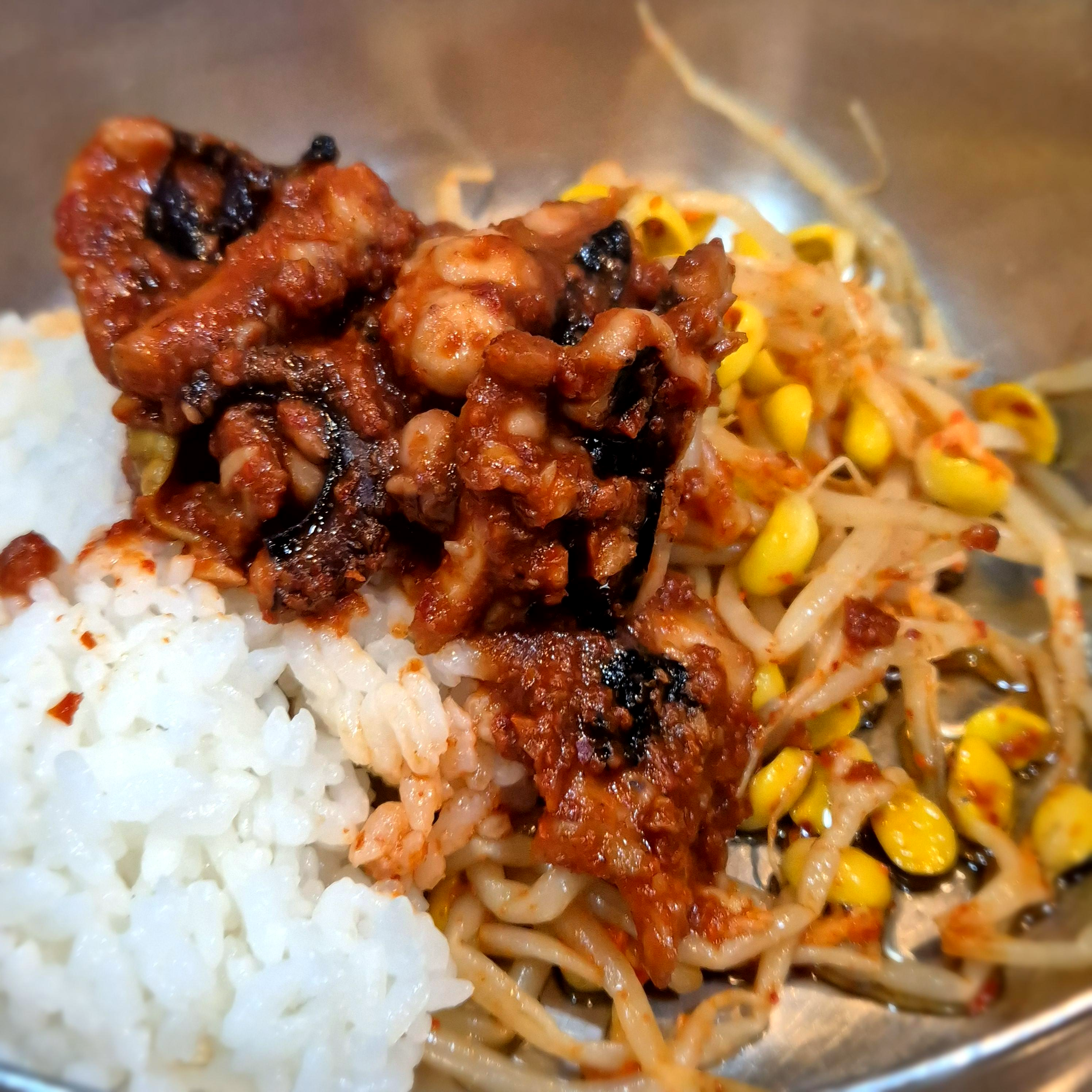 베이컨소시지가 조금 어쩔 수 없이 시켜야만 할 것 같은 느낌은 있으나, 3명 이상이 왔을 땐 시킬 법 하겠다. 솔직히 낙지의 퀄리티는 인정, 양념맛은 살짝 밍밍하며, 낙지와 잘 어우러지지 않는 거 같아서 쏘쏘였다.
