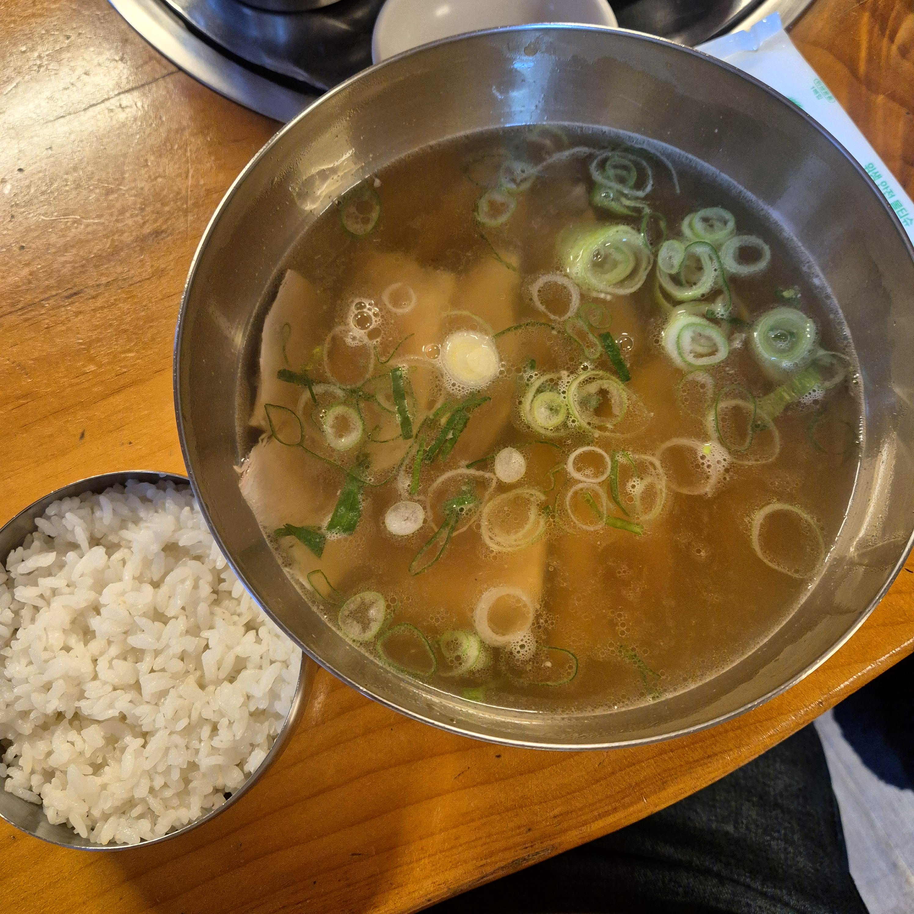 소곰탕과는 다르게 아무래도 돼지국밥(?) 같은 돼지고기향이 조금 더 진했고, 국물에 고기맛이 조금 더 배어있는 그럼 살짝 찐하고 깊은 맛이었다.
