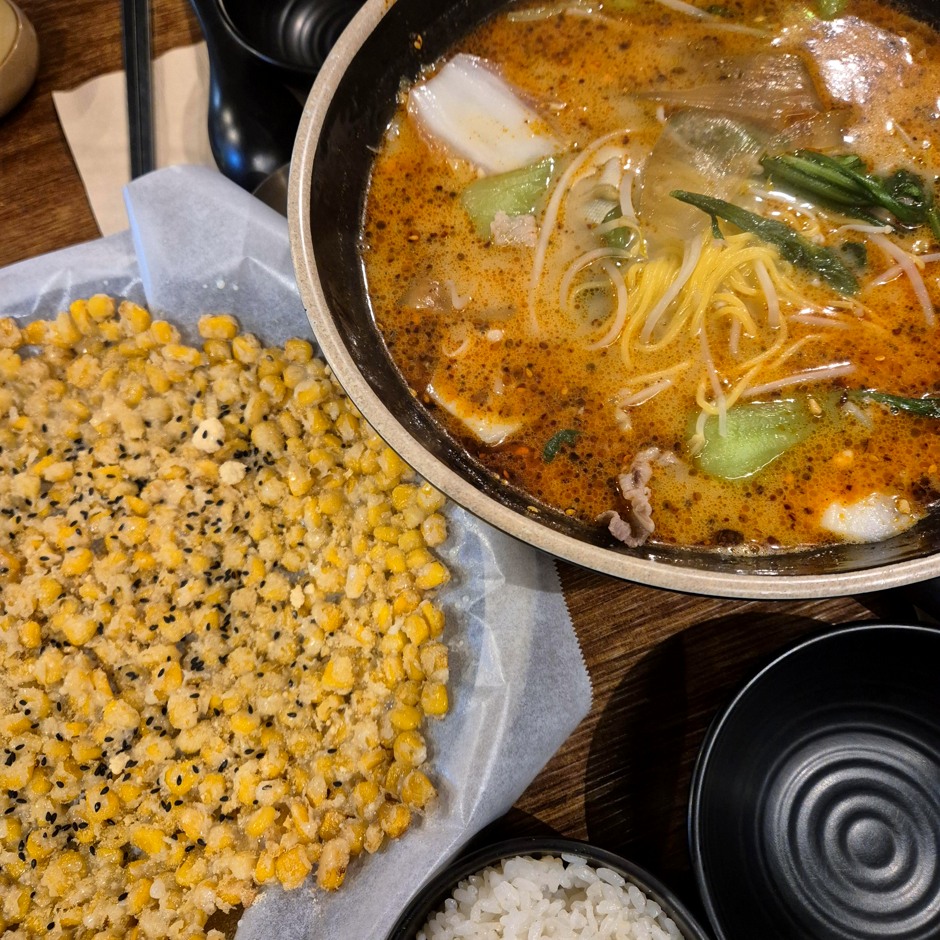 뾱뾱이 터지는 식감이 나는 튀겨진 옥수수알이 일단 맛있었고, 자작하게 녹아져 있는 연유와 그 위로 뿌려진 설탕이 달달함을 폭발시켜 버렸다.