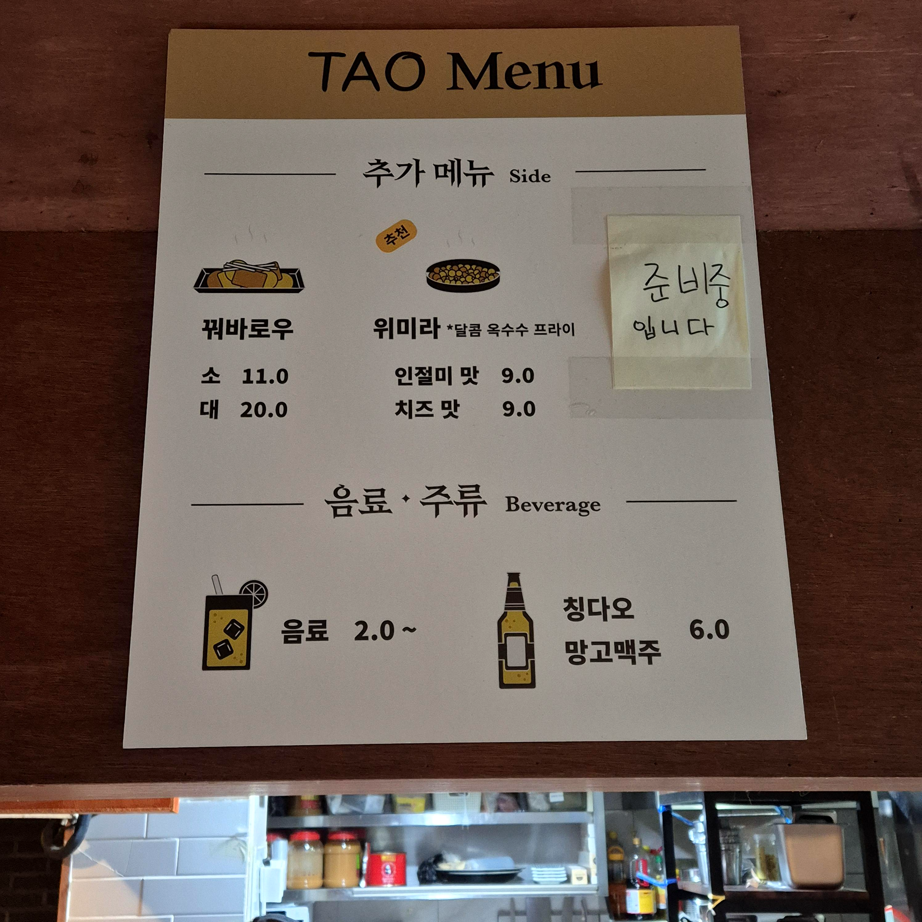 TAO 메뉴들