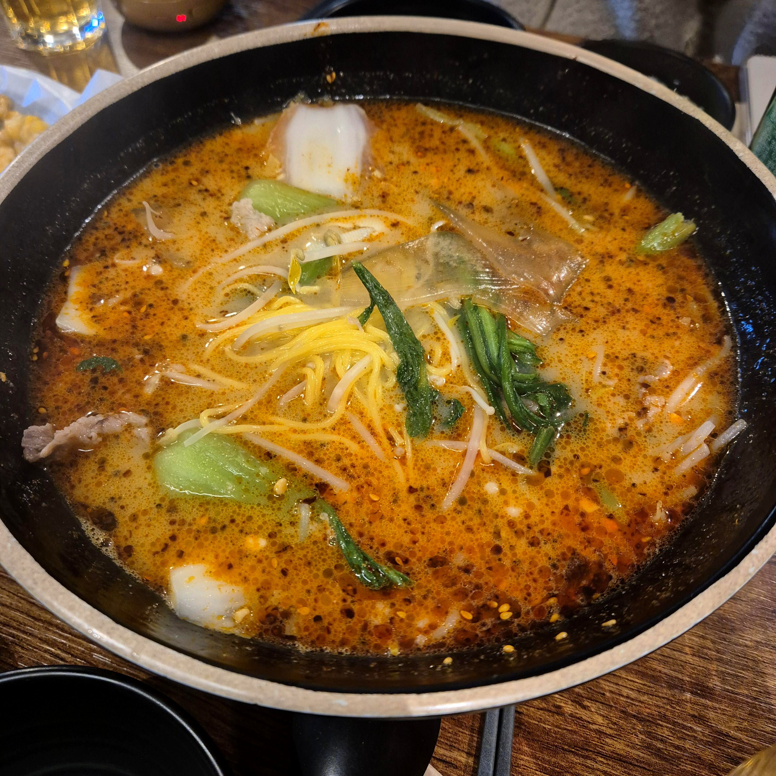 재료들만 담았을 뿐인데, 벌써 맛있었다. 우리는 마라탕에 양고기를 넣어달라고 말씀드렸고, 위미라도 하나 시켰다. 근데, 이렇게해서 총 23,000원 !!! 나중에 양도 사진을 찍었지만, 혜자였다. 미리 스포 하자면, 너무 맛있어서... 꿔바로우도 먹어보고 싶어서 나중에 꿔바로우도 시켰다 ^^