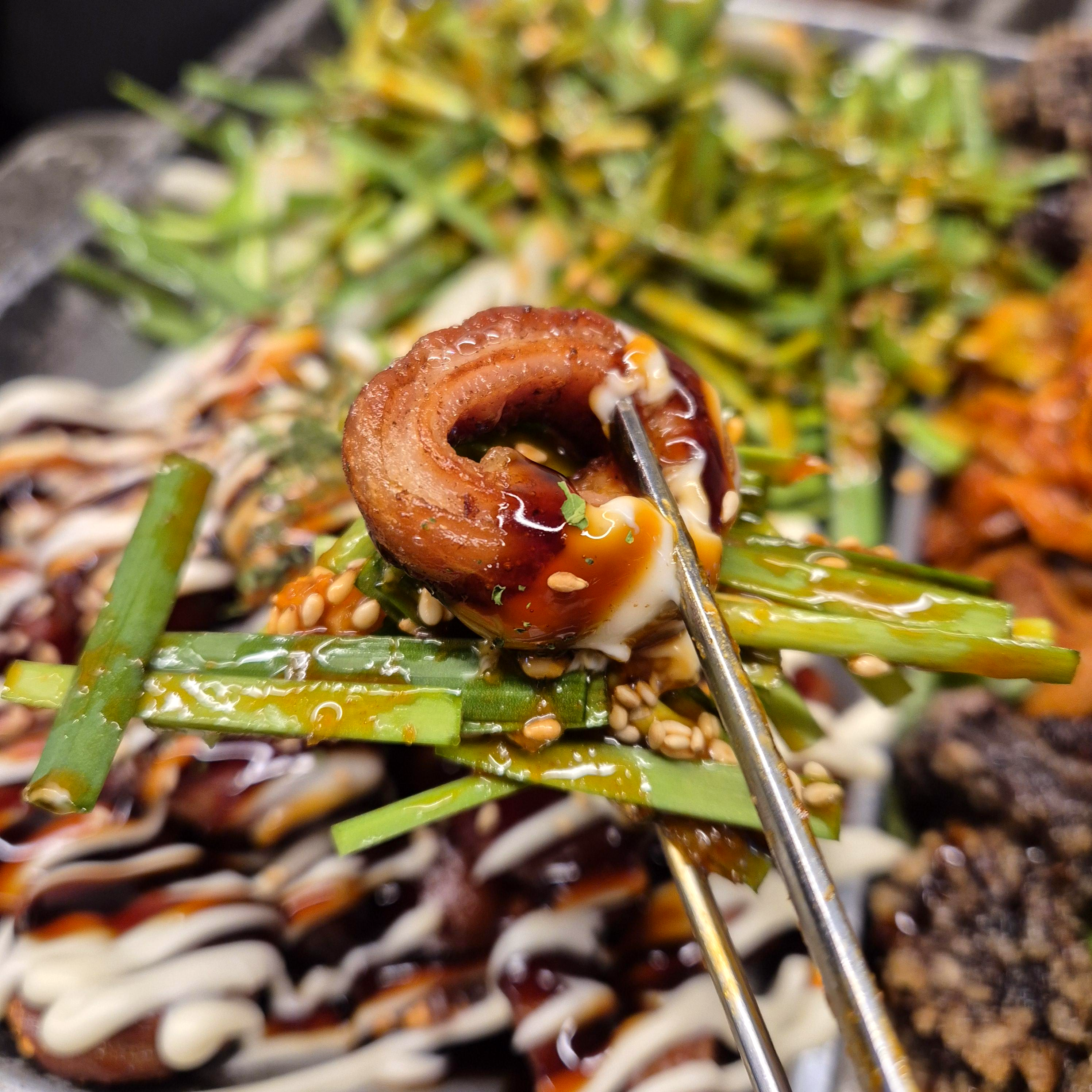 소스가 위에 덮어져 있어서 많이 느끼할 줄 알았지만, 그렇지 않았고, 오히려 달짝지근함이 스며들어 입안에 들어오니 매력적이었다. 거기에 살짝 새콤한 부추 그리고 쫀득한 곱창의 식감까지 조합이 좋았다.