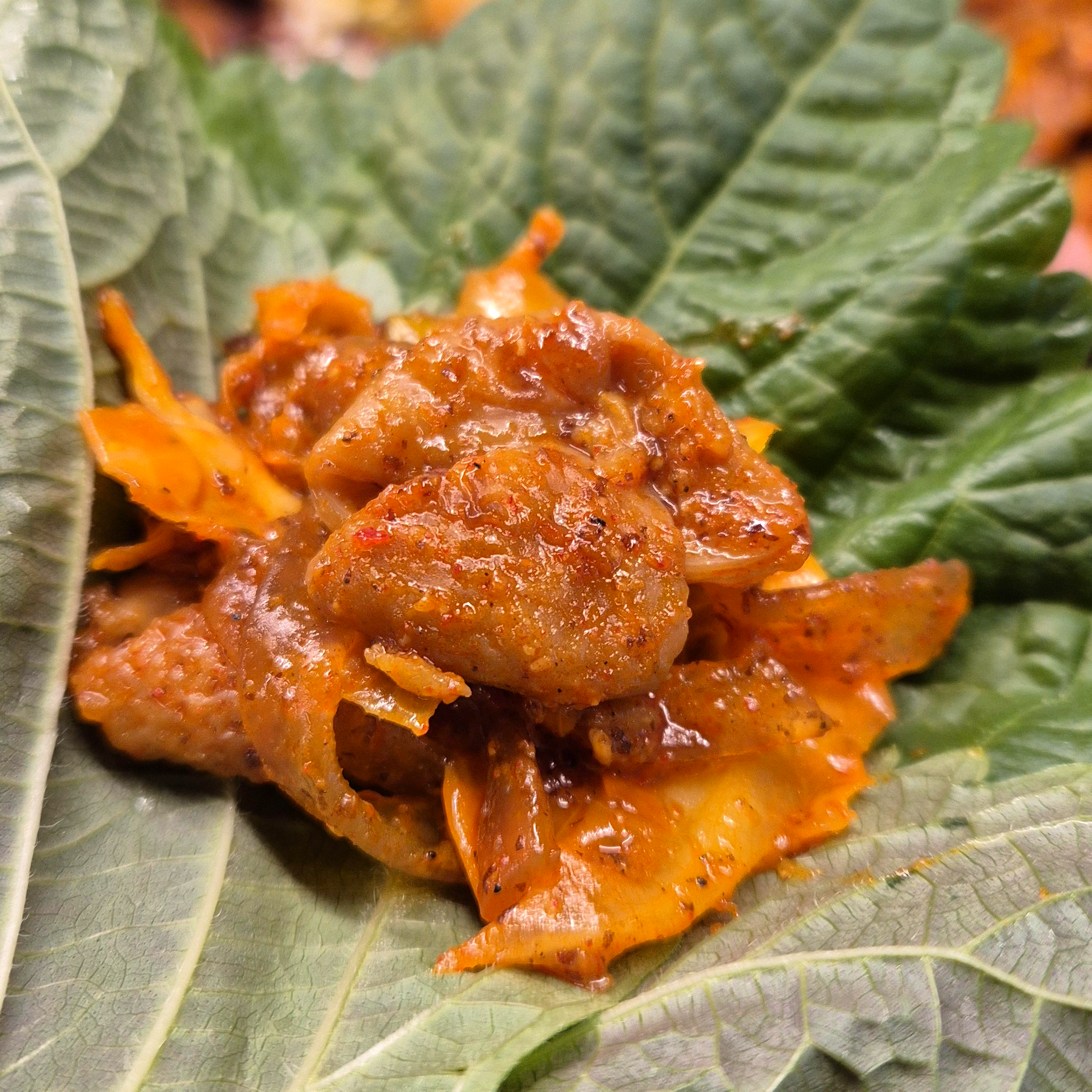 달달하면서도 조금은 느끼해 보이는 비주얼이다. 하지만 맛은 담백하고 아주 딱 적당한 데리야끼곱창! 이걸 먹어봐야 홍곱창을 와봤다고 할 수 있다고 한다. 특히 매운걸 잘 못 먹는 필자입장에서는 아주 최고의 곱창이 아닐 수 없다.