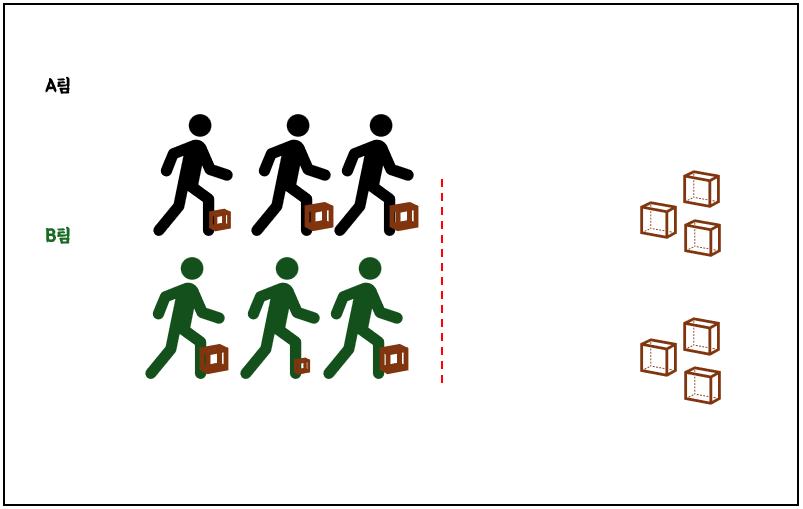 - 인원수에 맞추어 팀을 정한다.