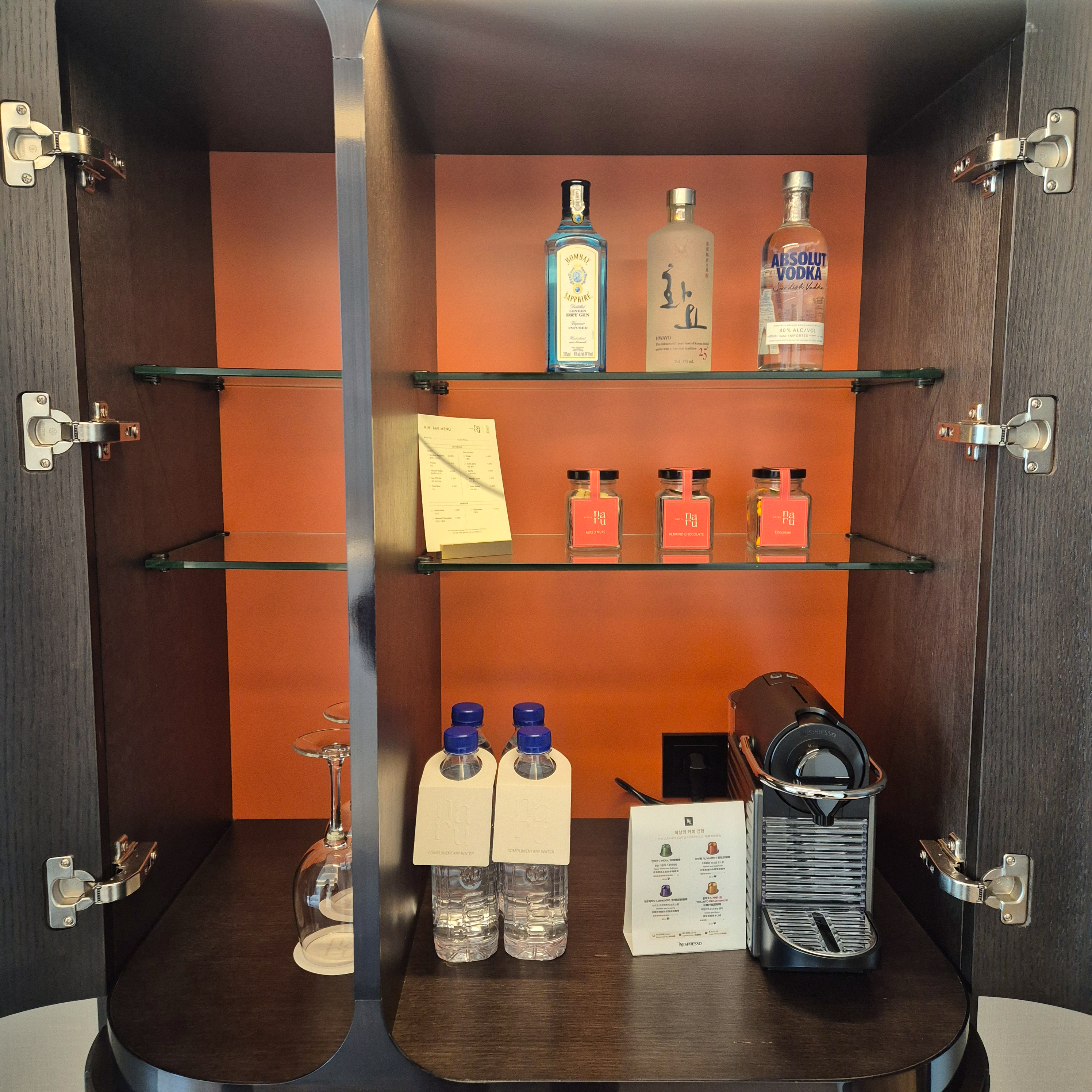 이것저것이 준비되어 있지만, 호텔인지라 가격이 ㅎㄷㄷ 그래서 저희는 무료인 물과 커피.. 정도만 이용했어요 하하.