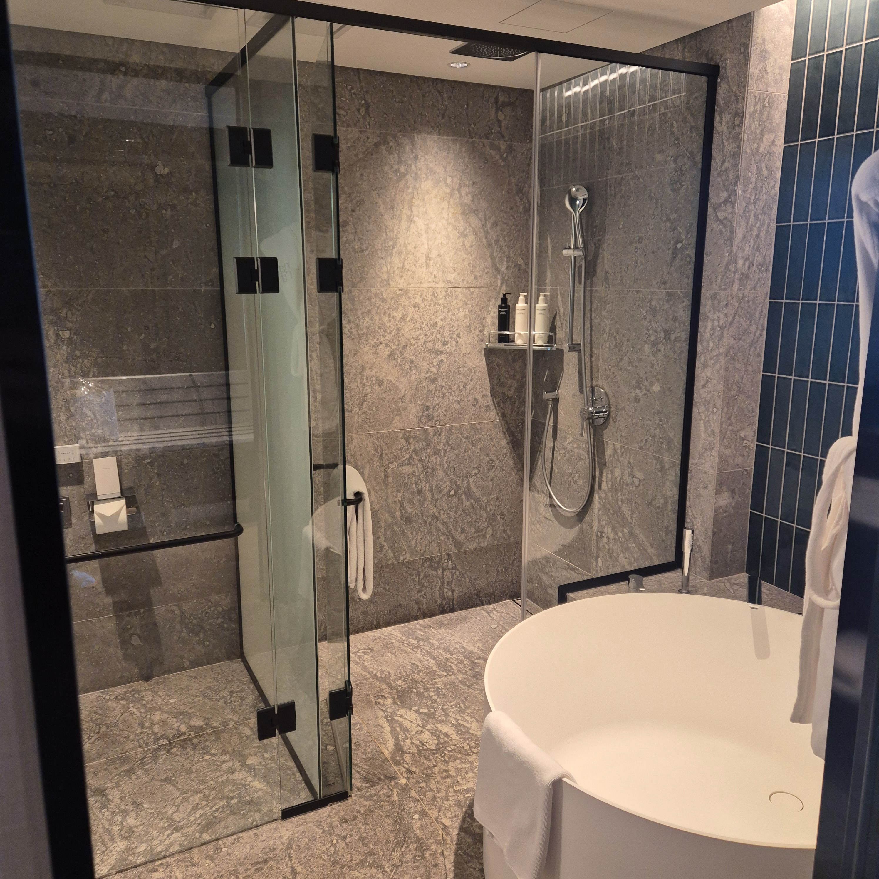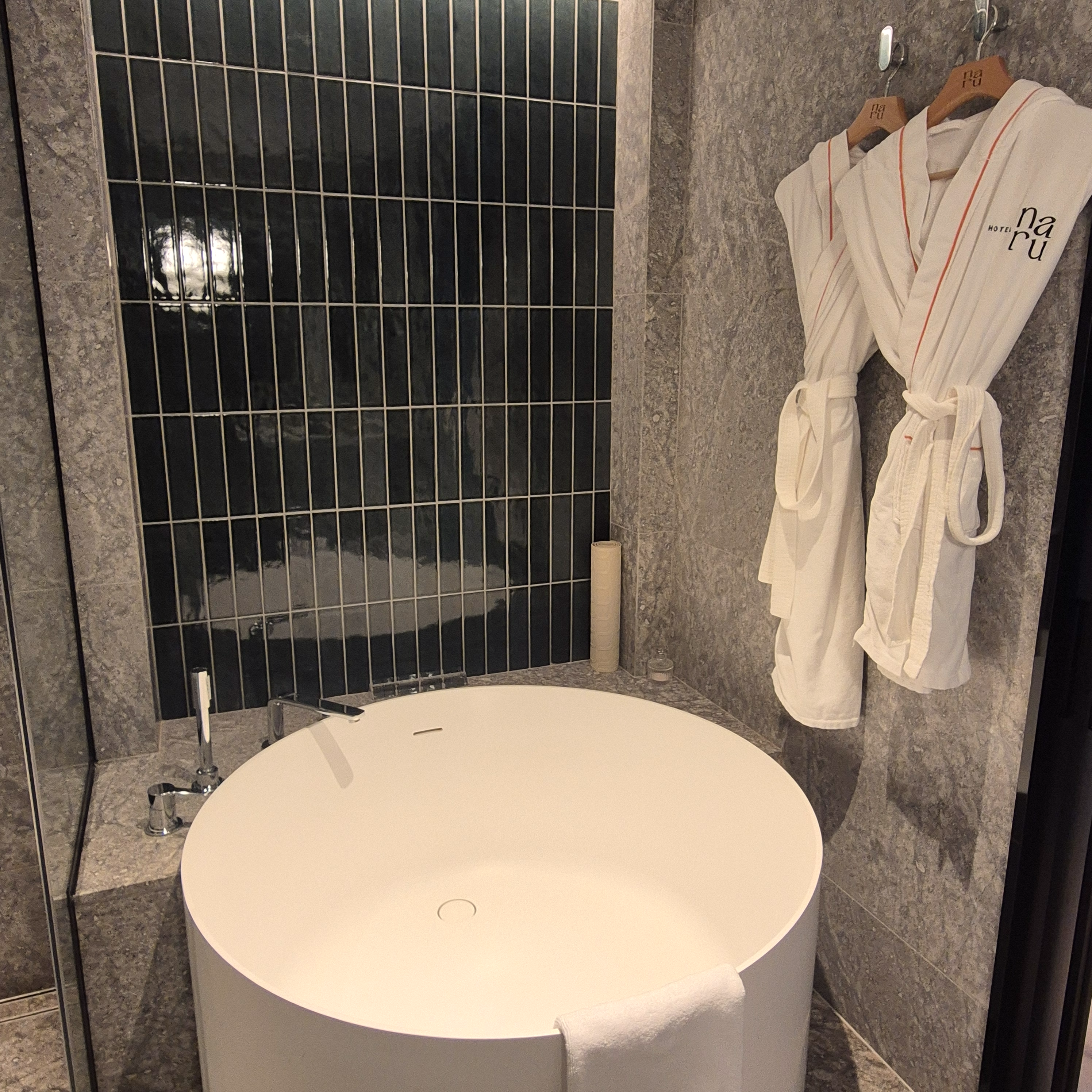 역시 호텔은 호텔이구나 싶더라고요. 고급스럽고, 깔끔했어요. 룸 사이즈가 전체적으로 크지는 않아서 아담했지만, 그래도 욕조도 있고, 샤워부스가 나누어져 있는 것도 좋았어요.