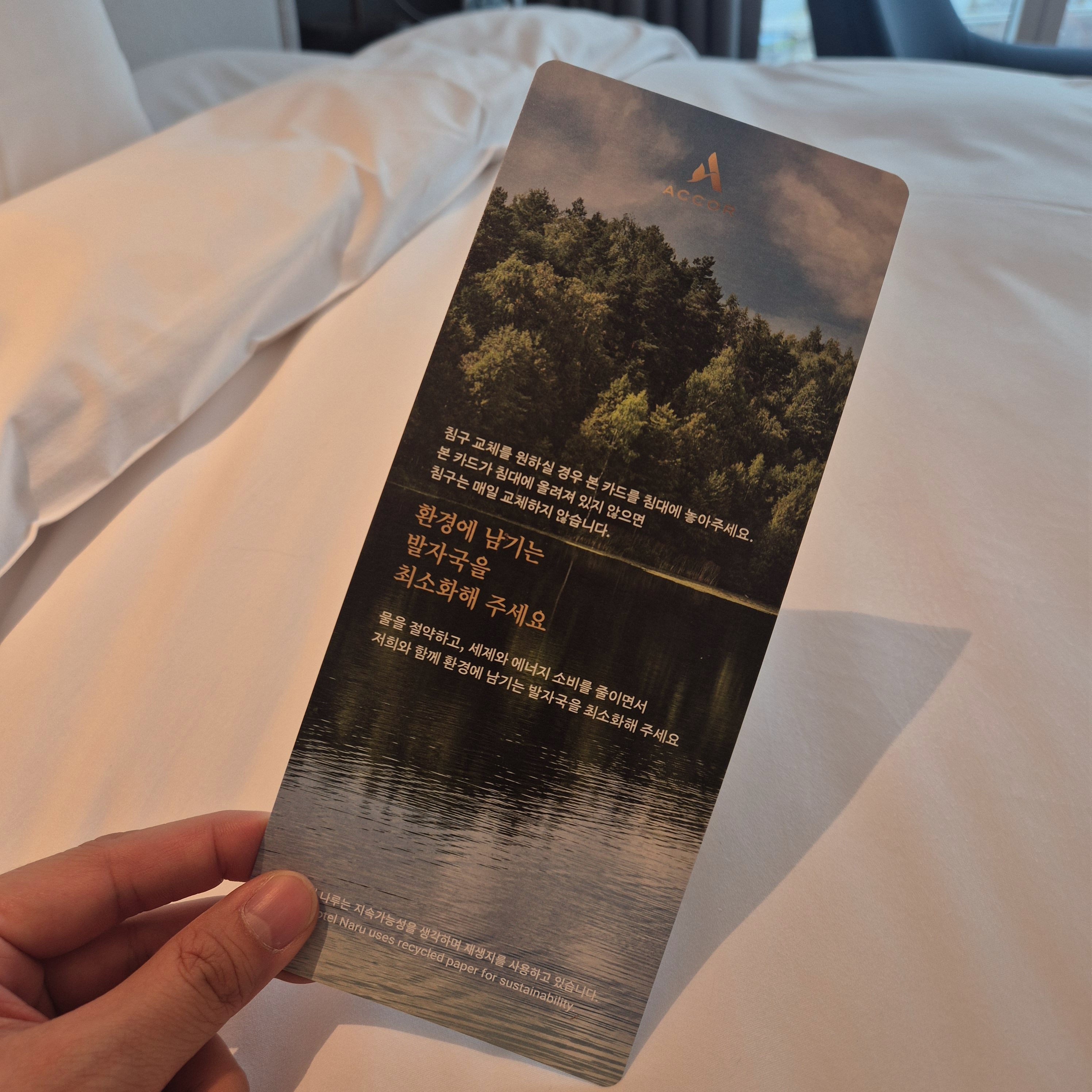 야놀자로 예약했기 때문에, 간단한 체크인 조약에 사인을 하고 룸키를 받을 수 있었어요. (신분증과 보증용 카드 필요)